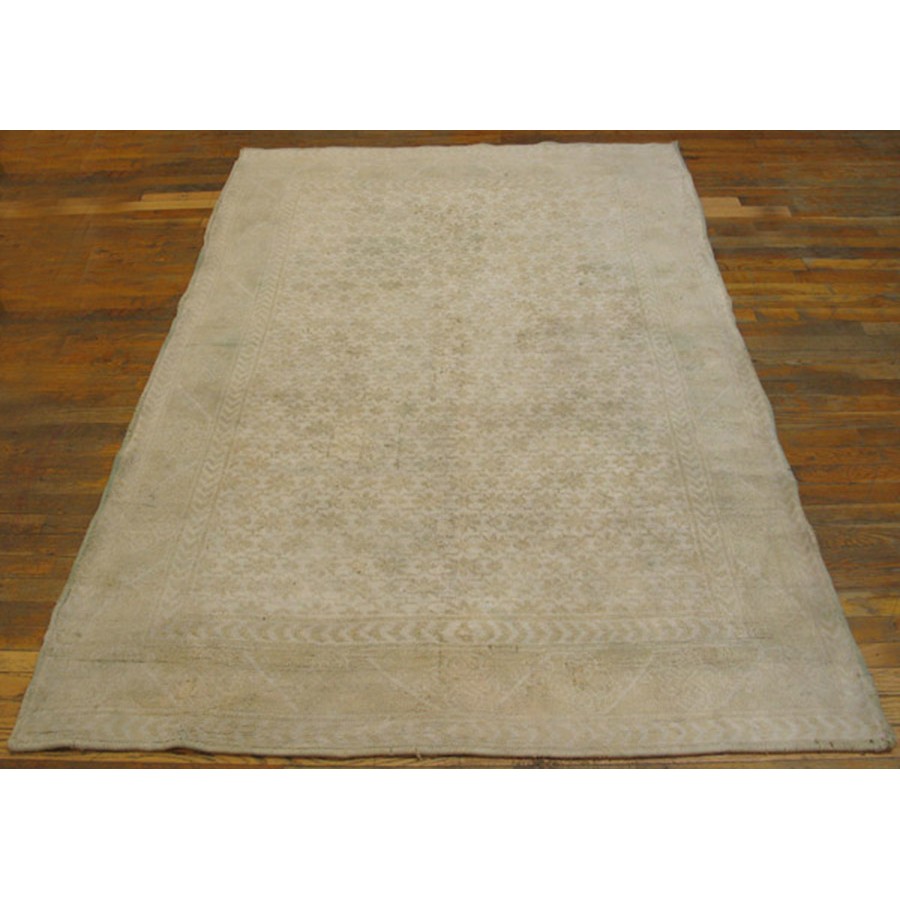 DescriptionAgra - CottonA subtype of Agra production in which the pile is all cotton instead of wool. The color palette is lighter and narrower: often only 3 or 4 tones are used. This tonal minimalism works well with modern décor. The rugs are cool to the touch and are particularly delightful in the summer. Cotton does not have the weaving quality of wool, but many examples are found in excellent condition. Sizes range up to 25 and a limited production continues to the present day. | |