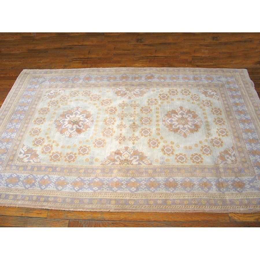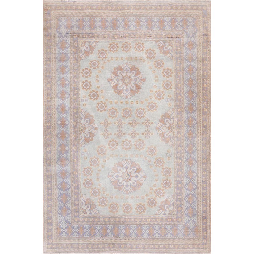 DescriptionAgra - CottonA subtype of Agra production in which the pile is all cotton instead of wool. The color palette is lighter and narrower: often only 3 or 4 tones are used. This tonal minimalism works well with modern décor. The rugs are cool to the touch and are particularly delightful in the summer. Cotton does not have the weaving quality of wool, but many examples are found in excellent condition. Sizes range up to 25 and a limited production continues to the present day. | |