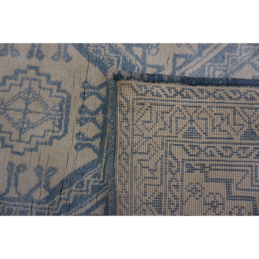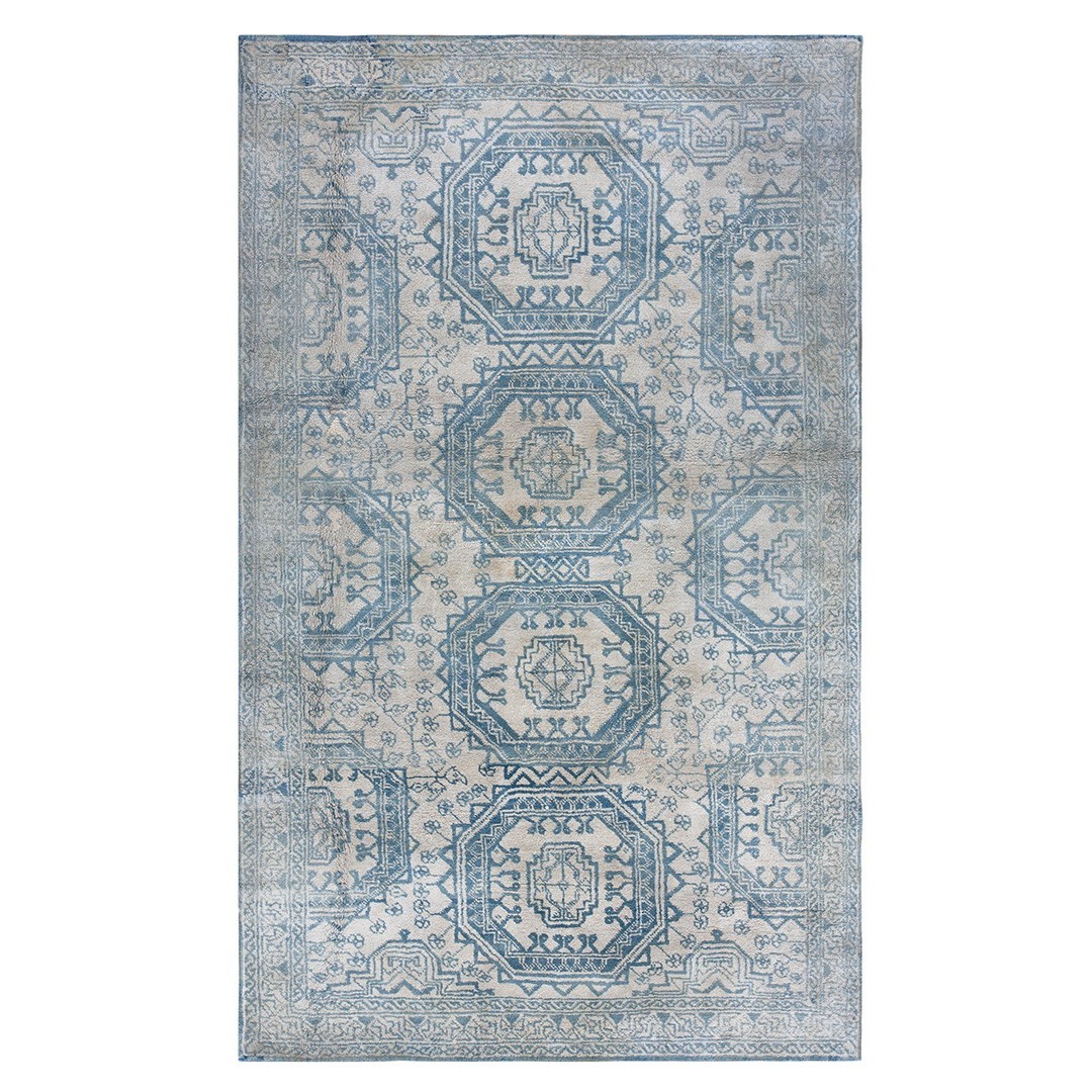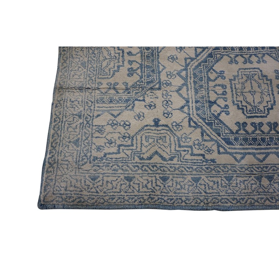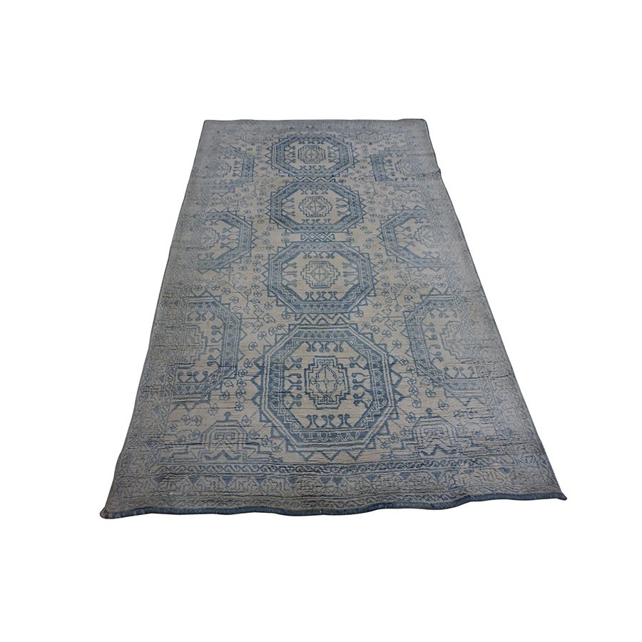 DescriptionAgra - CottonA subtype of Agra production in which the pile is all cotton instead of wool. The color palette is lighter and narrower: often only 3 or 4 tones are used. This tonal minimalism works well with modern décor. The rugs are cool to the touch and are particularly delightful in the summer. Cotton does not have the weaving quality of wool, but many examples are found in excellent condition. Sizes range up to 25 and a limited production continues to the present day. | |