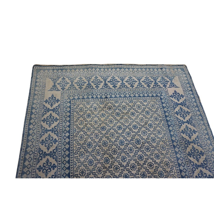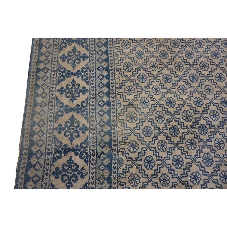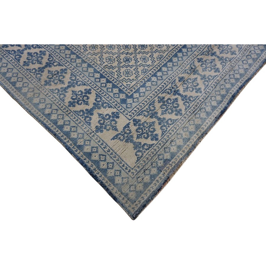 DescriptionAgra - CottonA subtype of Agra production in which the pile is all cotton instead of wool. The color palette is lighter and narrower: often only 3 or 4 tones are used. This tonal minimalism works well with modern décor. The rugs are cool to the touch and are particularly delightful in the summer. Cotton does not have the weaving quality of wool, but many examples are found in excellent condition. Sizes range up to 25 and a limited production continues to the present day. | |
