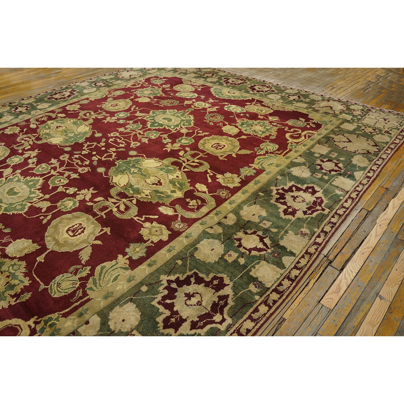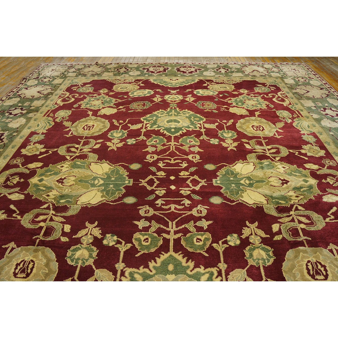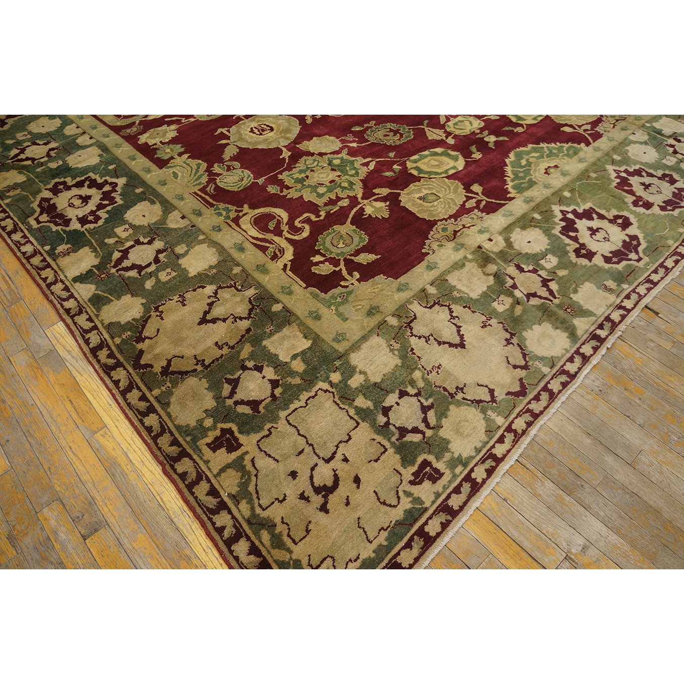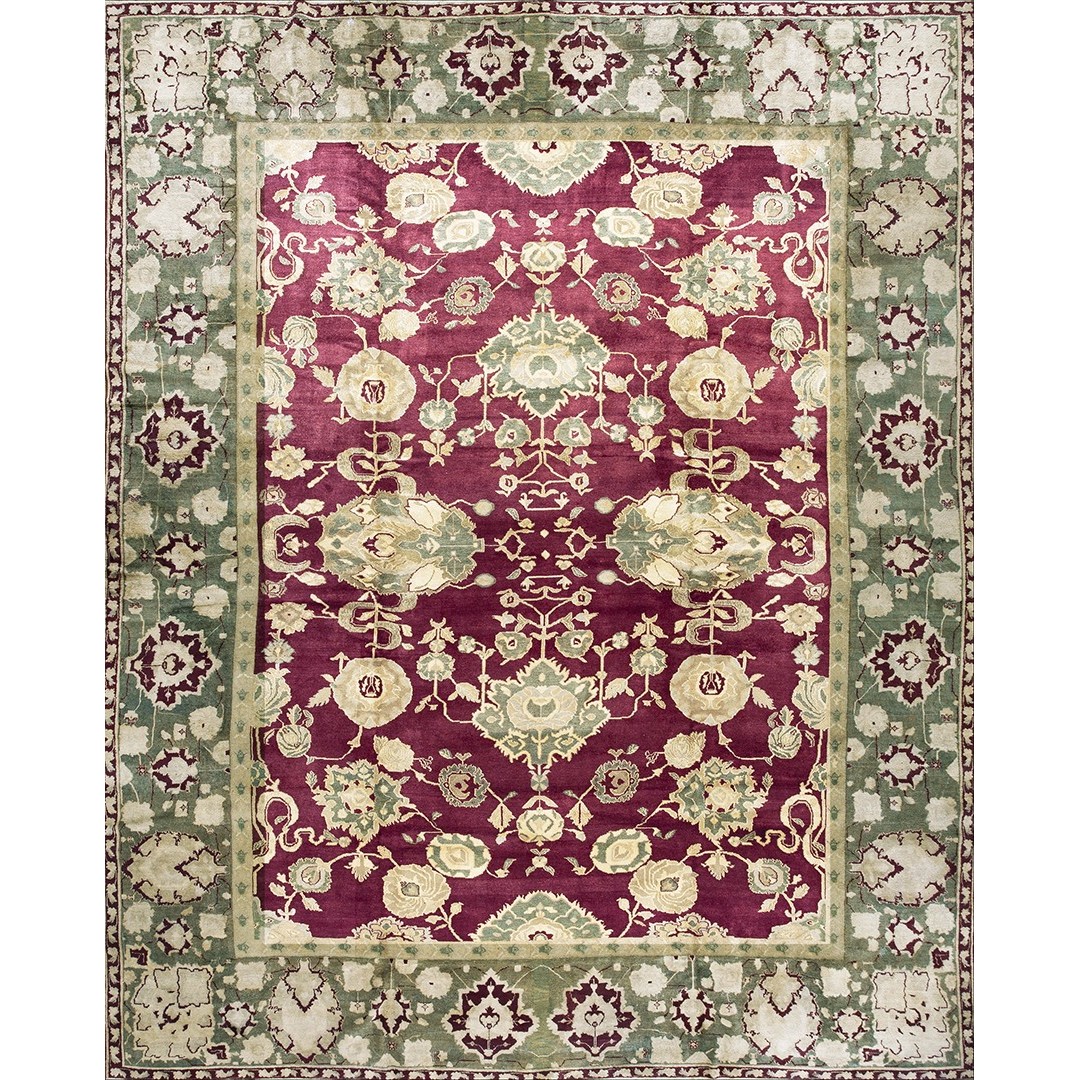 DescriptionAgraLocated in the north-central India about 120 miles south of Delhi, rugs have been woven in this city since about 1600, but it is still controversial whether any of the carpets attributed to Isfahan more actually Agra products. The 19th century situation is clearer: carpets employing the same overall pattern of palmettes and curving vines on ruby red grounds in large, square sizes, are the iconic type. In later 19th century work, the design becomes smaller and denser, the weave heavier, and the red approaches cranberry. Other designs include copies or interpretations of classical Persian patterns, especially after 1890. many very large pieces were woven by inmates of the Agra City Jail on contract to western importers. Good Agras are always in demand and can bring six-figure prices at auction. | |