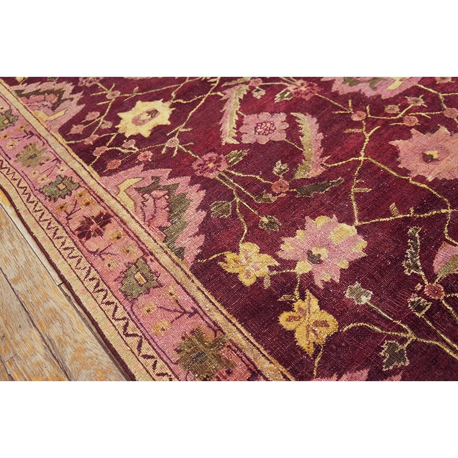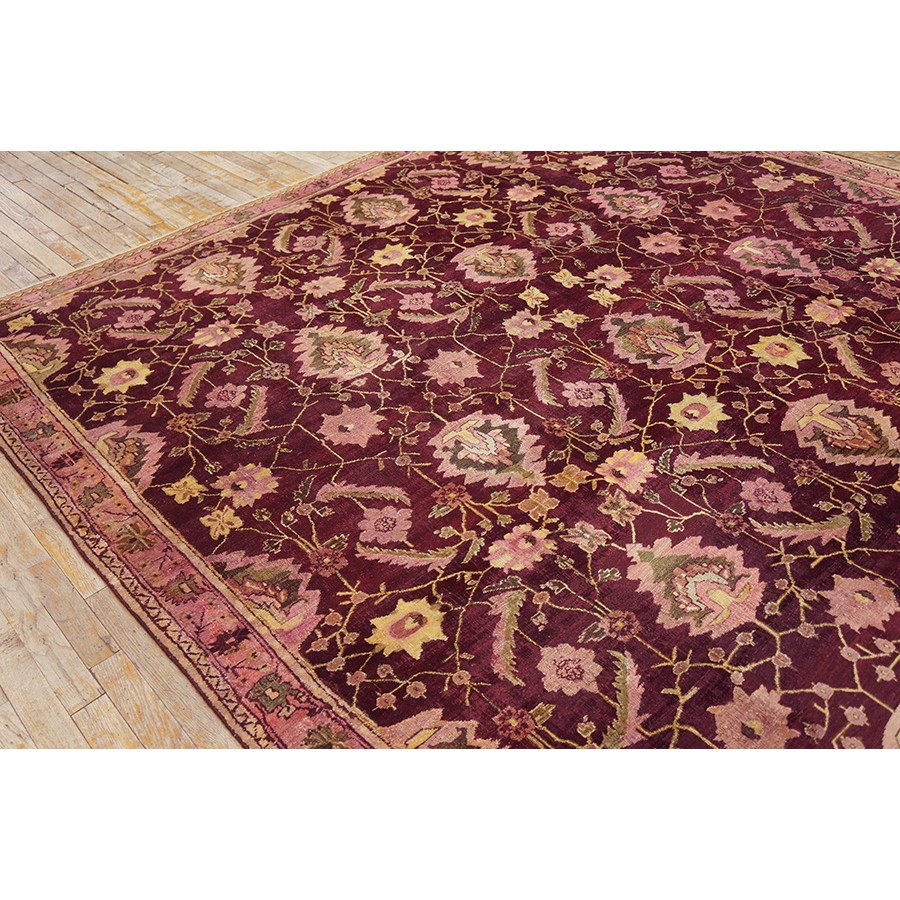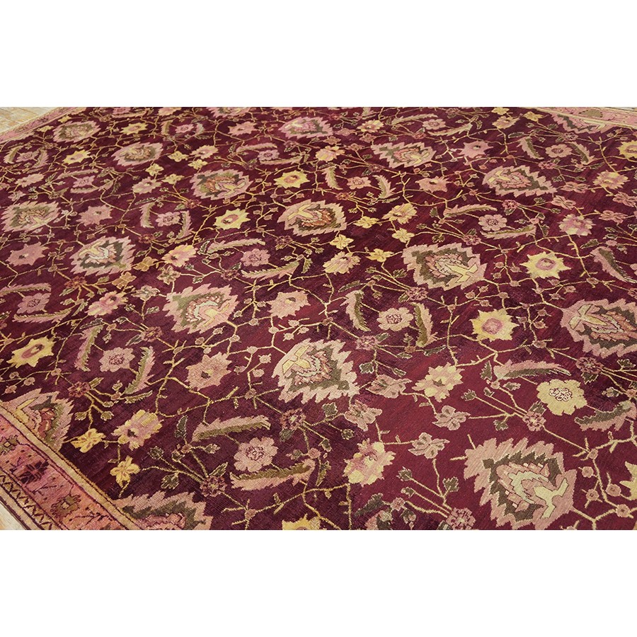 DescriptionAgraLocated in the north-central India about 120 miles south of Delhi, rugs have been woven in this city since about 1600, but it is still controversial whether any of the carpets attributed to Isfahan more actually Agra products. The 19th century situation is clearer: carpets employing the same overall pattern of palmettes and curving vines on ruby red grounds in large, square sizes, are the iconic type. In later 19th century work, the design becomes smaller and denser, the weave heavier, and the red approaches cranberry. Other designs include copies or interpretations of classical Persian patterns, especially after 1890. many very large pieces were woven by inmates of the Agra City Jail on contract to western importers. Good Agras are always in demand and can bring six-figure prices at auction. | |
