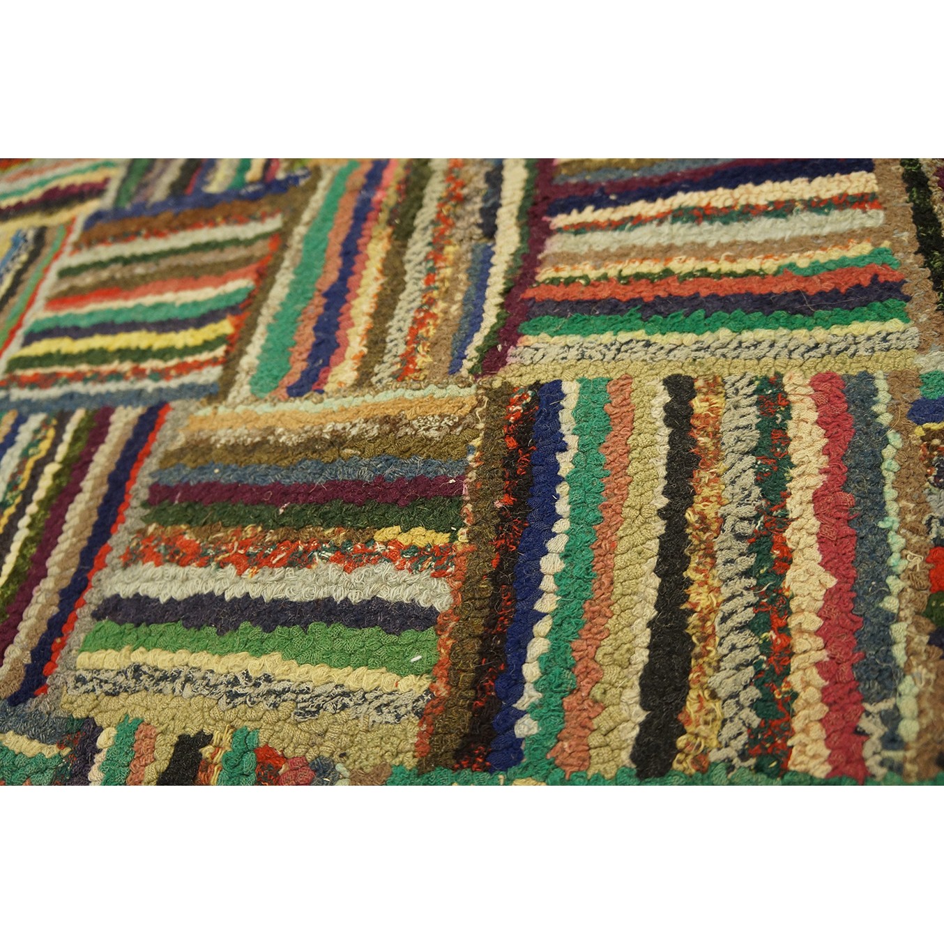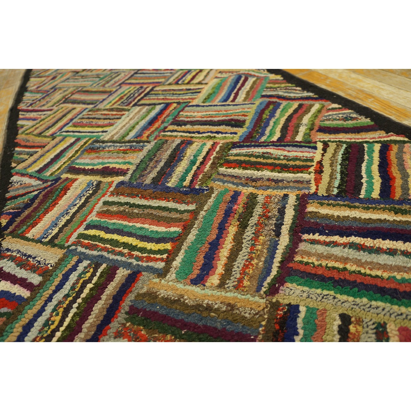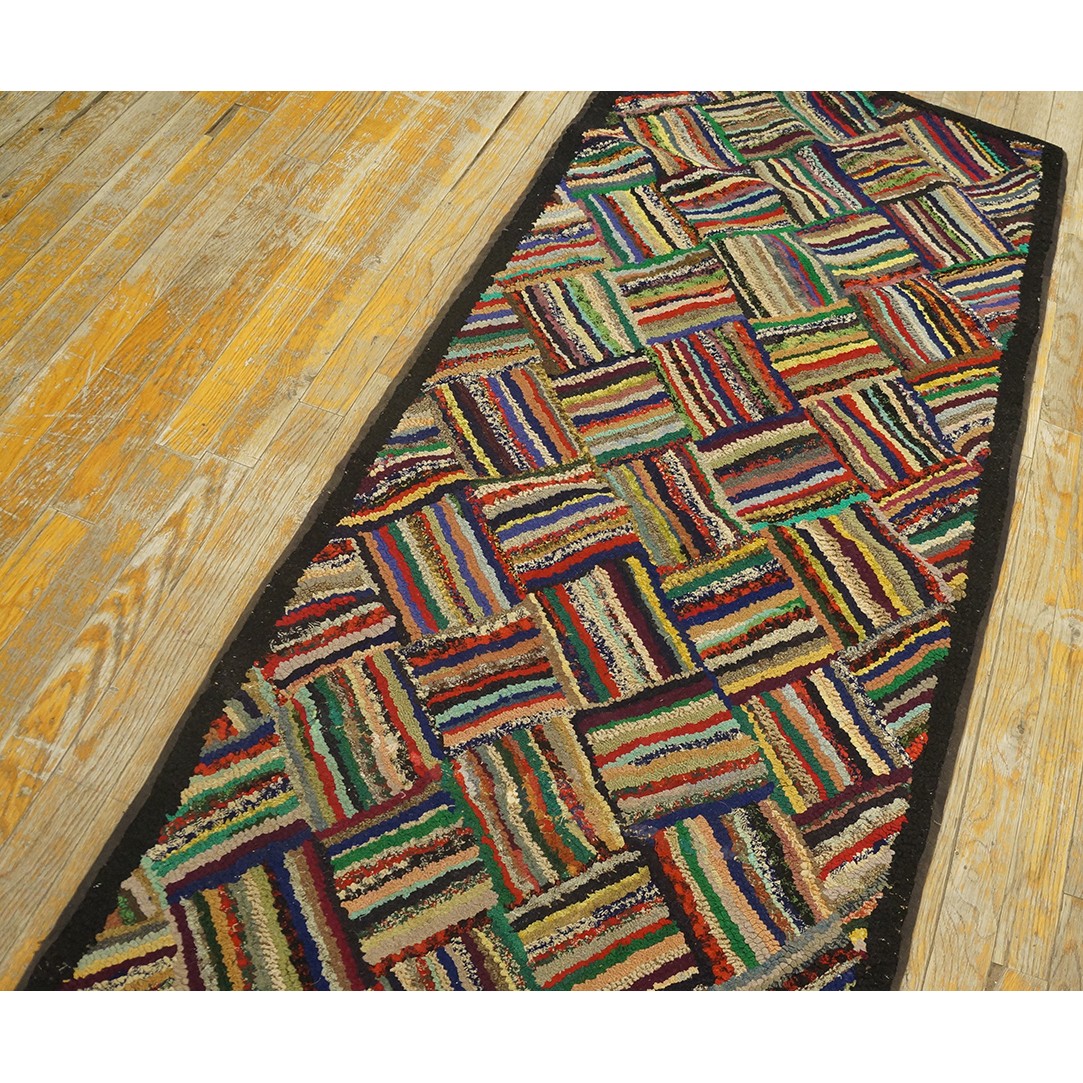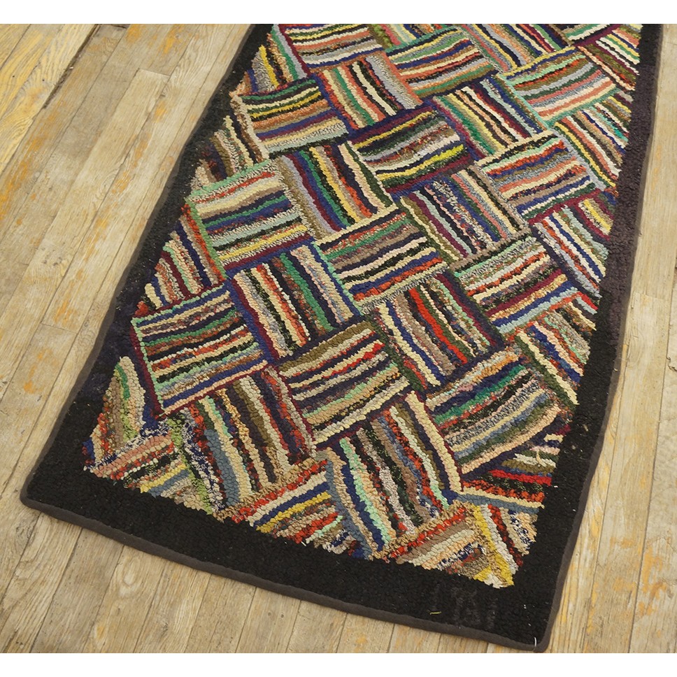 1930s American Hooked Rug with Basket Weave Pattern