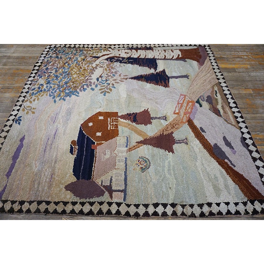 Early 20th Century Scenic American Hooked Rug