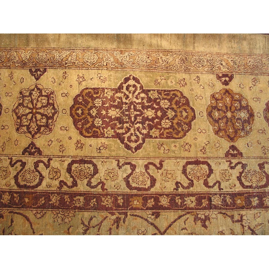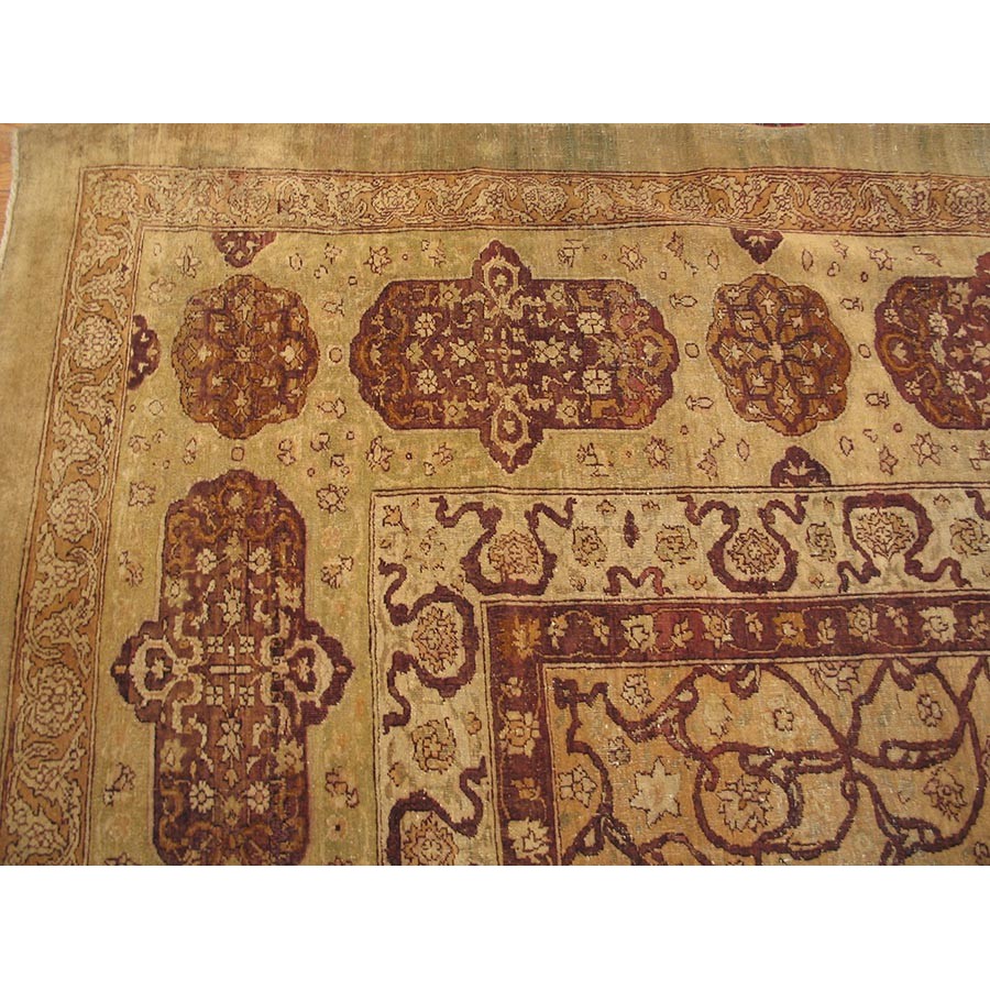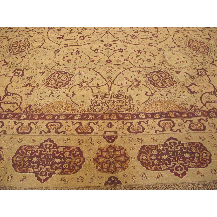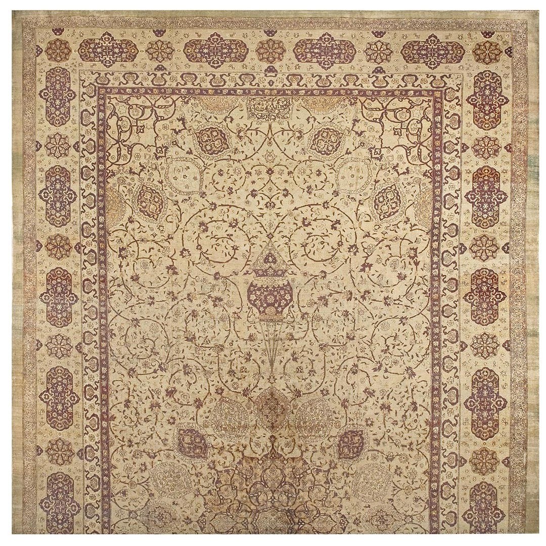 The 1892 publication of the Ardebil Carpet� almost immediately unleashed creative copies from all over the carpet world. This is a particularly attractive one in tones of ivory and cream, with a pendanted medallion suspending two mosque lamps and en suite quarter corners, on a field of tightly coiled arabesques, all within a cartouche and octofoil border. The majestic scale of this exceptional interpretation of the worlds most reproduced classical carpet is quite close to that of the original