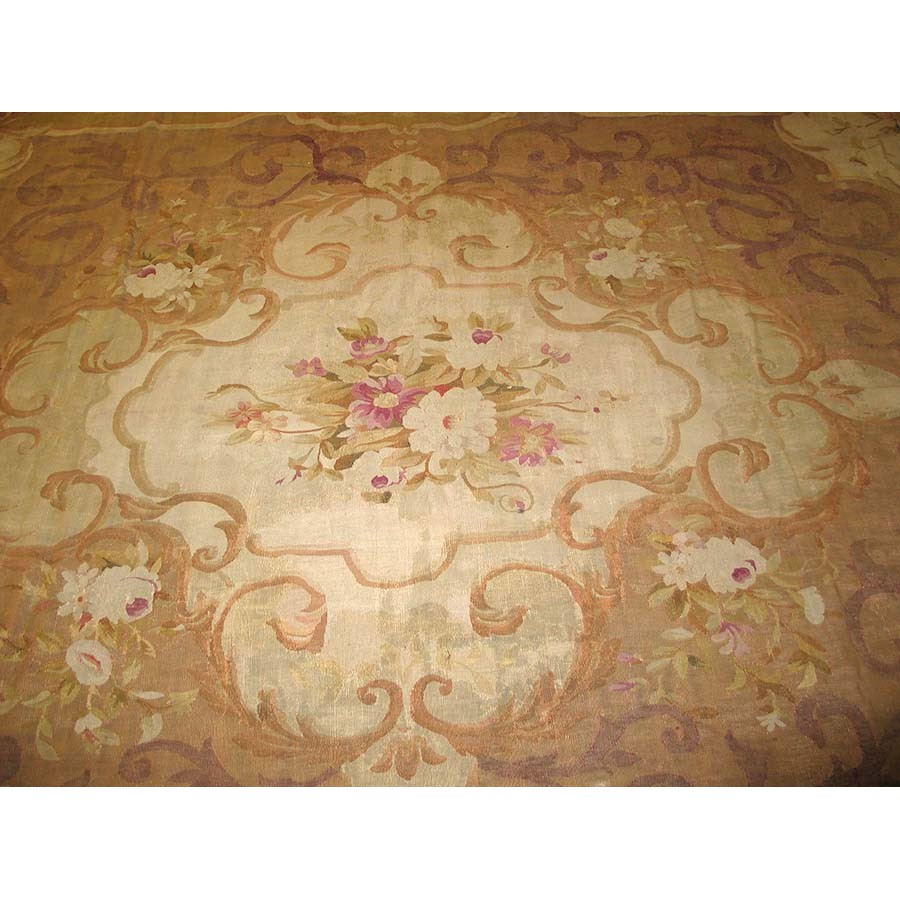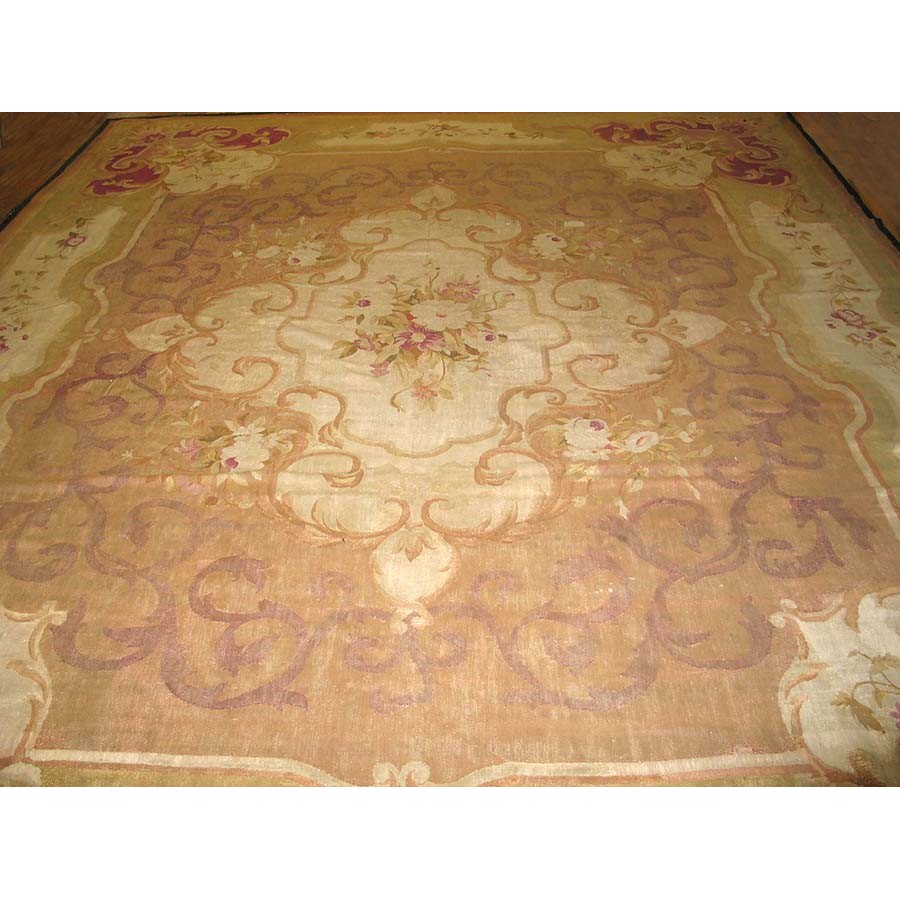 The Victorian period (Napoleon II- Second Empire) in France saw intense elaboration of traditional medallion patterns, as on this fine example with a huge ivory cruciform enclosing a floral bouquet. Thick vines writhe around the field ,and irregular ivory cartouches and acanthus escutcheons decorate the sides and corners, respectively.