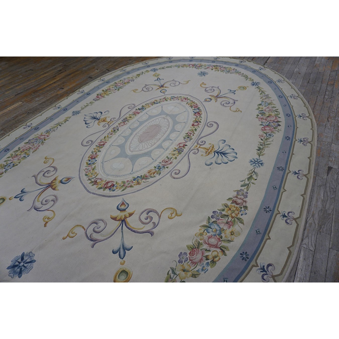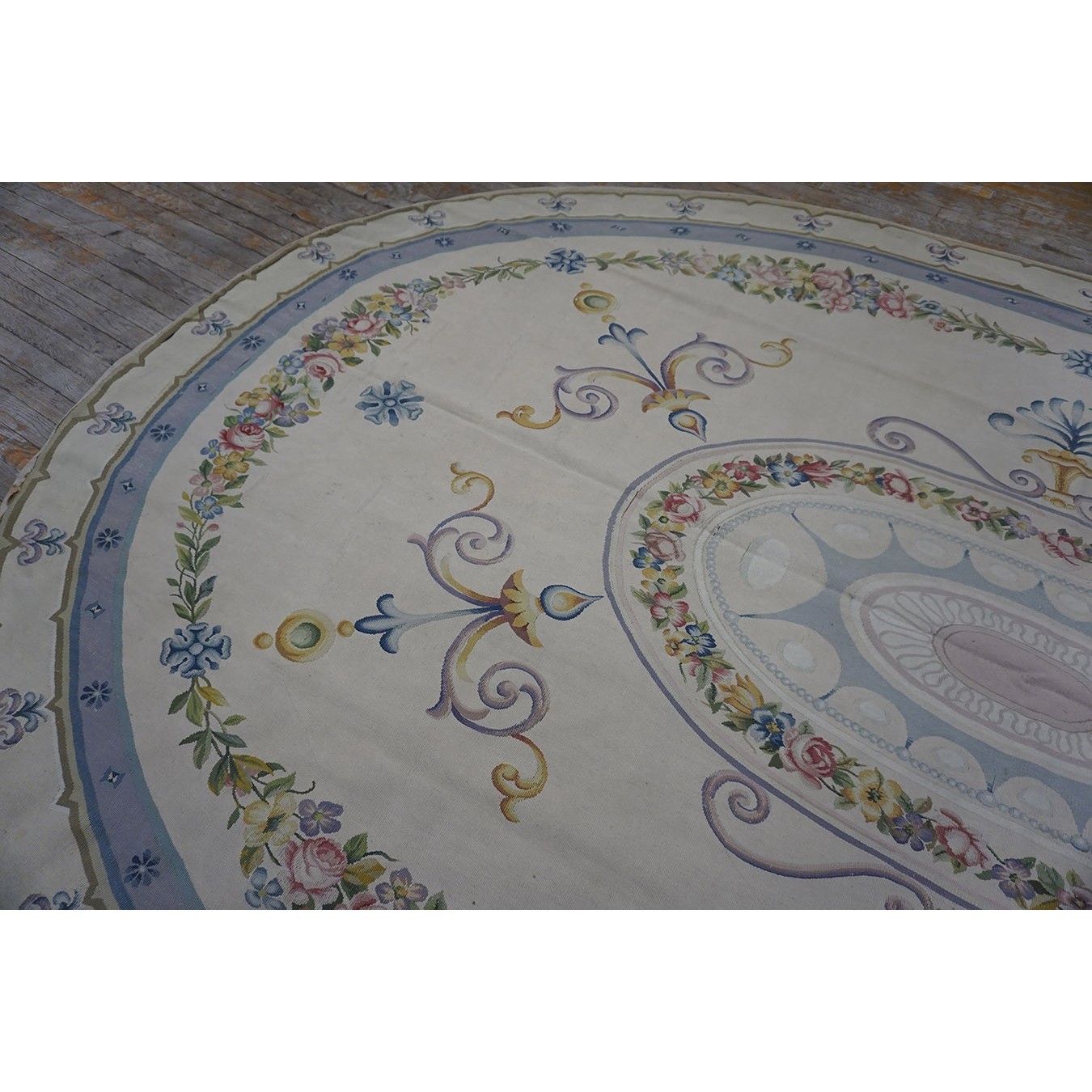 Late 19th Century Oval French Neo Classical Aubusson Carpet