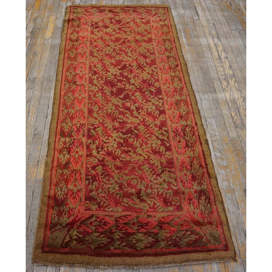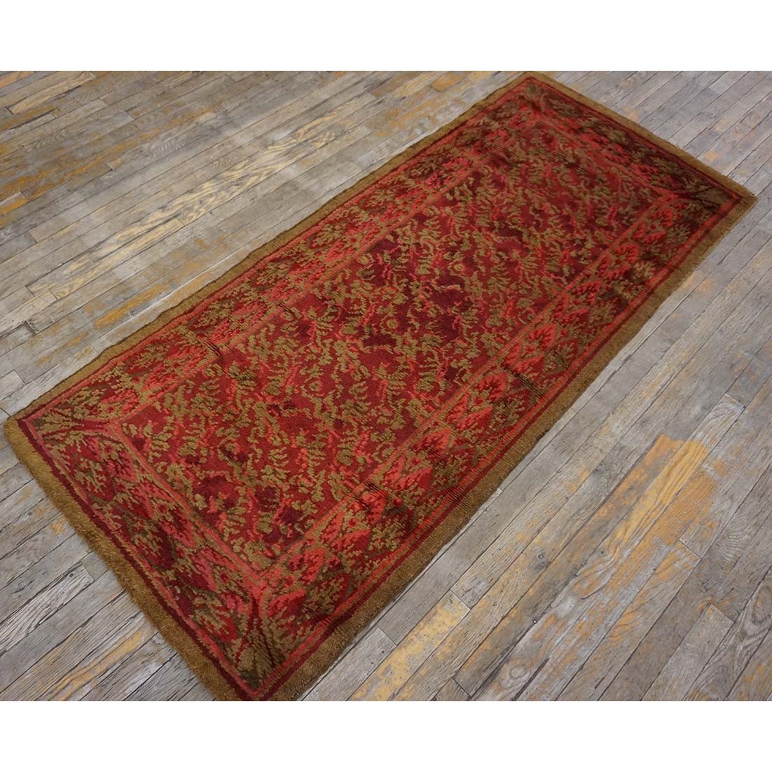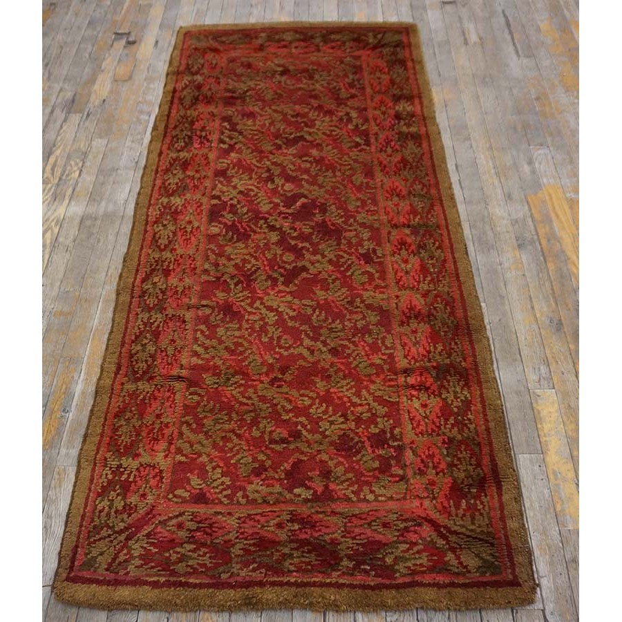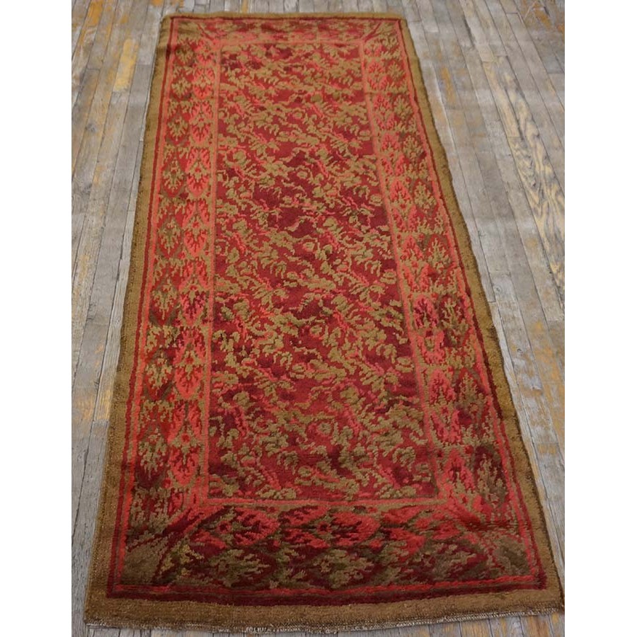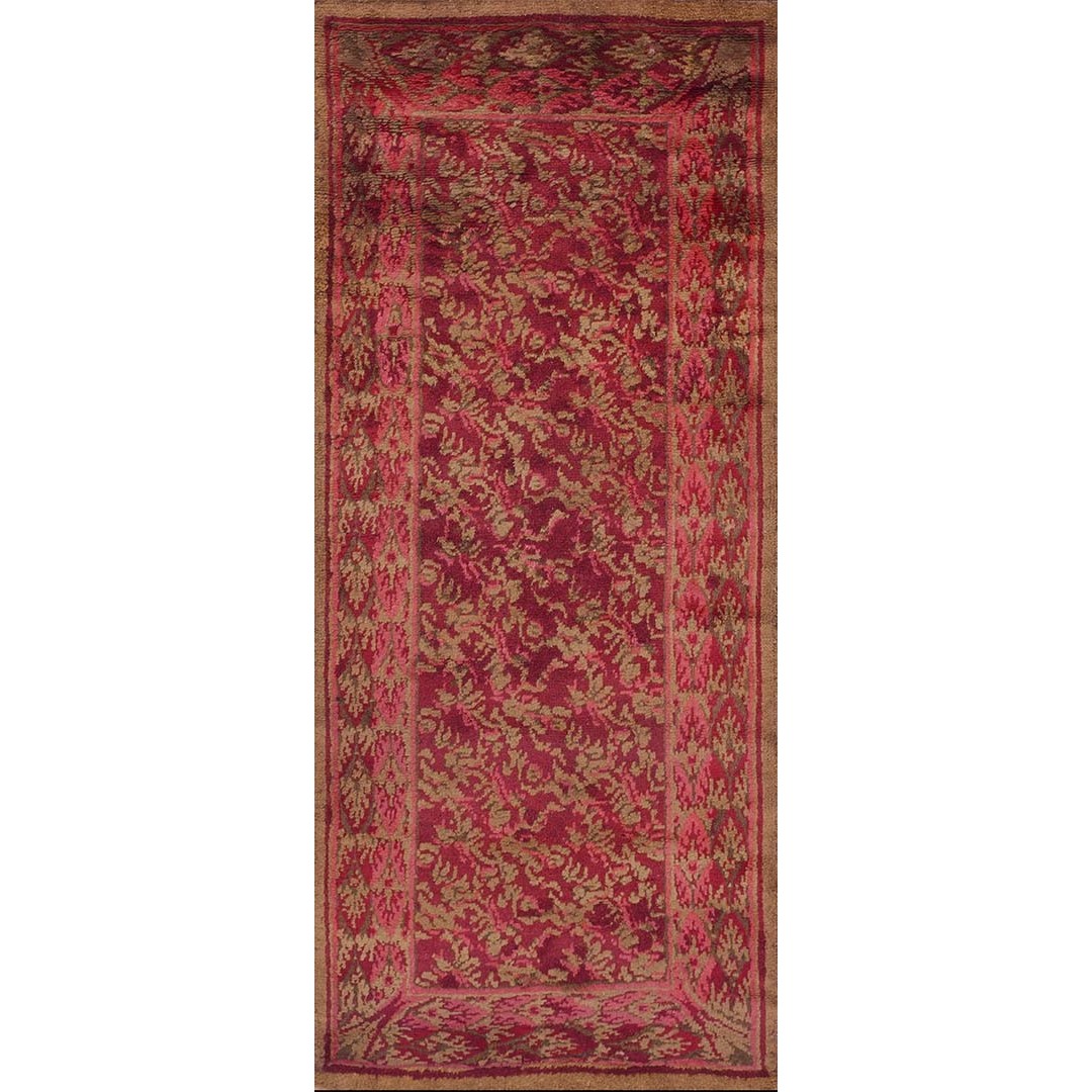 Although Axminster was justly famed for its large carpets, it also provided smaller pieces, for example this example in red with an allover leafy spread pattern within en suite borders/ Victorian taste is just beginning to creep in and the stark Neo-classical Regency clarity is starting to recede.