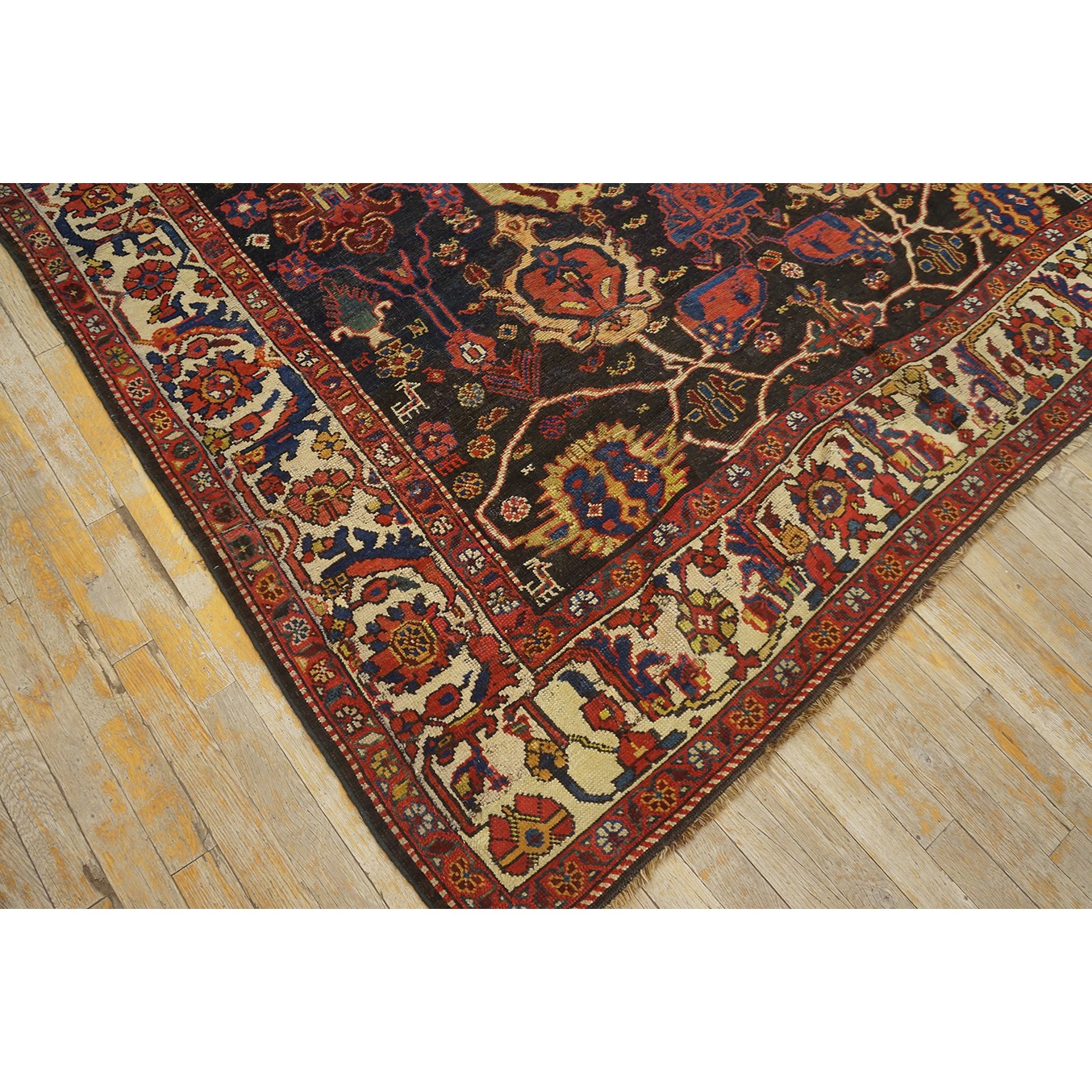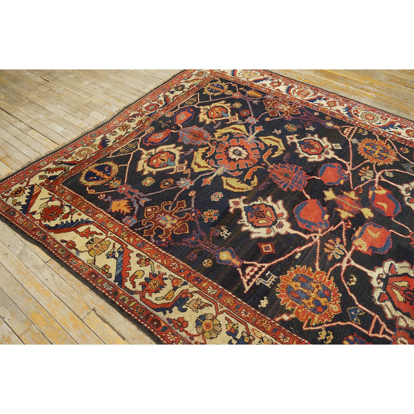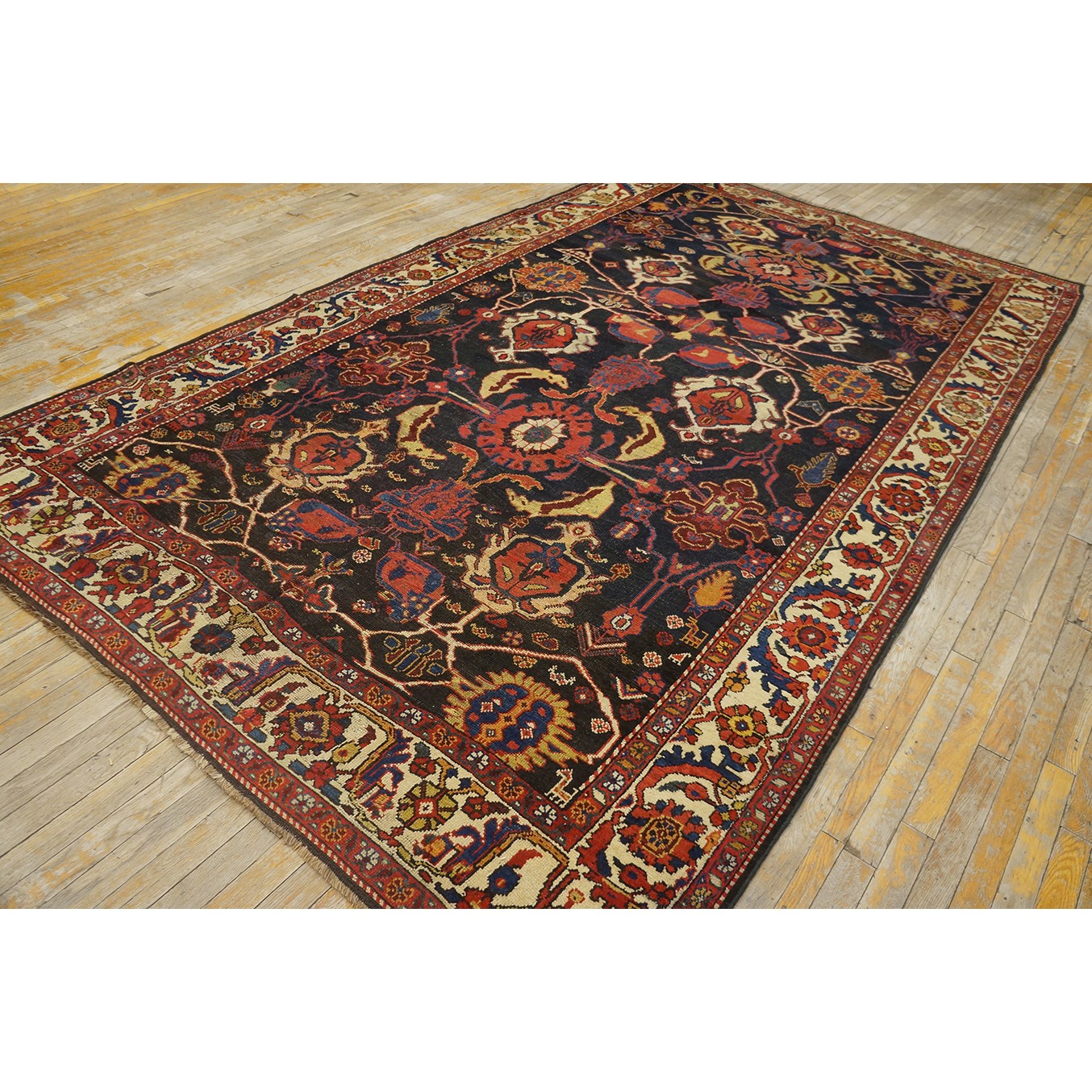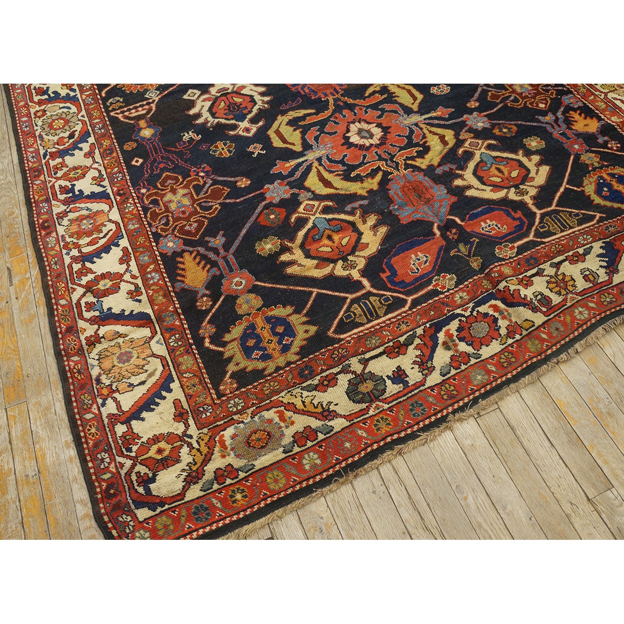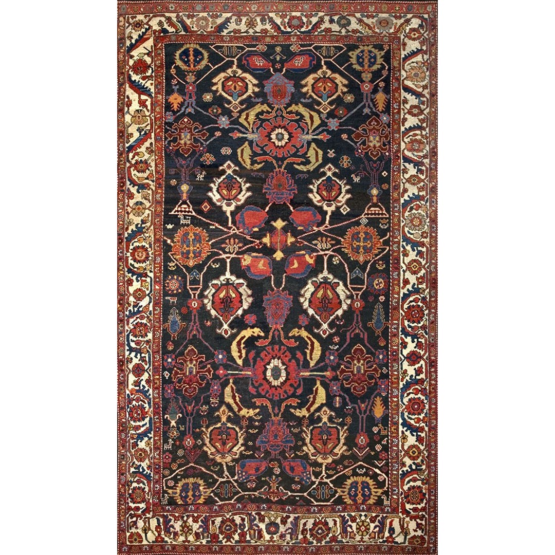 DescriptionBakhtiariThese carpets are made in the Chahar Mahal (Four Places) are of southwest Iran by sedentary villagers, some Armenian, rather than by the nomadic Bakhtiari tribespeoples. They tend to large, square sizes, often over 20 feet in length. Designs are frequently a panel pattern derived from garden carpets, but also lozenge lattices or angular medallions also appear. Colors are bright and the weave is robust. A small group of rugs was made for the Bakhtiari Khans (tribal leaders) early in the 20th century. They are often inscribed and are of very fine workmanship. The more frequently encountered pieces are moderately priced and often in excellent condition. | |
