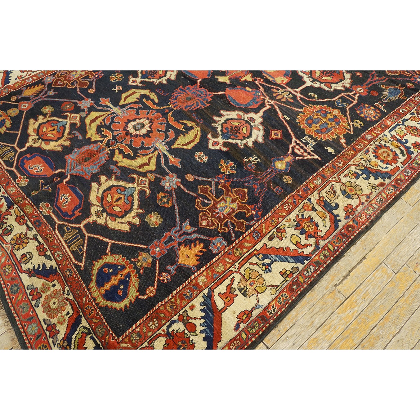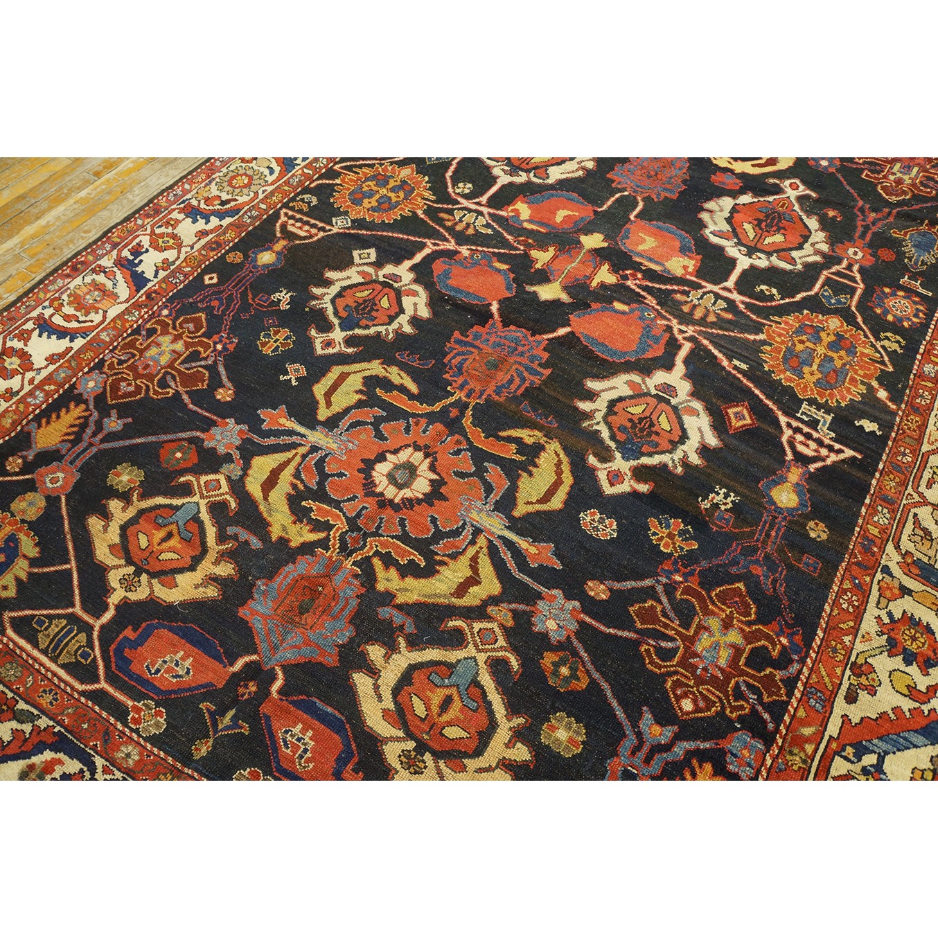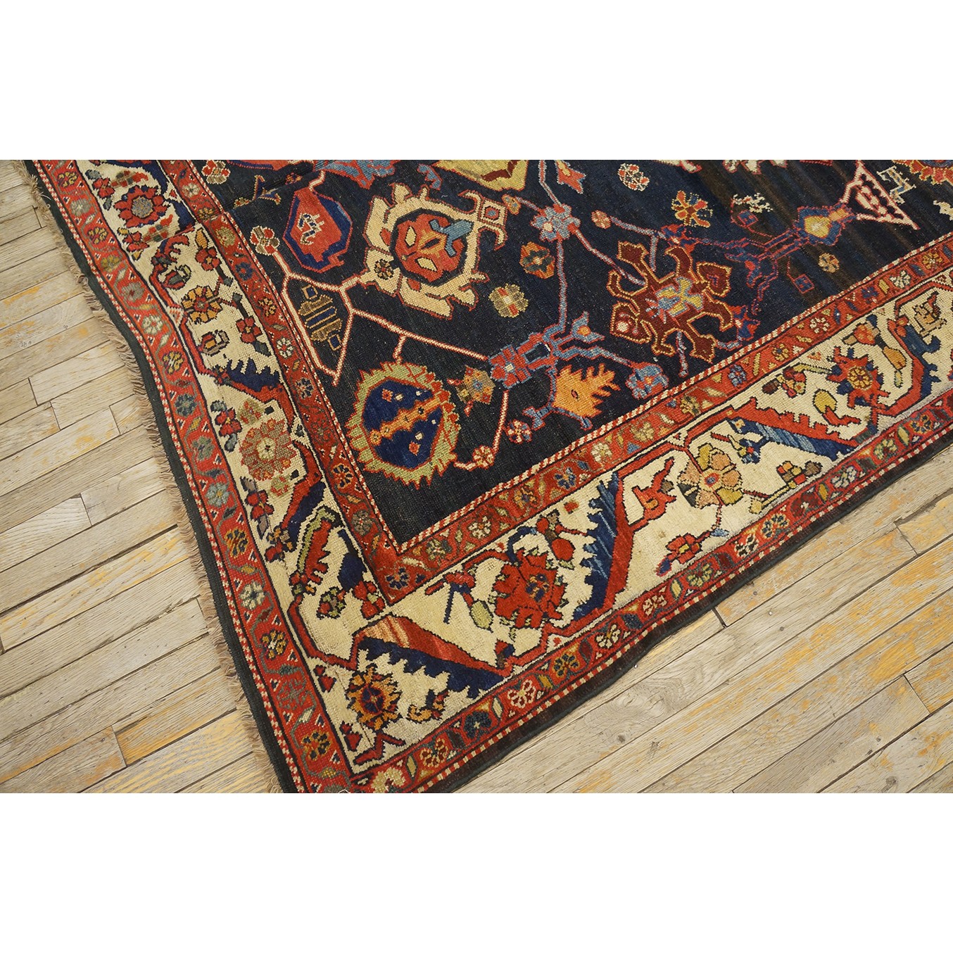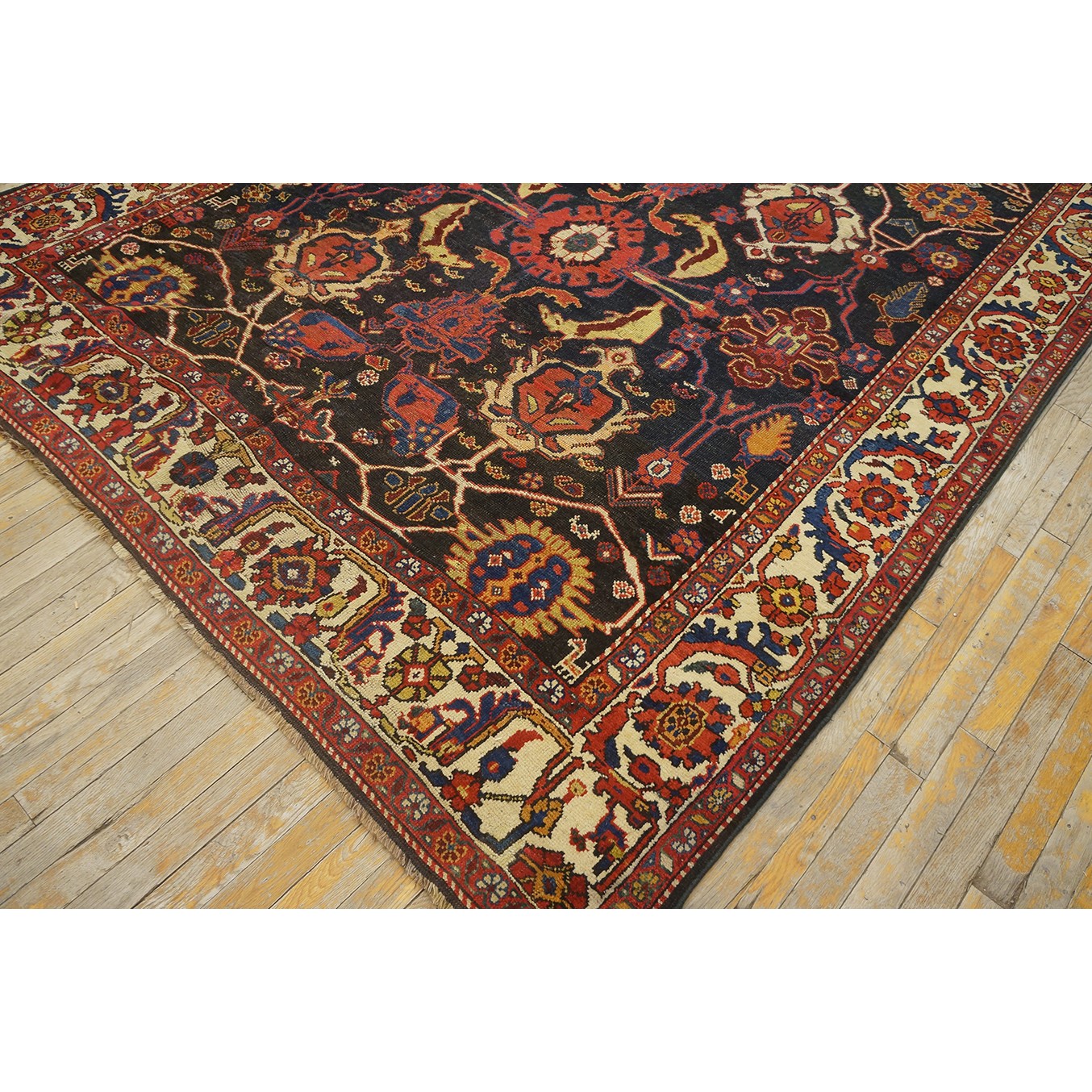 DescriptionBakhtiariThese carpets are made in the Chahar Mahal (Four Places) are of southwest Iran by sedentary villagers, some Armenian, rather than by the nomadic Bakhtiari tribespeoples. They tend to large, square sizes, often over 20 feet in length. Designs are frequently a panel pattern derived from garden carpets, but also lozenge lattices or angular medallions also appear. Colors are bright and the weave is robust. A small group of rugs was made for the Bakhtiari Khans (tribal leaders) early in the 20th century. They are often inscribed and are of very fine workmanship. The more frequently encountered pieces are moderately priced and often in excellent condition. | |