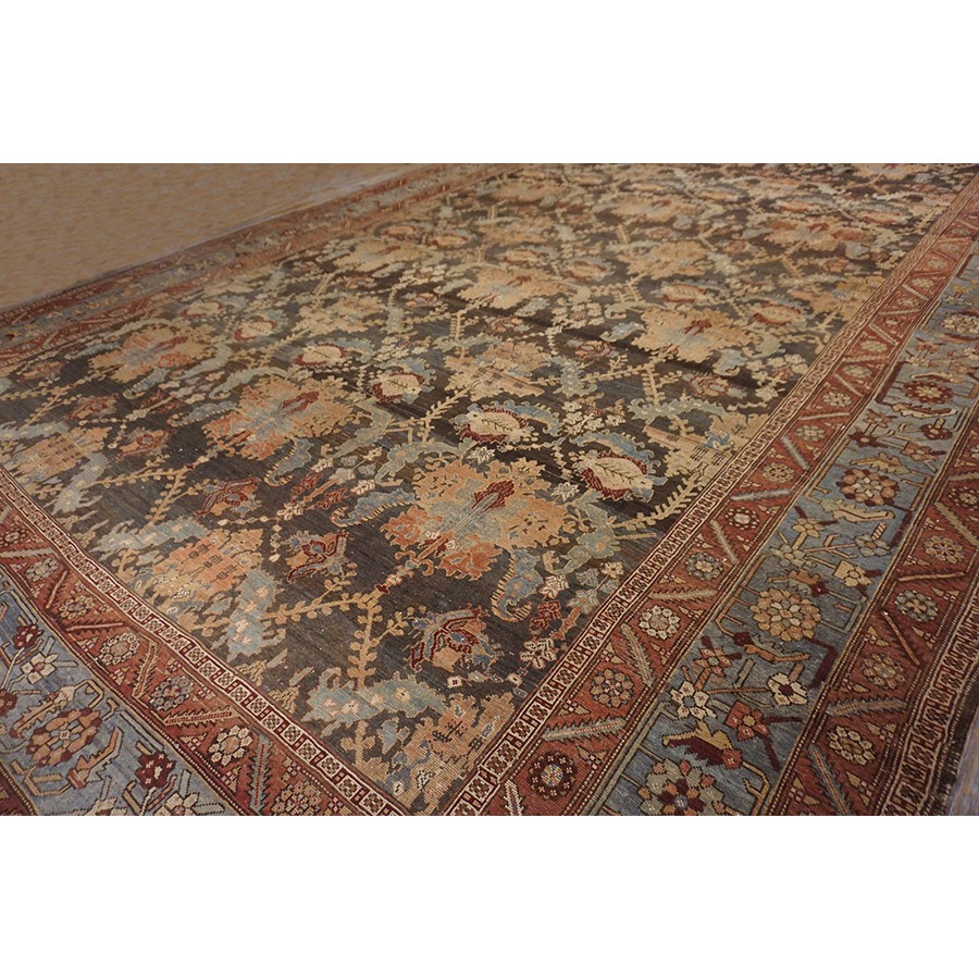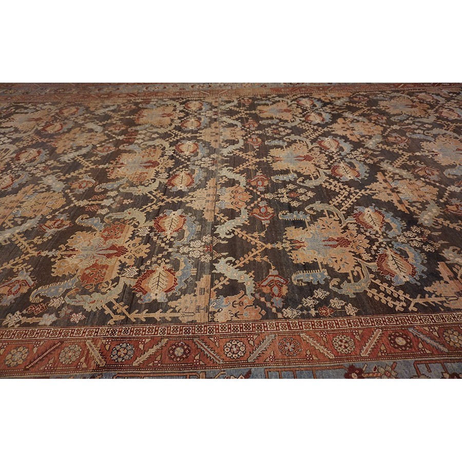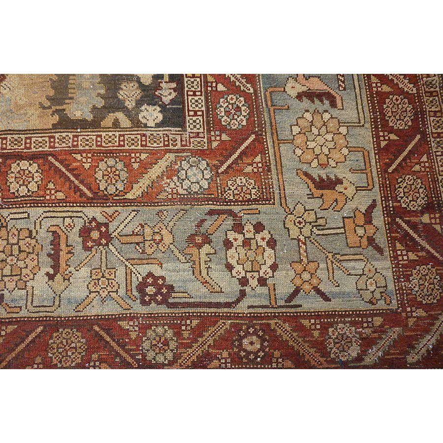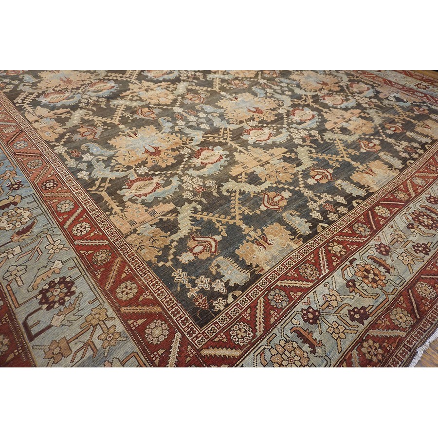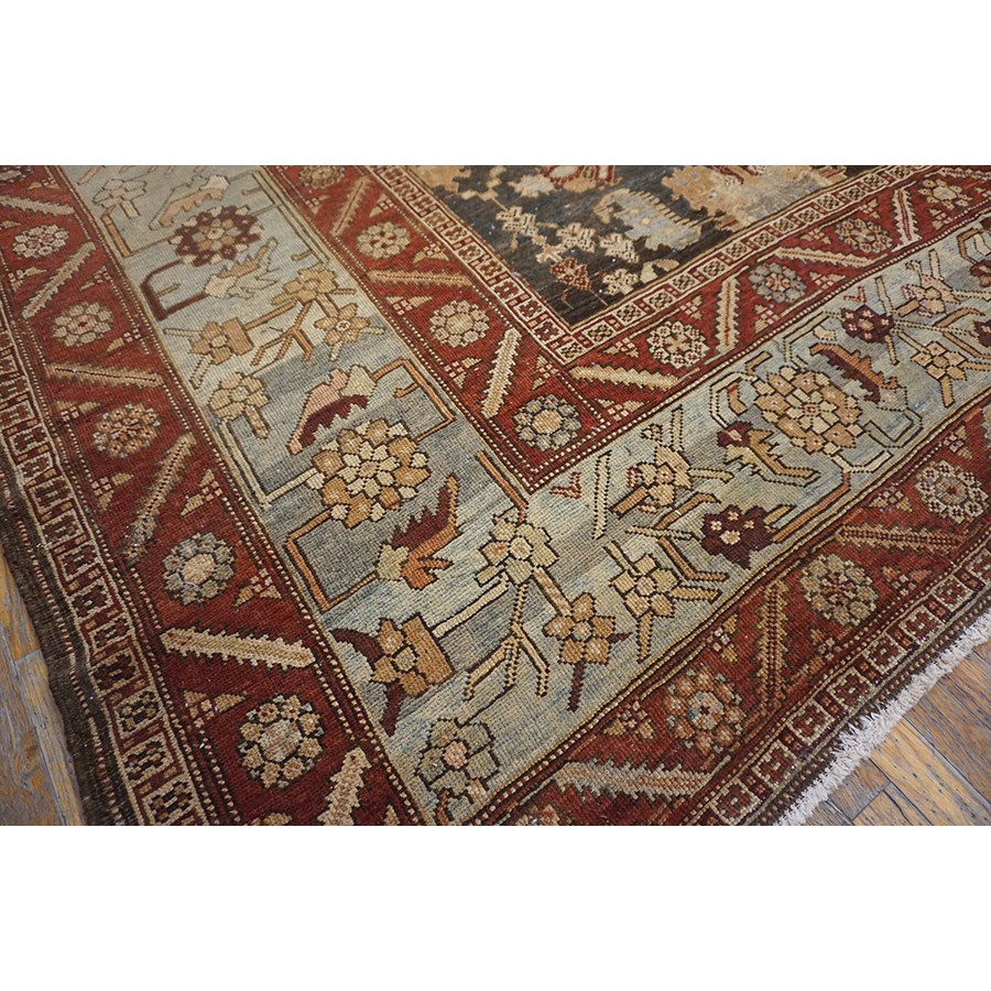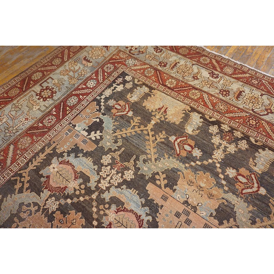 DescriptionBakhtiariThese carpets are made in the Chahar Mahal (Four Places) are of southwest Iran by sedentary villagers, some Armenian, rather than by the nomadic Bakhtiari tribespeoples. They tend to large, square sizes, often over 20 feet in length. Designs are frequently a panel pattern derived from garden carpets, but also lozenge lattices or angular medallions also appear. Colors are bright and the weave is robust. A small group of rugs was made for the Bakhtiari Khans (tribal leaders) early in the 20th century. They are often inscribed and are of very fine workmanship. The more frequently encountered pieces are moderately priced and often in excellent condition. | |