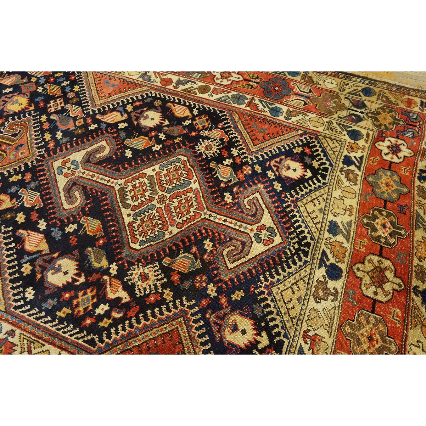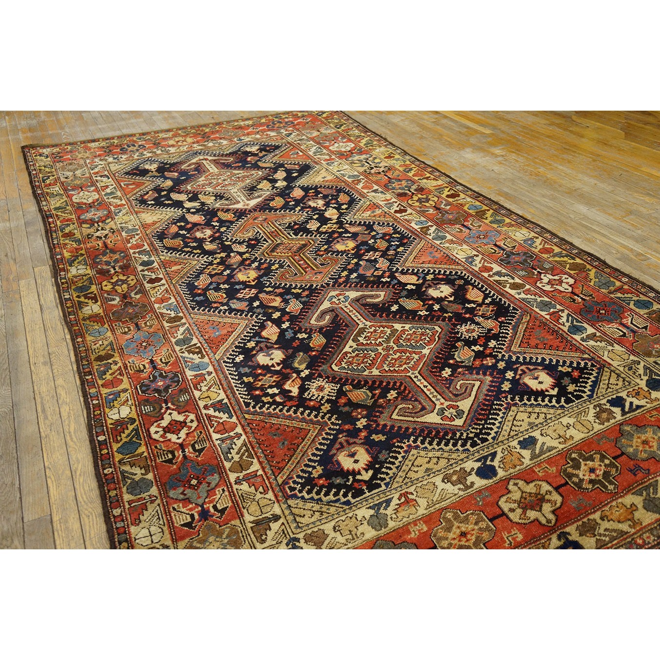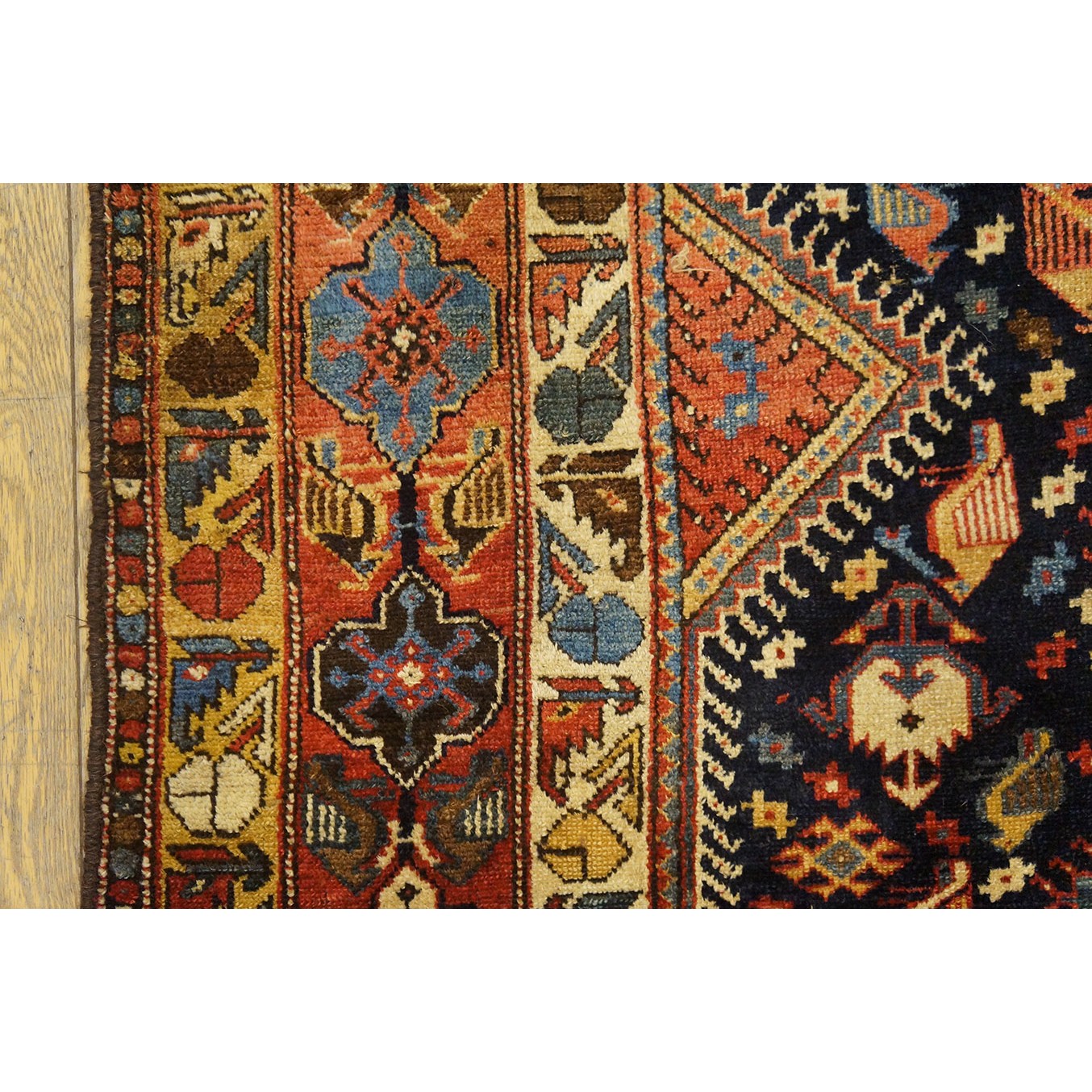 DescriptionBakhtiariThese carpets are made in the Chahar Mahal (Four Places) are of southwest Iran by sedentary villagers, some Armenian, rather than by the nomadic Bakhtiari tribespeoples. They tend to large, square sizes, often over 20 feet in length. Designs are frequently a panel pattern derived from garden carpets, but also lozenge lattices or angular medallions also appear. Colors are bright and the weave is robust. A small group of rugs was made for the Bakhtiari Khans (tribal leaders) early in the 20th century. They are often inscribed and are of very fine workmanship. The more frequently encountered pieces are moderately priced and often in excellent condition. | |