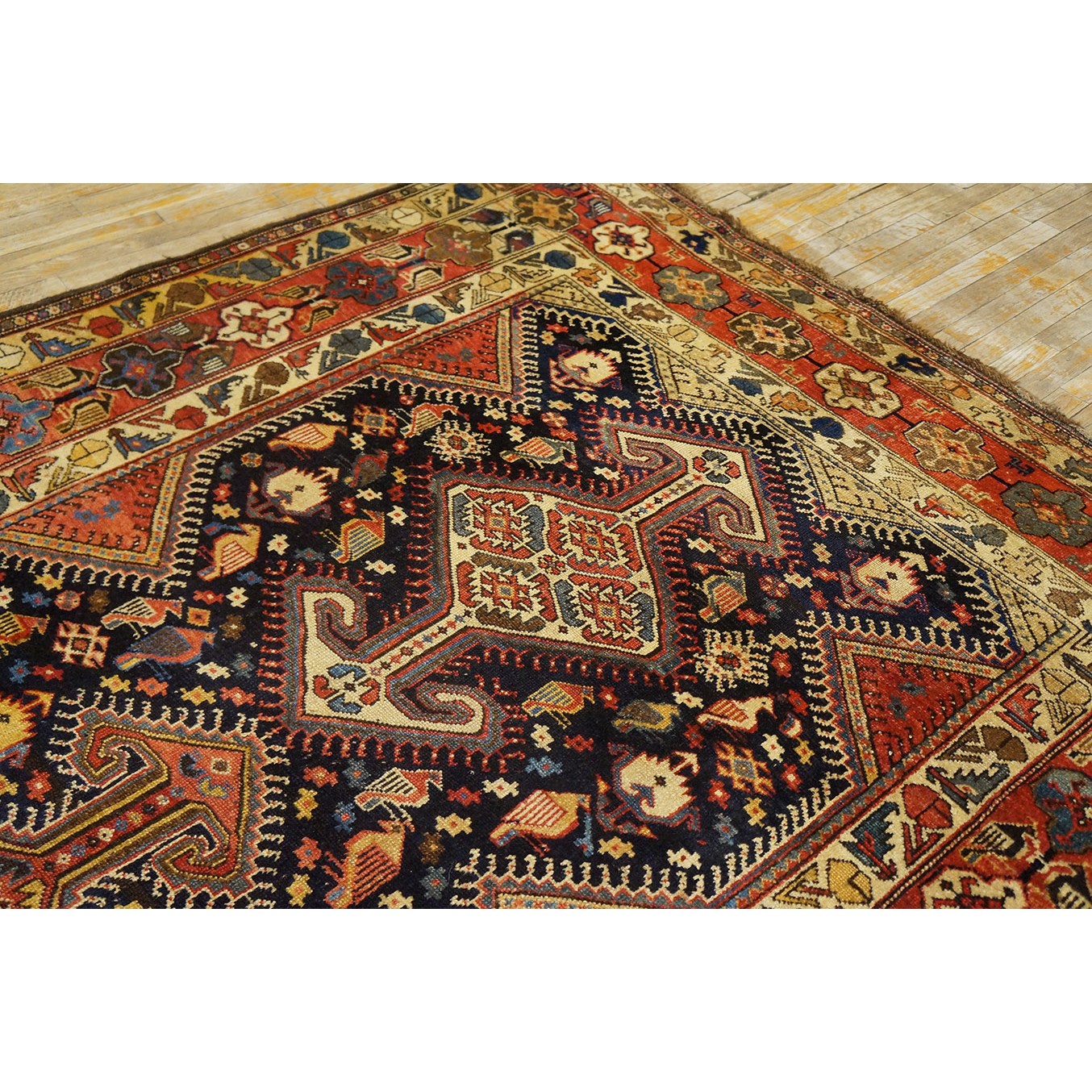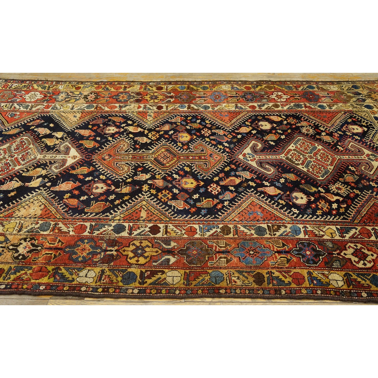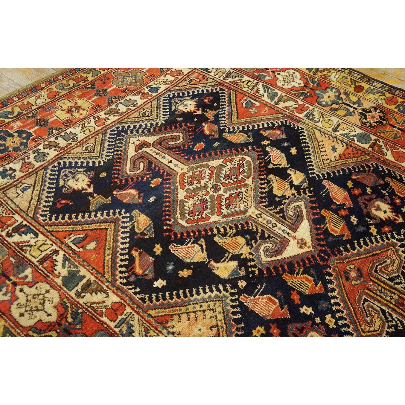 DescriptionBakhtiariThese carpets are made in the Chahar Mahal (Four Places) are of southwest Iran by sedentary villagers, some Armenian, rather than by the nomadic Bakhtiari tribespeoples. They tend to large, square sizes, often over 20 feet in length. Designs are frequently a panel pattern derived from garden carpets, but also lozenge lattices or angular medallions also appear. Colors are bright and the weave is robust. A small group of rugs was made for the Bakhtiari Khans (tribal leaders) early in the 20th century. They are often inscribed and are of very fine workmanship. The more frequently encountered pieces are moderately priced and often in excellent condition. | |