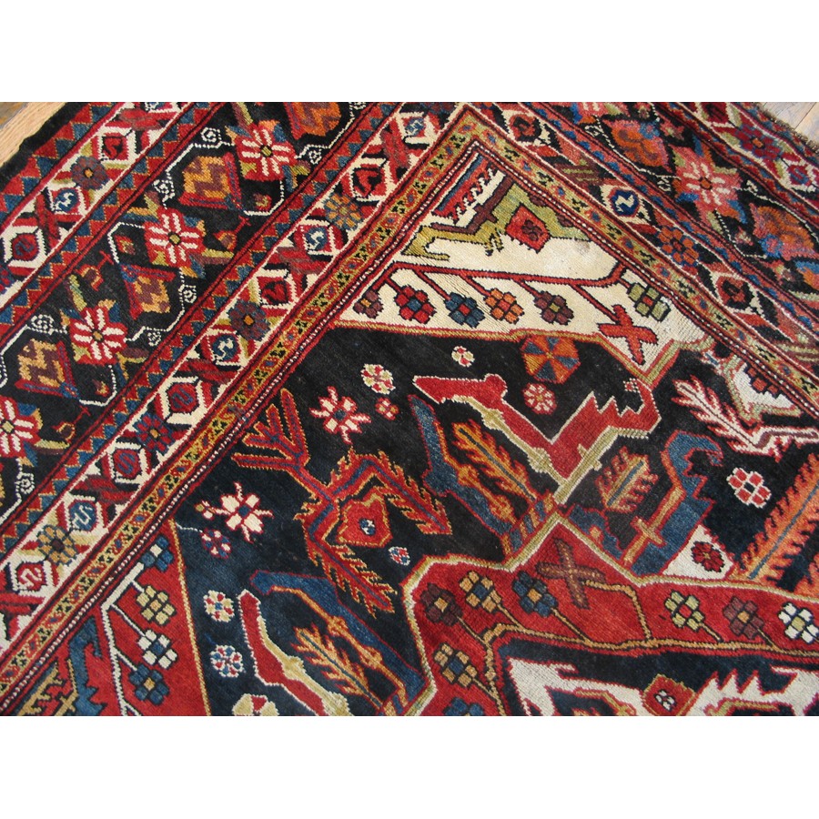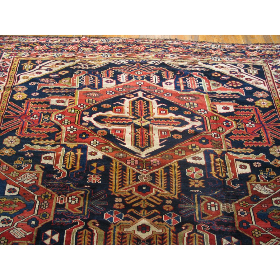 DescriptionBakhtiariThese carpets are made in the Chahar Mahal (Four Places) are of southwest Iran by sedentary villagers, some Armenian, rather than by the nomadic Bakhtiari tribespeoples. They tend to large, square sizes, often over 20 feet in length. Designs are frequently a panel pattern derived from garden carpets, but also lozenge lattices or angular medallions also appear. Colors are bright and the weave is robust. A small group of rugs was made for the Bakhtiari Khans (tribal leaders) early in the 20th century. They are often inscribed and are of very fine workmanship. The more frequently encountered pieces are moderately priced and often in excellent condition. | |
