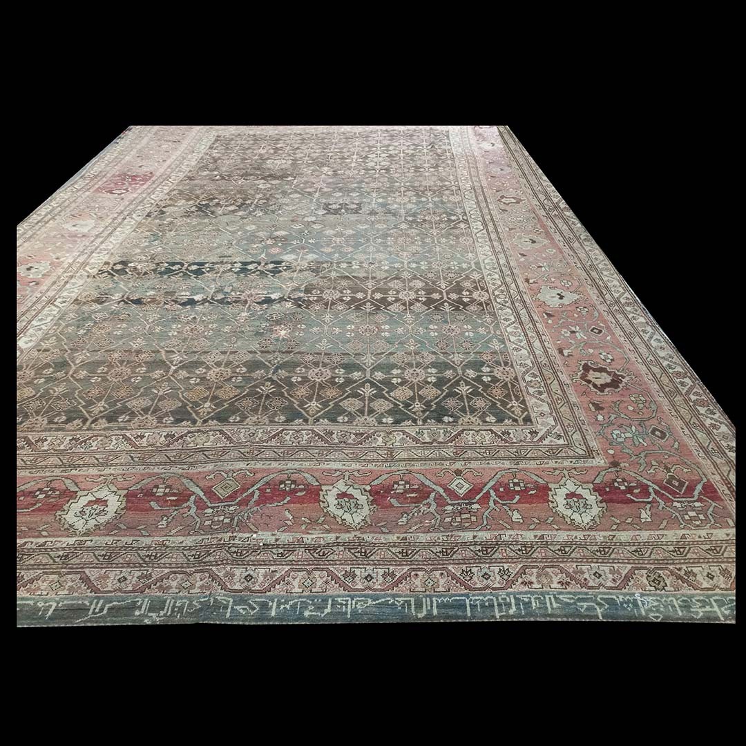DescriptionBakhtiariThese carpets are made in the Chahar Mahal (Four Places) are of southwest Iran by sedentary villagers, some Armenian, rather than by the nomadic Bakhtiari tribespeoples. They tend to large, square sizes, often over 20 feet in length. Designs are frequently a panel pattern derived from garden carpets, but also lozenge lattices or angular medallions also appear. Colors are bright and the weave is robust. A small group of rugs was made for the Bakhtiari Khans (tribal leaders) early in the 20th century. They are often inscribed and are of very fine workmanship. The more frequently encountered pieces are moderately priced and often in excellent condition. | |