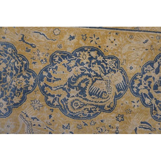 DescriptionBakhtiariThese carpets are made in the Chahar Mahal (Four Places) are of southwest Iran by sedentary villagers, some Armenian, rather than by the nomadic Bakhtiari tribespeoples. They tend to large, square sizes, often over 20 feet in length. Designs are frequently a panel pattern derived from garden carpets, but also lozenge lattices or angular medallions also appear. Colors are bright and the weave is robust. A small group of rugs was made for the Bakhtiari Khans (tribal leaders) early in the 20th century. They are often inscribed and are of very fine workmanship. The more frequently encountered pieces are moderately priced and often in excellent condition. | |