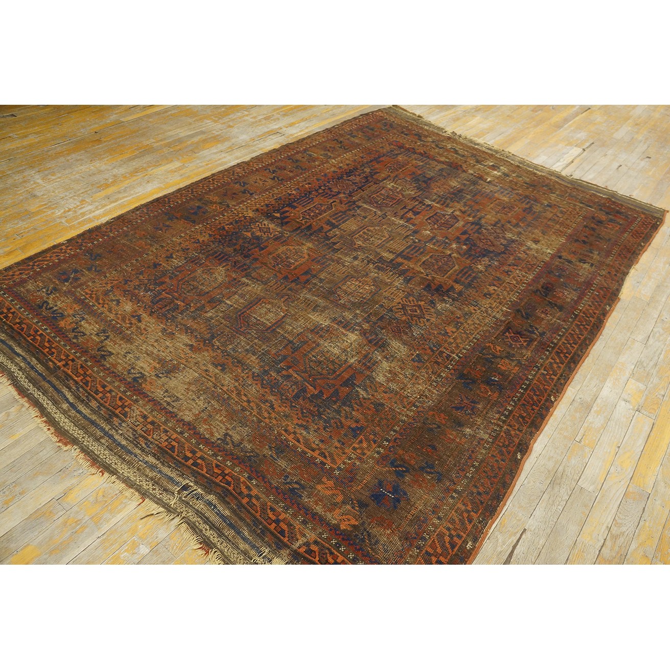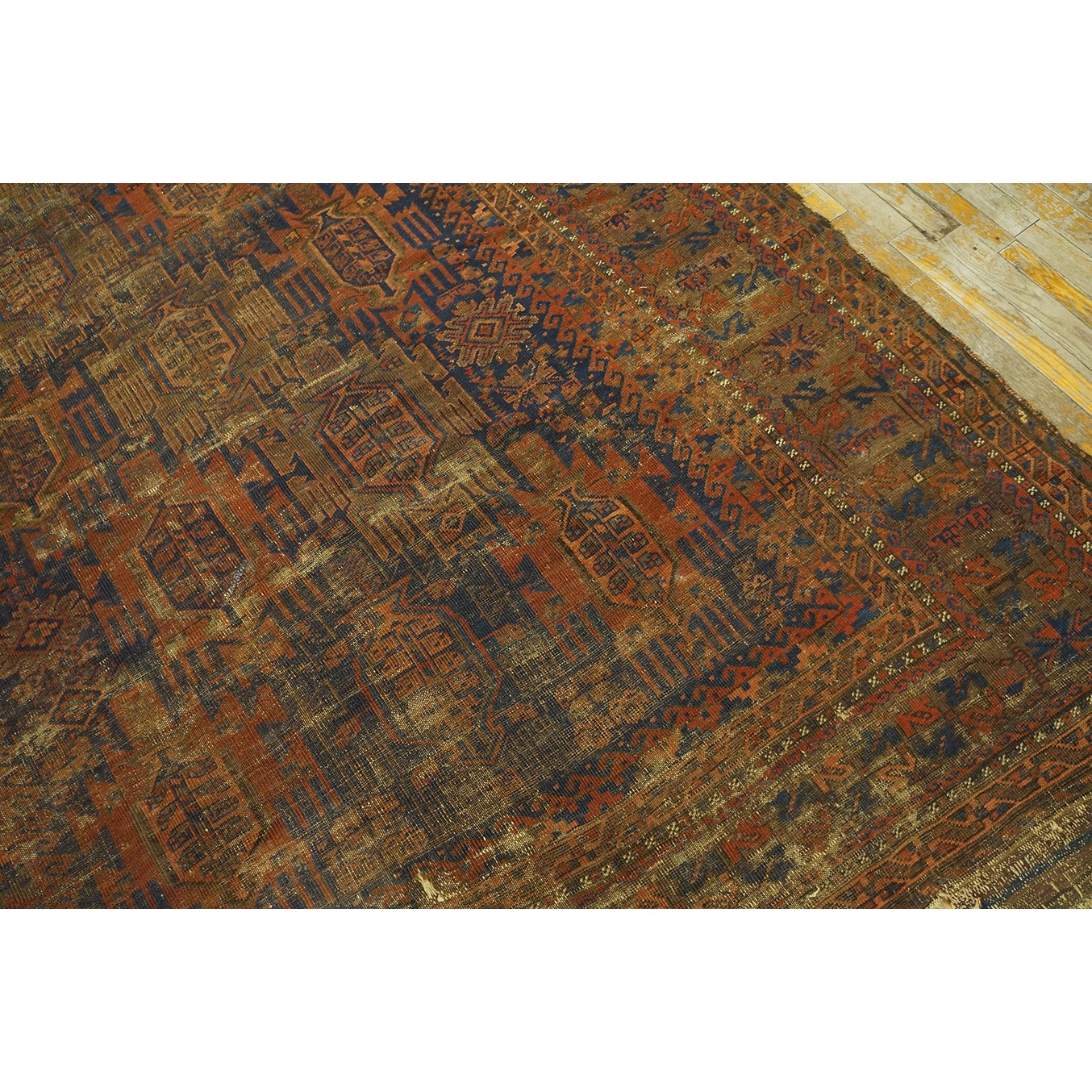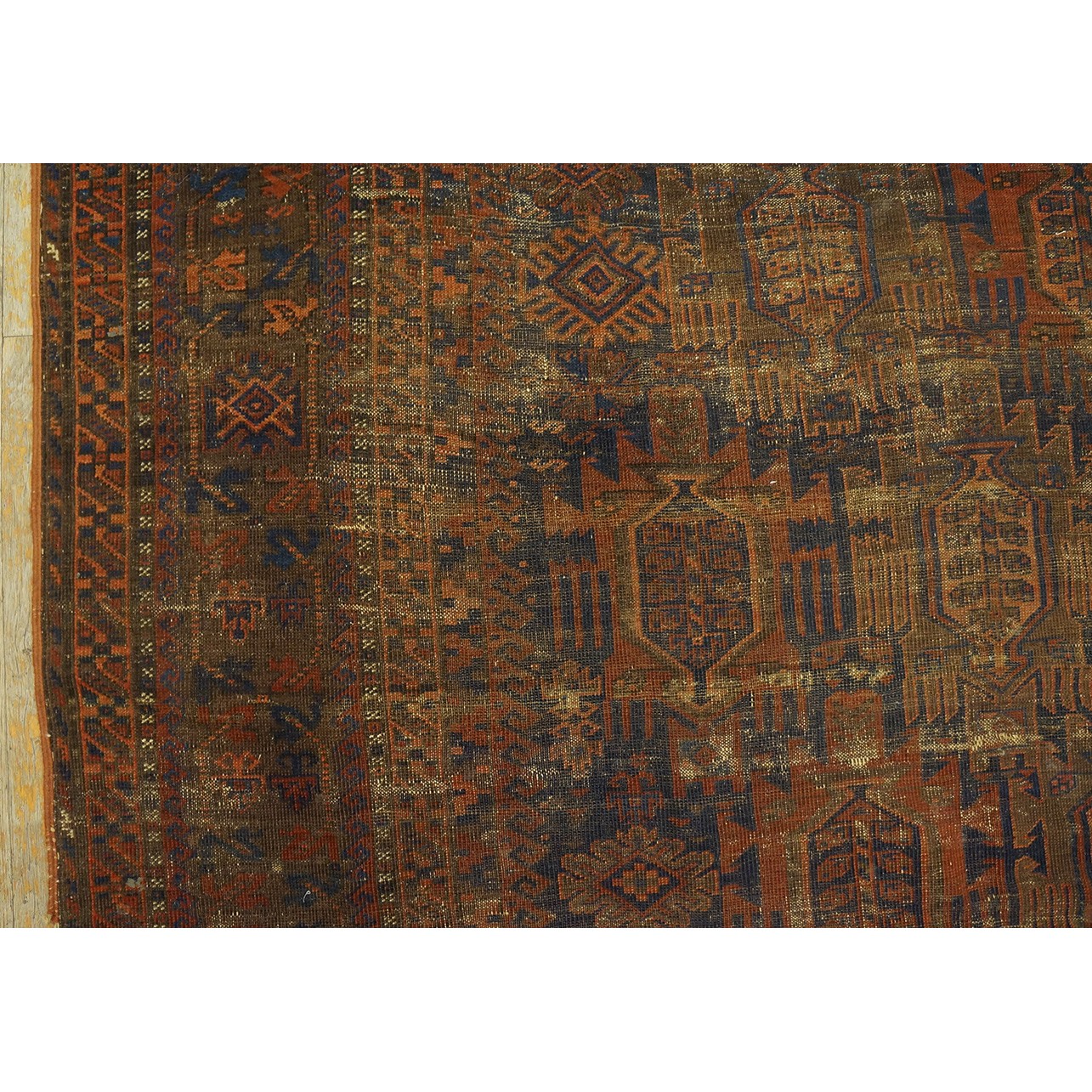 DescriptionBaluchA name given to (mostly) pile rugs woven by Indo-European Tribal groups in Easter Iran (Khorossana nd Sistan Provinces) and Northwest Afghanistan (Herat Prov.). The true Baluch tribes of Baluchistan do not weave pile rugs of excellent wool, the sizes tend to be small, up to 5 x 7, with a few older large carpets. The tones are dark blues, camel, reds and purples with white accents. In older pieces the colors are jewel-like and the texture is velvety. The tribes dwell in black goat-hair tents and migrate seasonally. Saddlebags, pillows, animal trappings and other small items are woven. Camelfield player rugs are particularly characteristic and desirable. Most examples are inexpensive, but a serious collector market exists for the best. | |