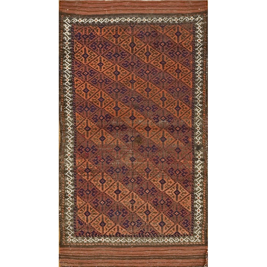 DescriptionBaluchA name given to (mostly) pile rugs woven by Indo-European Tribal groups in Easter Iran (Khorossana nd Sistan Provinces) and Northwest Afghanistan (Herat Prov.). The true Baluch tribes of Baluchistan do not weave pile rugs of excellent wool, the sizes tend to be small, up to 5 x 7, with a few older large carpets. The tones are dark blues, camel, reds and purples with white accents. In older pieces the colors are jewel-like and the texture is velvety. The tribes dwell in black goat-hair tents and migrate seasonally. Saddlebags, pillows, animal trappings and other small items are woven. Camelfield player rugs are particularly characteristic and desirable. Most examples are inexpensive, but a serious collector market exists for the best. | |