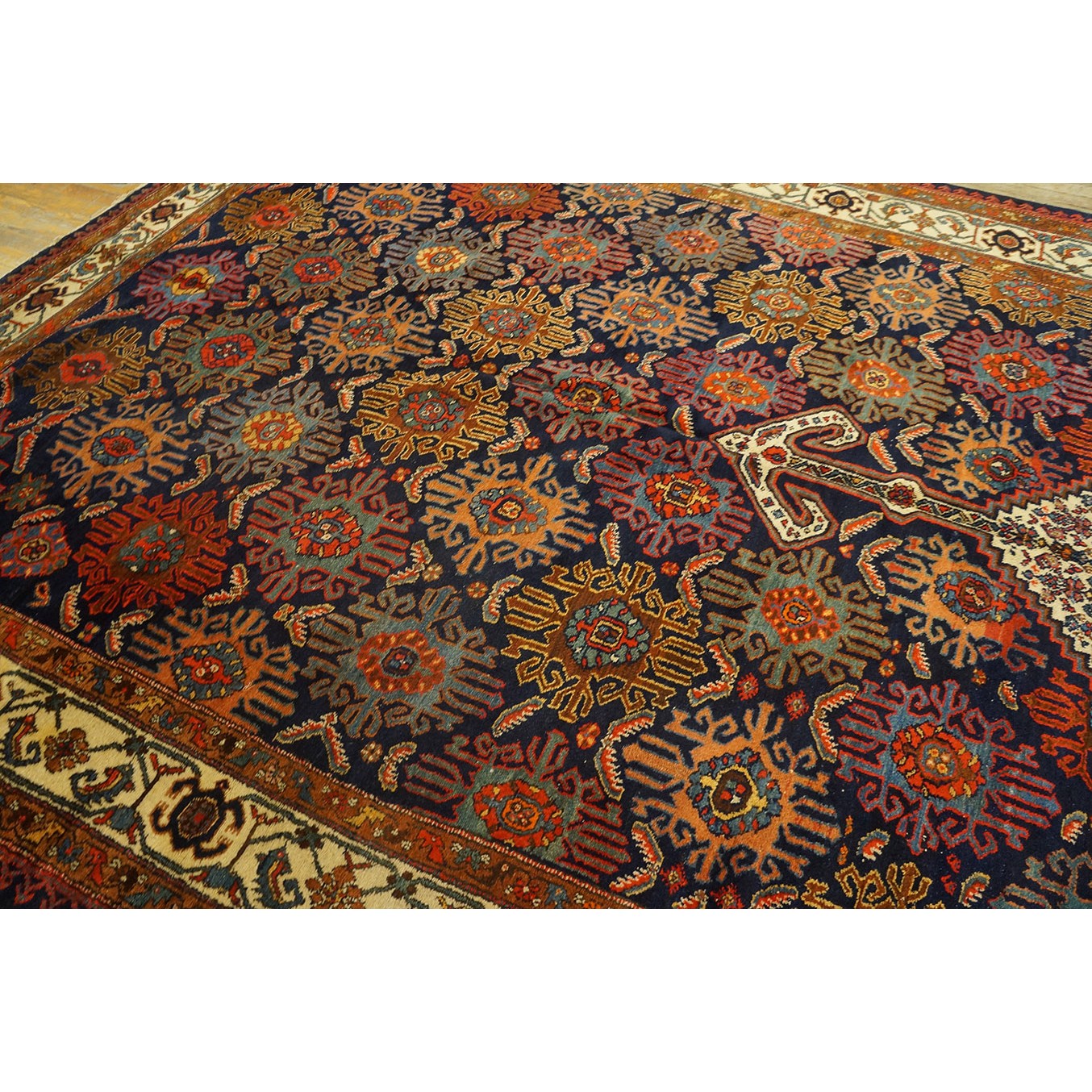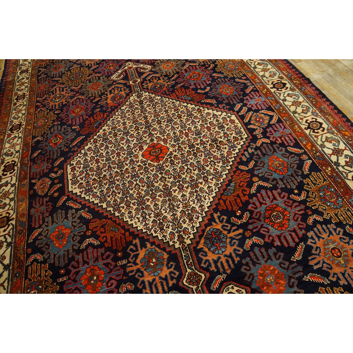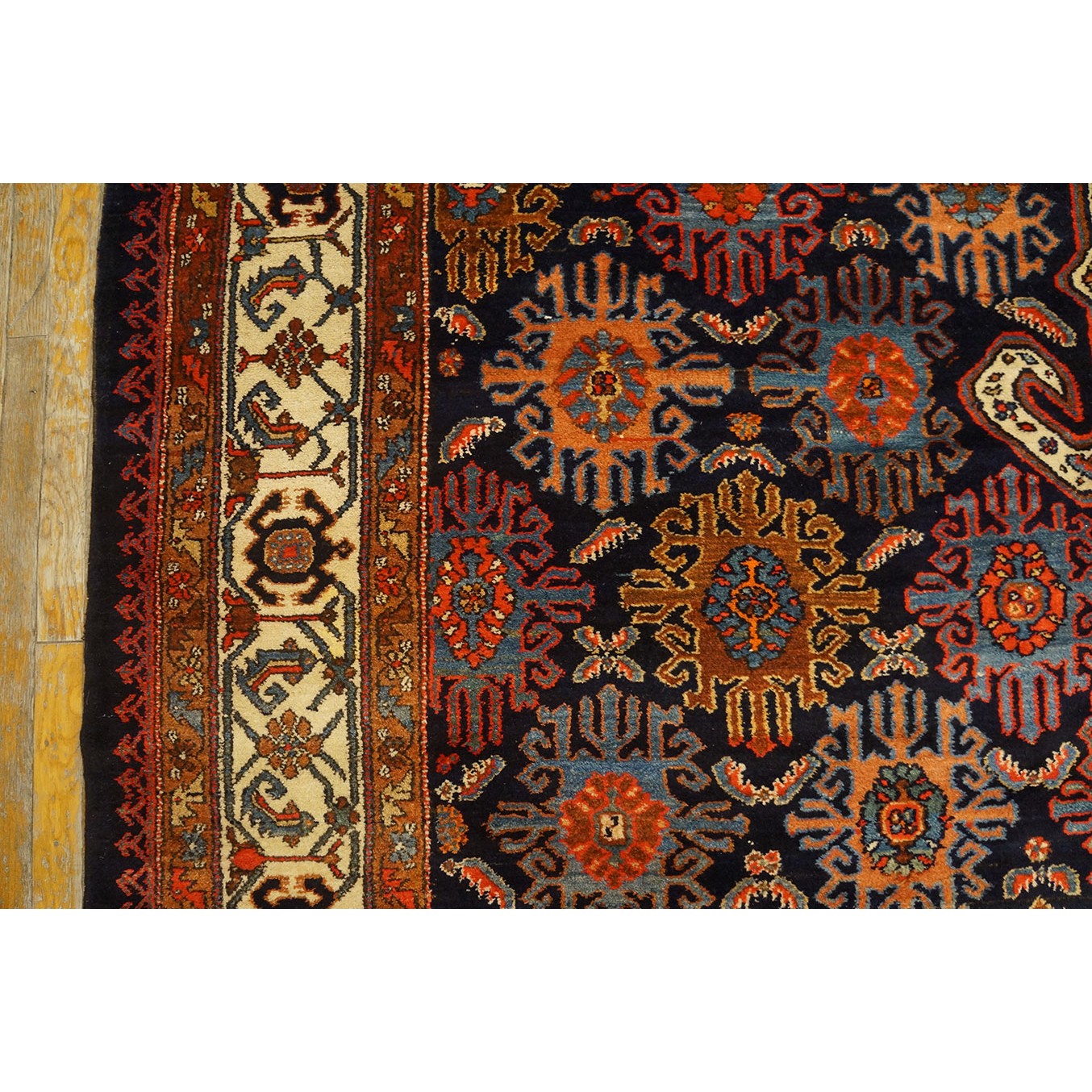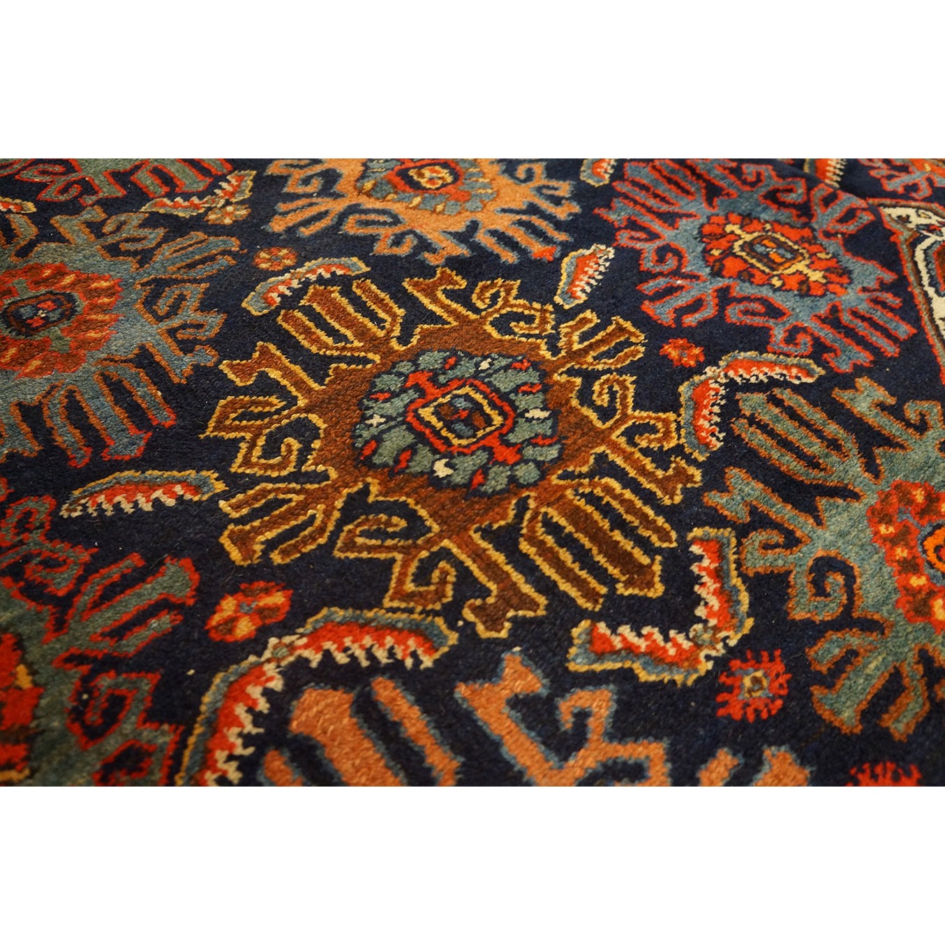 DescriptionBibikabadThis town is located near Hamadan in western Iran and since the later 19th century has specialized in carpet sizes in overall patterns. Modern examples overlay these designs with a small central medallion. The outer border of antique pieces, as with contemporary Hamadans were particular popular and one can still find old examples up to 12 x 20. Runners and 4 x 6 of antique vintage are very rare. The weave is coarse and jufti knotting is frequent. Prices are moderate, possibly a bargain considering the rarity of the type. | |