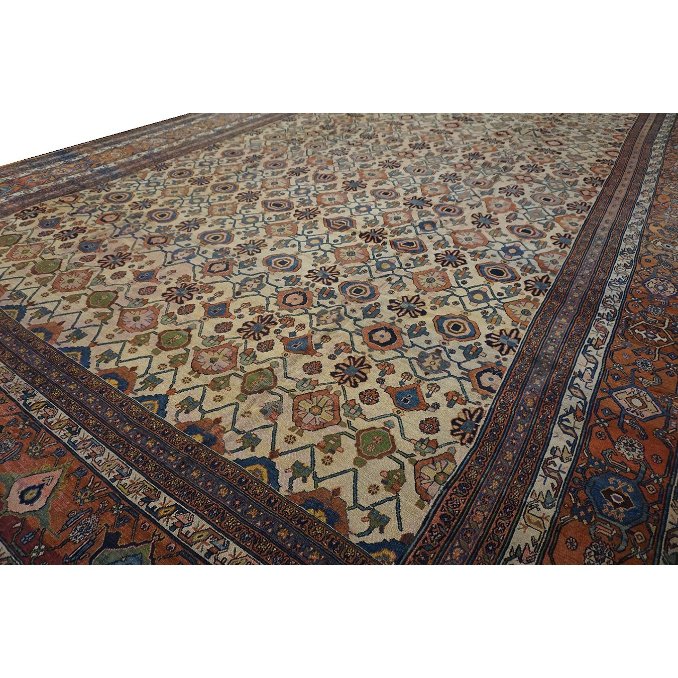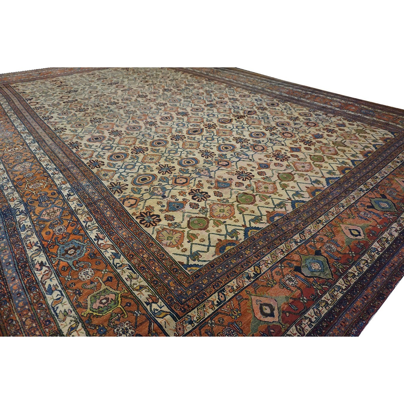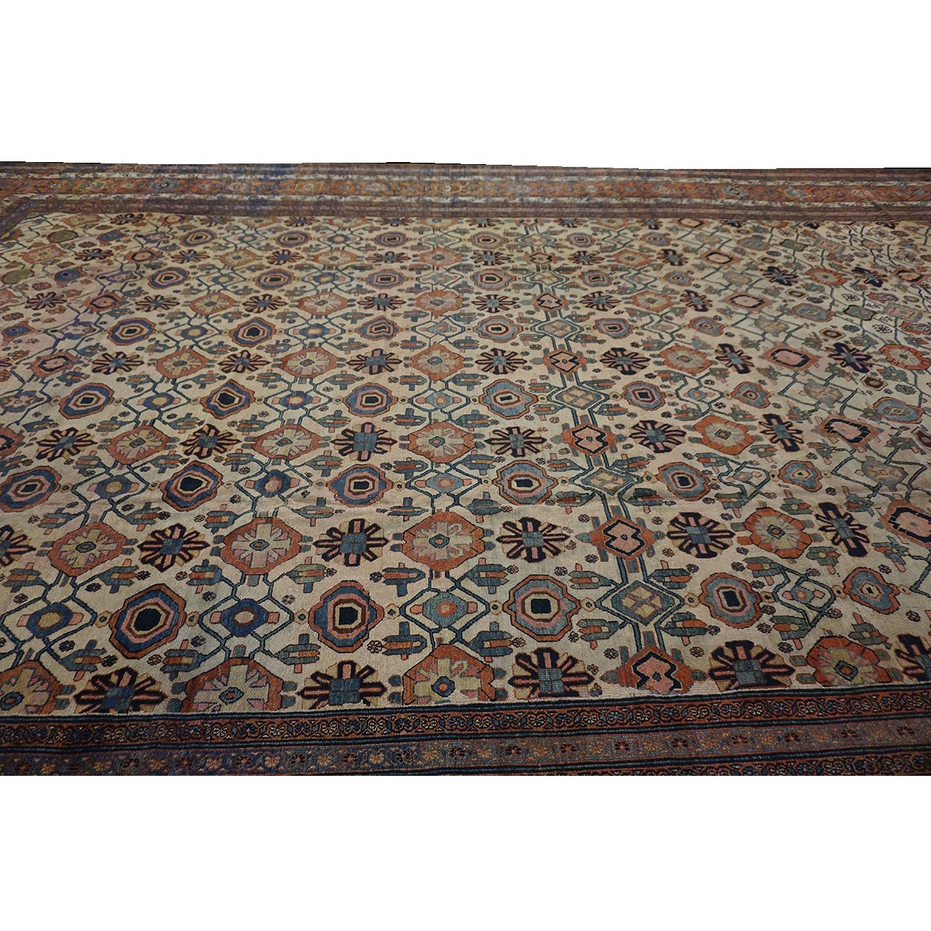 DescriptionBibikabadThis town is located near Hamadan in western Iran and since the later 19th century has specialized in carpet sizes in overall patterns. Modern examples overlay these designs with a small central medallion. The outer border of antique pieces, as with contemporary Hamadans were particular popular and one can still find old examples up to 12 x 20. Runners and 4 x 6 of antique vintage are very rare. The weave is coarse and jufti knotting is frequent. Prices are moderate, possibly a bargain considering the rarity of the type. | |