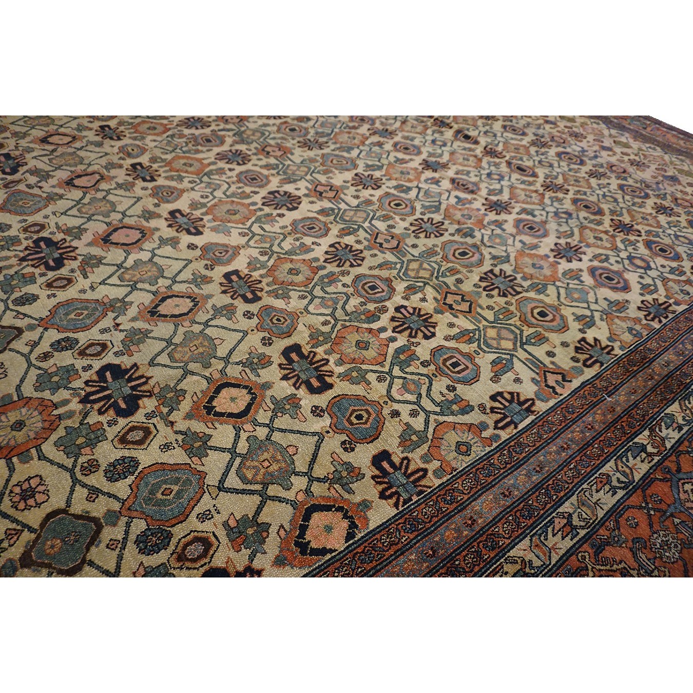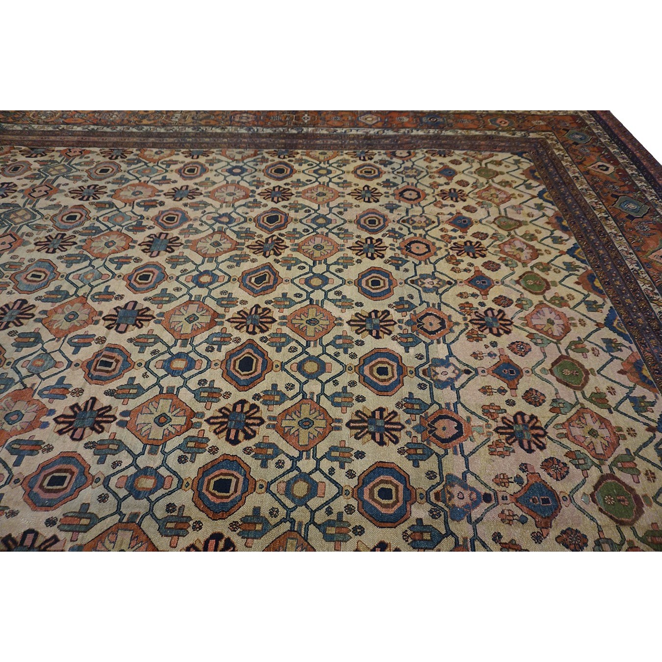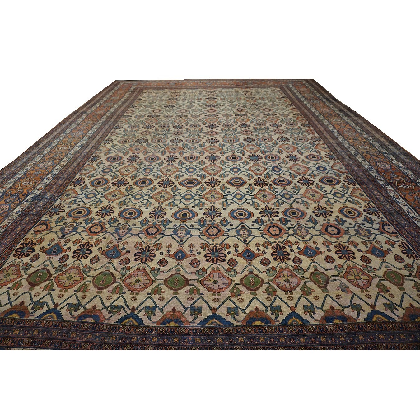 DescriptionBibikabadThis town is located near Hamadan in western Iran and since the later 19th century has specialized in carpet sizes in overall patterns. Modern examples overlay these designs with a small central medallion. The outer border of antique pieces, as with contemporary Hamadans were particular popular and one can still find old examples up to 12 x 20. Runners and 4 x 6 of antique vintage are very rare. The weave is coarse and jufti knotting is frequent. Prices are moderate, possibly a bargain considering the rarity of the type. | |