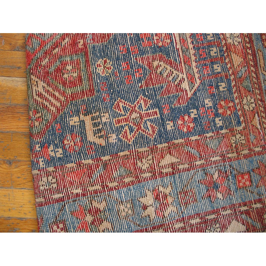 DescriptionCaucasianThis is the general heading for all rugs made in the Caucasus mountains and in the trans-Caucasus areas, north of the Arax River, and between the Black and Caspian Seas. This includes rugs from the Kazak, Karabagh, Gendje, Koghan, Talish, Akstafa, Shirvan, Baku, Kuba and hesghi districts and the variants and subtypes thereof. The rugs are usually in scatter sizes and of all wool construction, with bold colors and geometric patterns, from the 18th through 20th centuries. Prices range widely depending on rarity, color, design and condition. A strong collector market exists for the better examples. | |