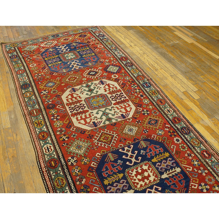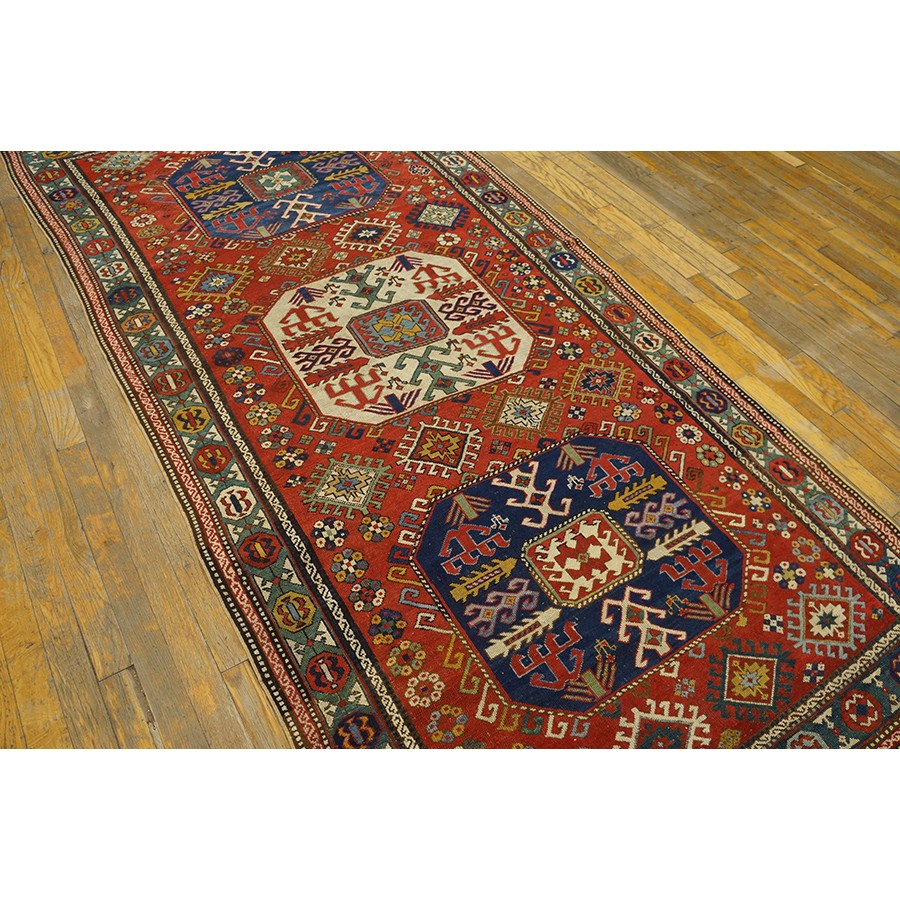 DescriptionCaucasianThis is the general heading for all rugs made in the Caucasus mountains and in the trans-Caucasus areas, north of the Arax River, and between the Black and Caspian Seas. This includes rugs from the Kazak, Karabagh, Gendje, Koghan, Talish, Akstafa, Shirvan, Baku, Kuba and hesghi districts and the variants and subtypes thereof. The rugs are usually in scatter sizes and of all wool construction, with bold colors and geometric patterns, from the 18th through 20th centuries. Prices range widely depending on rarity, color, design and condition. A strong collector market exists for the better examples. | |