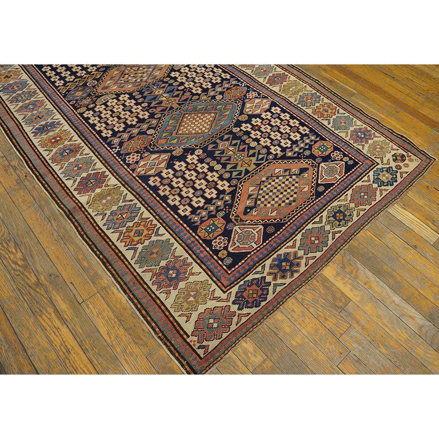 DescriptionCaucasianThis is the general heading for all rugs made in the Caucasus mountains and in the trans-Caucasus areas, north of the Arax River, and between the Black and Caspian Seas. This includes rugs from the Kazak, Karabagh, Gendje, Koghan, Talish, Akstafa, Shirvan, Baku, Kuba and hesghi districts and the variants and subtypes thereof. The rugs are usually in scatter sizes and of all wool construction, with bold colors and geometric patterns, from the 18th through 20th centuries. Prices range widely depending on rarity, color, design and condition. A strong collector market exists for the better examples. | |