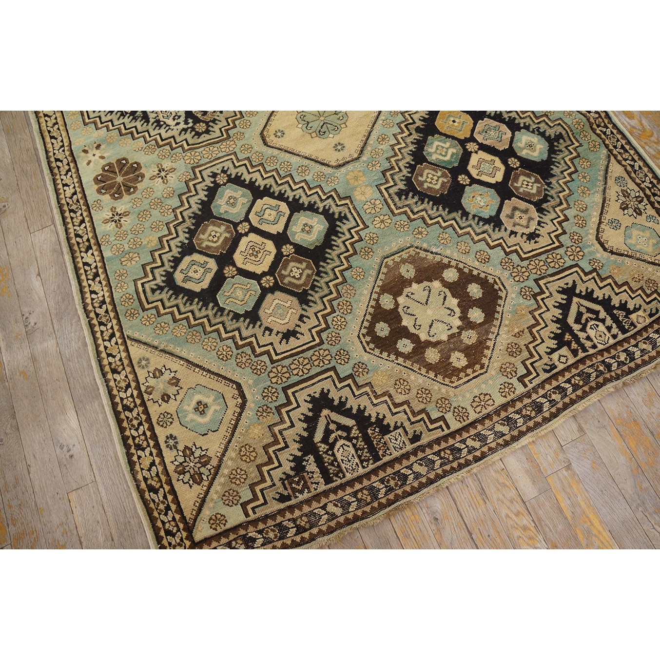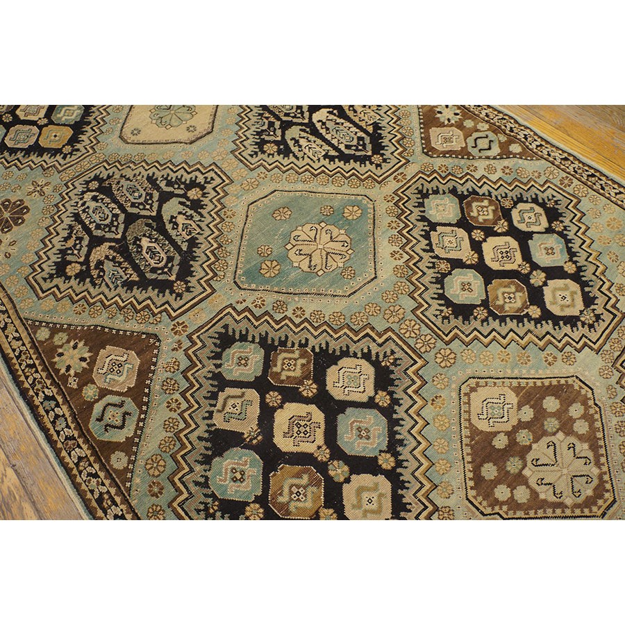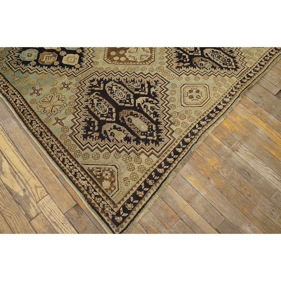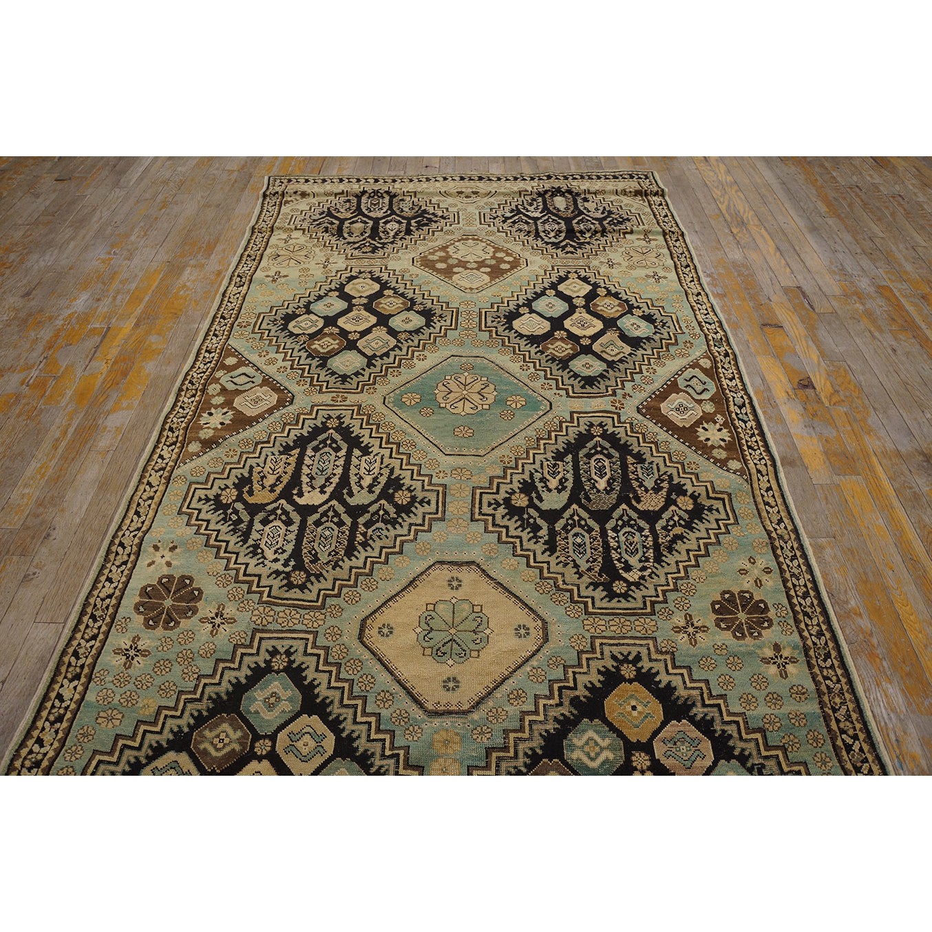 DescriptionCaucasianThis is the general heading for all rugs made in the Caucasus mountains and in the trans-Caucasus areas, north of the Arax River, and between the Black and Caspian Seas. This includes rugs from the Kazak, Karabagh, Gendje, Koghan, Talish, Akstafa, Shirvan, Baku, Kuba and hesghi districts and the variants and subtypes thereof. The rugs are usually in scatter sizes and of all wool construction, with bold colors and geometric patterns, from the 18th through 20th centuries. Prices range widely depending on rarity, color, design and condition. A strong collector market exists for the better examples. | |