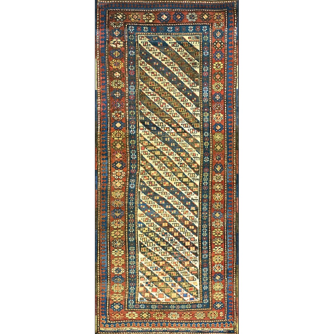 DescriptionCaucasianThis is the general heading for all rugs made in the Caucasus mountains and in the trans-Caucasus areas, north of the Arax River, and between the Black and Caspian Seas. This includes rugs from the Kazak, Karabagh, Gendje, Koghan, Talish, Akstafa, Shirvan, Baku, Kuba and hesghi districts and the variants and subtypes thereof. The rugs are usually in scatter sizes and of all wool construction, with bold colors and geometric patterns, from the 18th through 20th centuries. Prices range widely depending on rarity, color, design and condition. A strong collector market exists for the better examples. | |