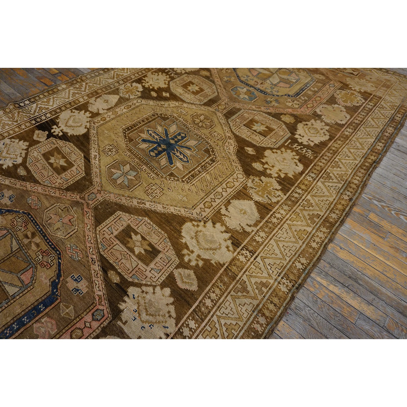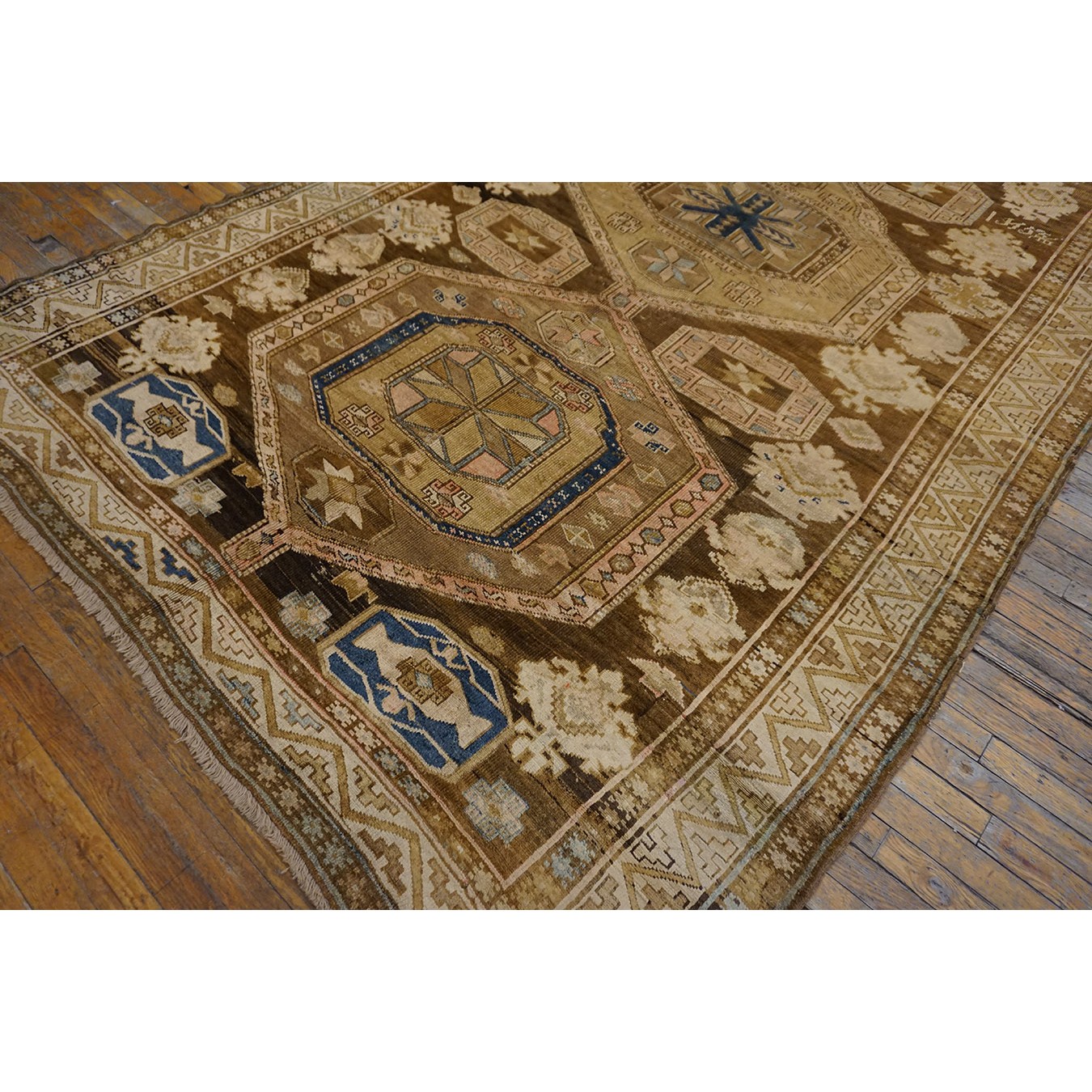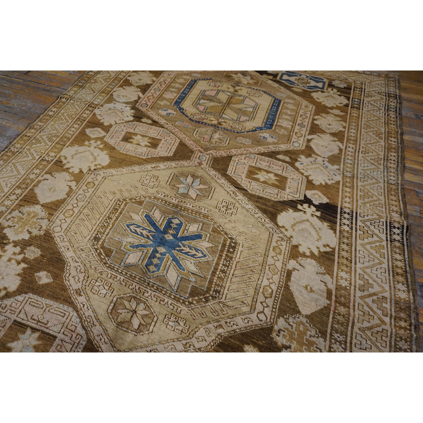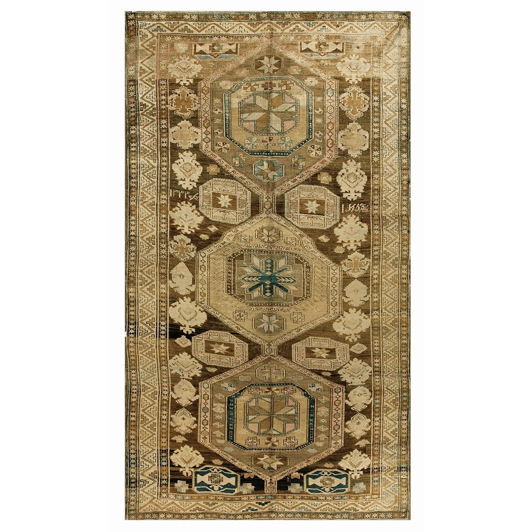DescriptionCaucasianThis is the general heading for all rugs made in the Caucasus mountains and in the trans-Caucasus areas, north of the Arax River, and between the Black and Caspian Seas. This includes rugs from the Kazak, Karabagh, Gendje, Koghan, Talish, Akstafa, Shirvan, Baku, Kuba and hesghi districts and the variants and subtypes thereof. The rugs are usually in scatter sizes and of all wool construction, with bold colors and geometric patterns, from the 18th through 20th centuries. Prices range widely depending on rarity, color, design and condition. A strong collector market exists for the better examples. | |