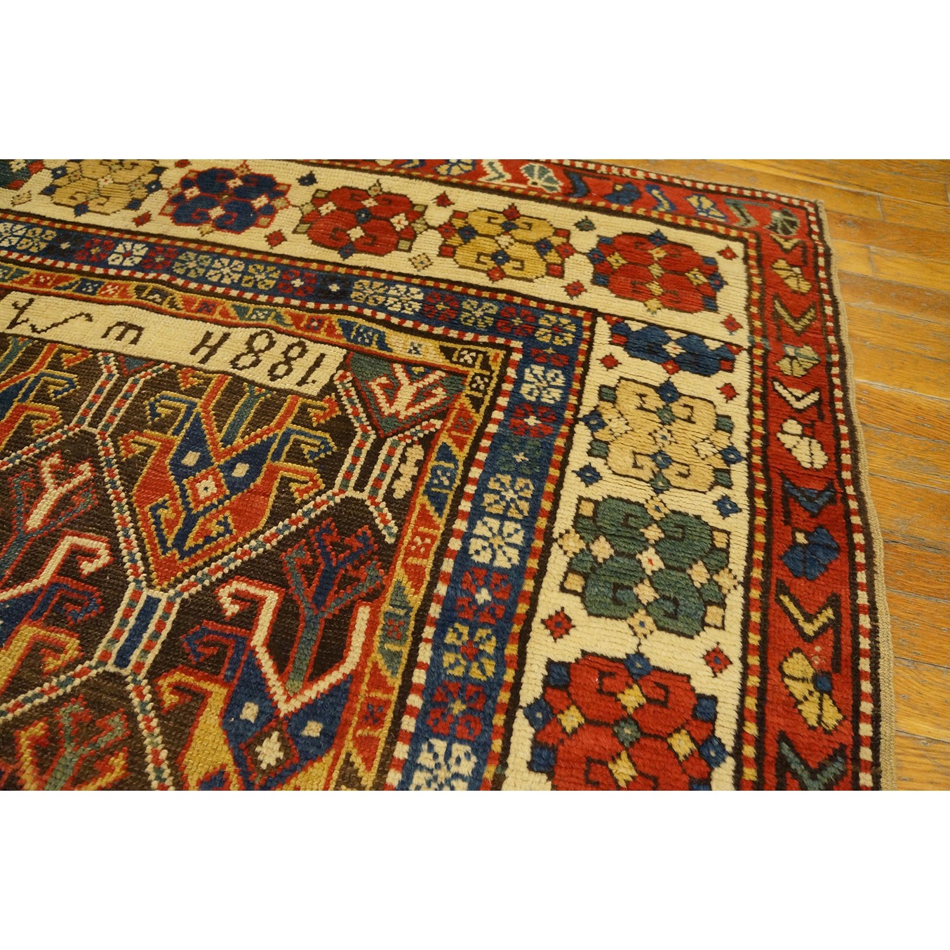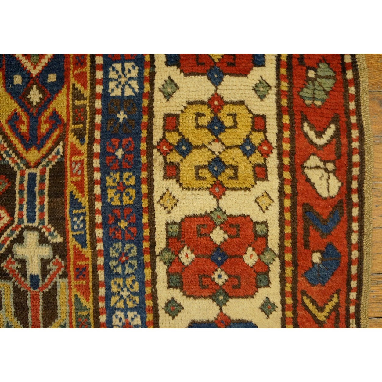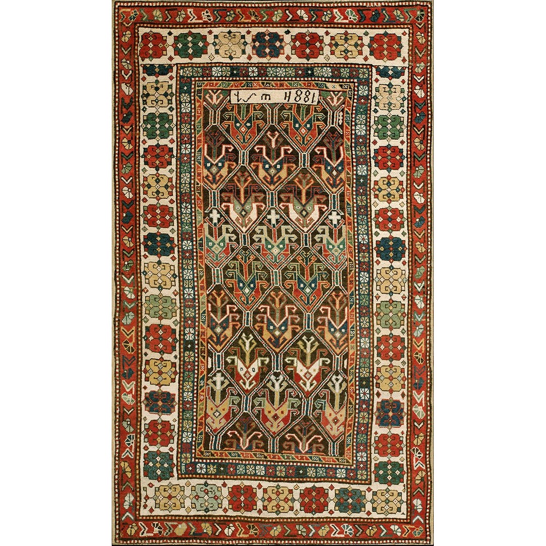 DescriptionCaucasianThis is the general heading for all rugs made in the Caucasus mountains and in the trans-Caucasus areas, north of the Arax River, and between the Black and Caspian Seas. This includes rugs from the Kazak, Karabagh, Gendje, Koghan, Talish, Akstafa, Shirvan, Baku, Kuba and hesghi districts and the variants and subtypes thereof. The rugs are usually in scatter sizes and of all wool construction, with bold colors and geometric patterns, from the 18th through 20th centuries. Prices range widely depending on rarity, color, design and condition. A strong collector market exists for the better examples. | |