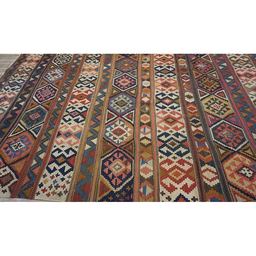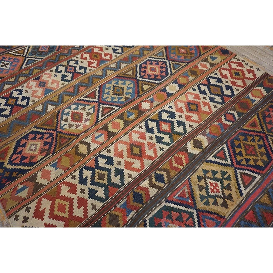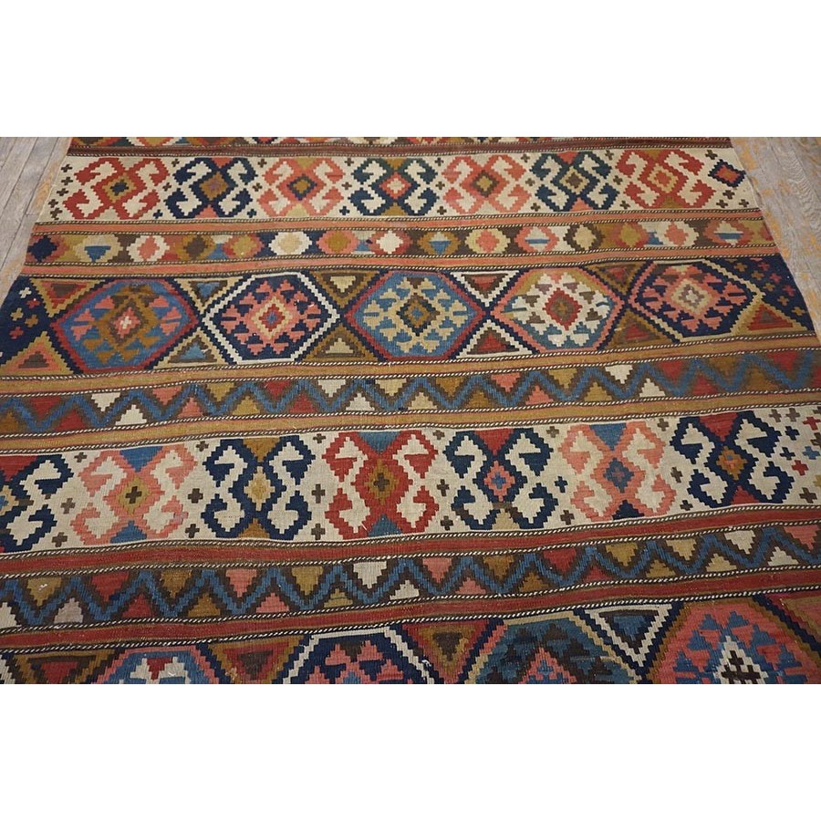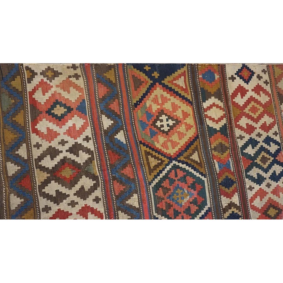 DescriptionCaucasianThis is the general heading for all rugs made in the Caucasus mountains and in the trans-Caucasus areas, north of the Arax River, and between the Black and Caspian Seas. This includes rugs from the Kazak, Karabagh, Gendje, Koghan, Talish, Akstafa, Shirvan, Baku, Kuba and hesghi districts and the variants and subtypes thereof. The rugs are usually in scatter sizes and of all wool construction, with bold colors and geometric patterns, from the 18th through 20th centuries. Prices range widely depending on rarity, color, design and condition. A strong collector market exists for the better examples. | |