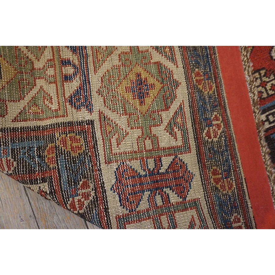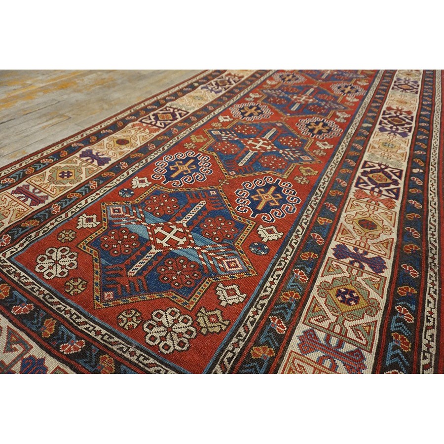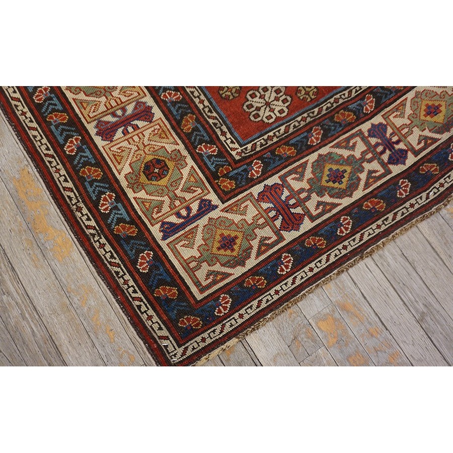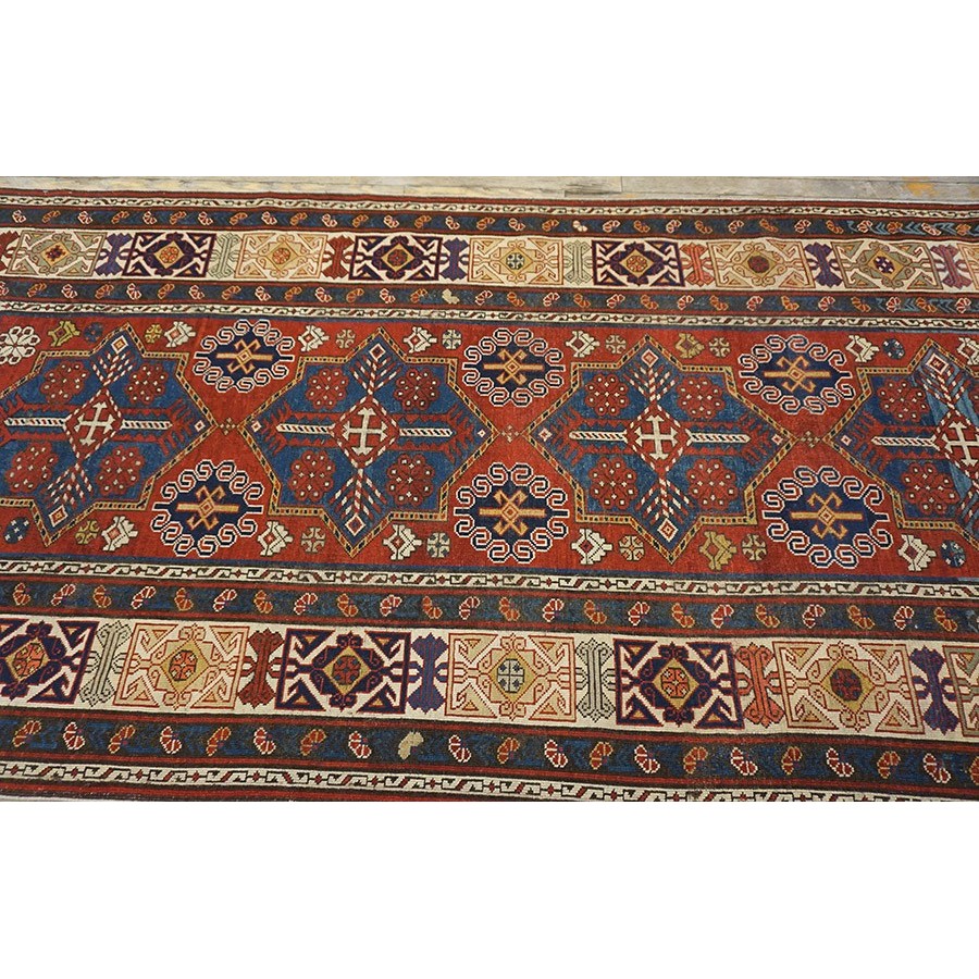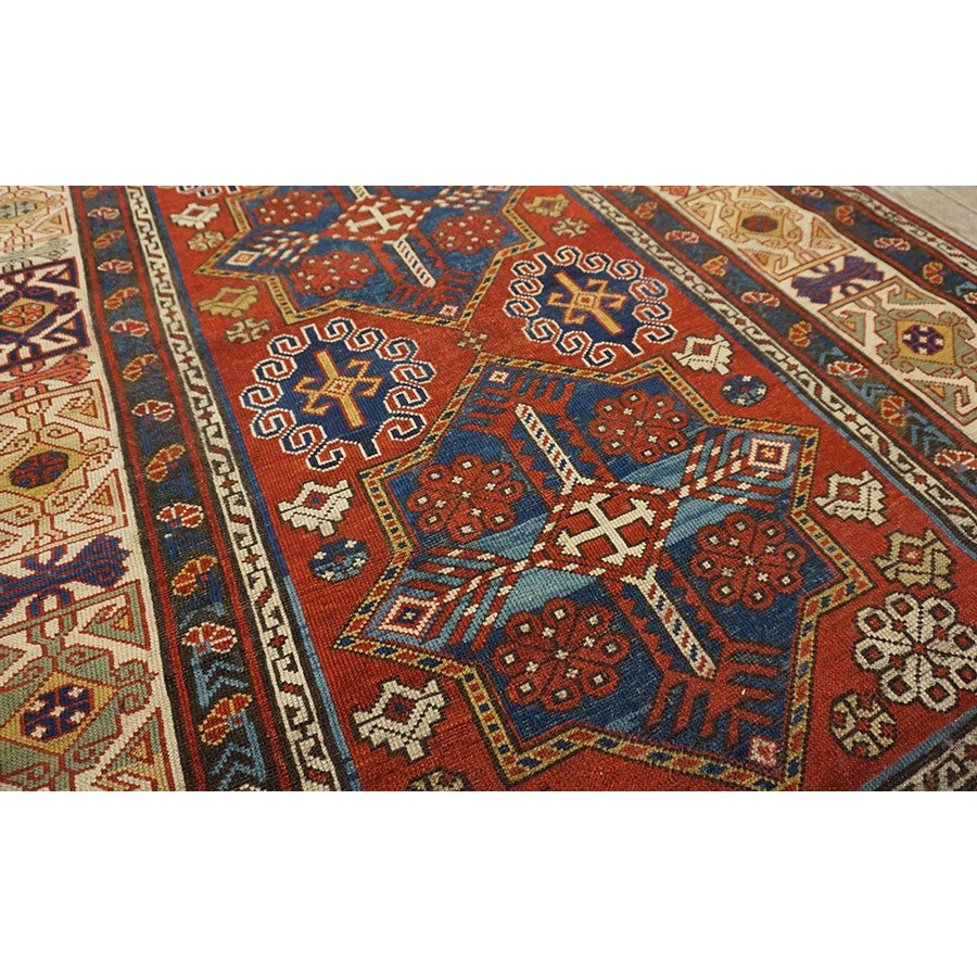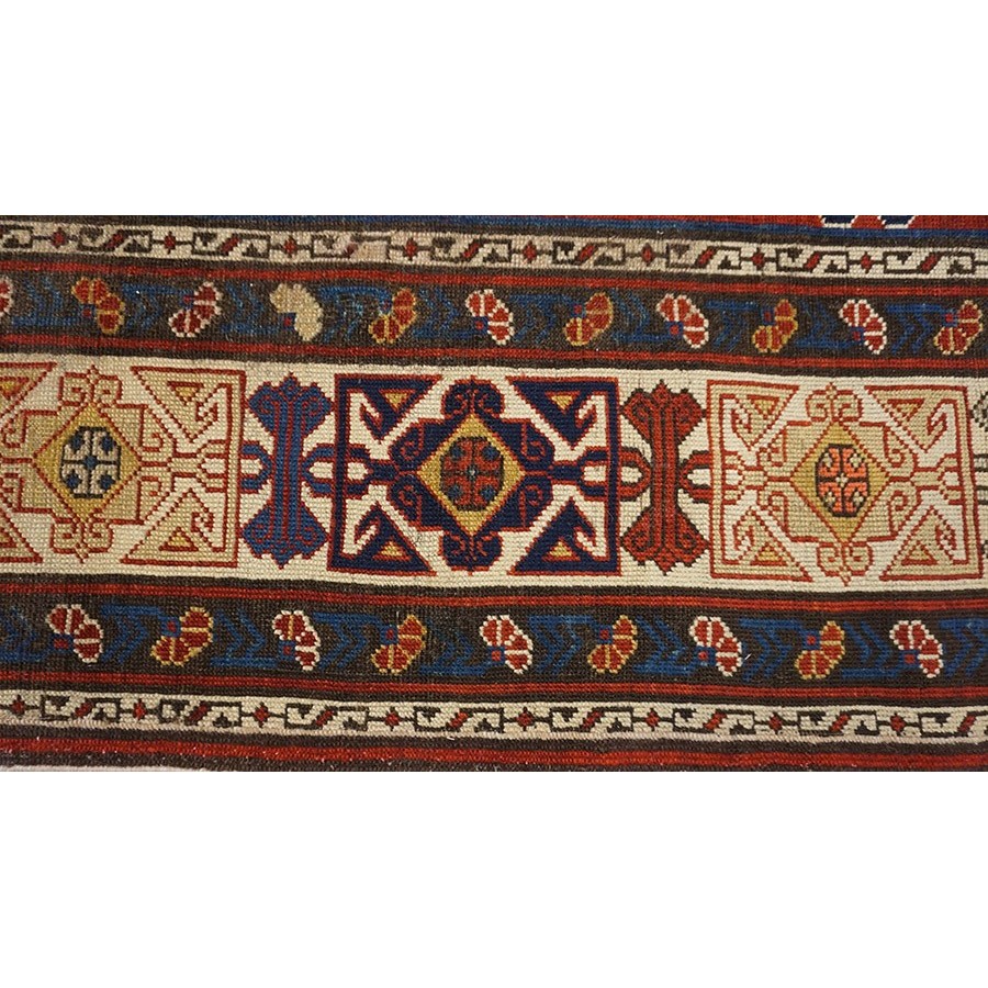 DescriptionCaucasianThis is the general heading for all rugs made in the Caucasus mountains and in the trans-Caucasus areas, north of the Arax River, and between the Black and Caspian Seas. This includes rugs from the Kazak, Karabagh, Gendje, Koghan, Talish, Akstafa, Shirvan, Baku, Kuba and hesghi districts and the variants and subtypes thereof. The rugs are usually in scatter sizes and of all wool construction, with bold colors and geometric patterns, from the 18th through 20th centuries. Prices range widely depending on rarity, color, design and condition. A strong collector market exists for the better examples. | |