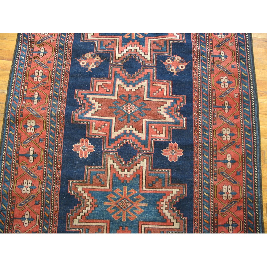 DescriptionCaucasianThis is the general heading for all rugs made in the Caucasus mountains and in the trans-Caucasus areas, north of the Arax River, and between the Black and Caspian Seas. This includes rugs from the Kazak, Karabagh, Gendje, Koghan, Talish, Akstafa, Shirvan, Baku, Kuba and hesghi districts and the variants and subtypes thereof. The rugs are usually in scatter sizes and of all wool construction, with bold colors and geometric patterns, from the 18th through 20th centuries. Prices range widely depending on rarity, color, design and condition. A strong collector market exists for the better examples. | |