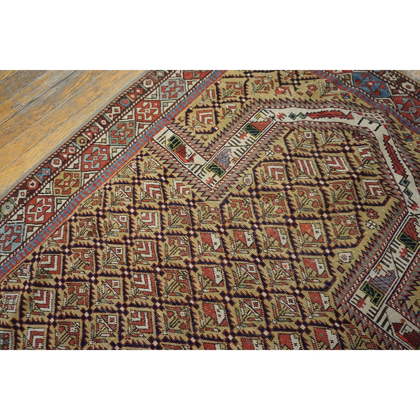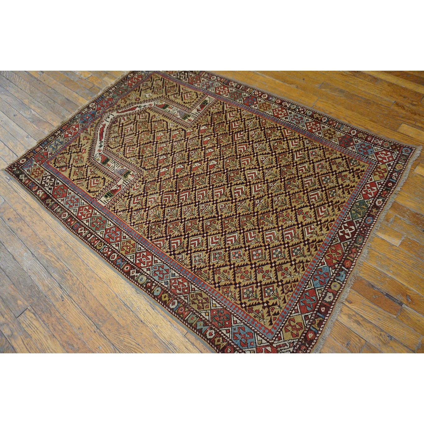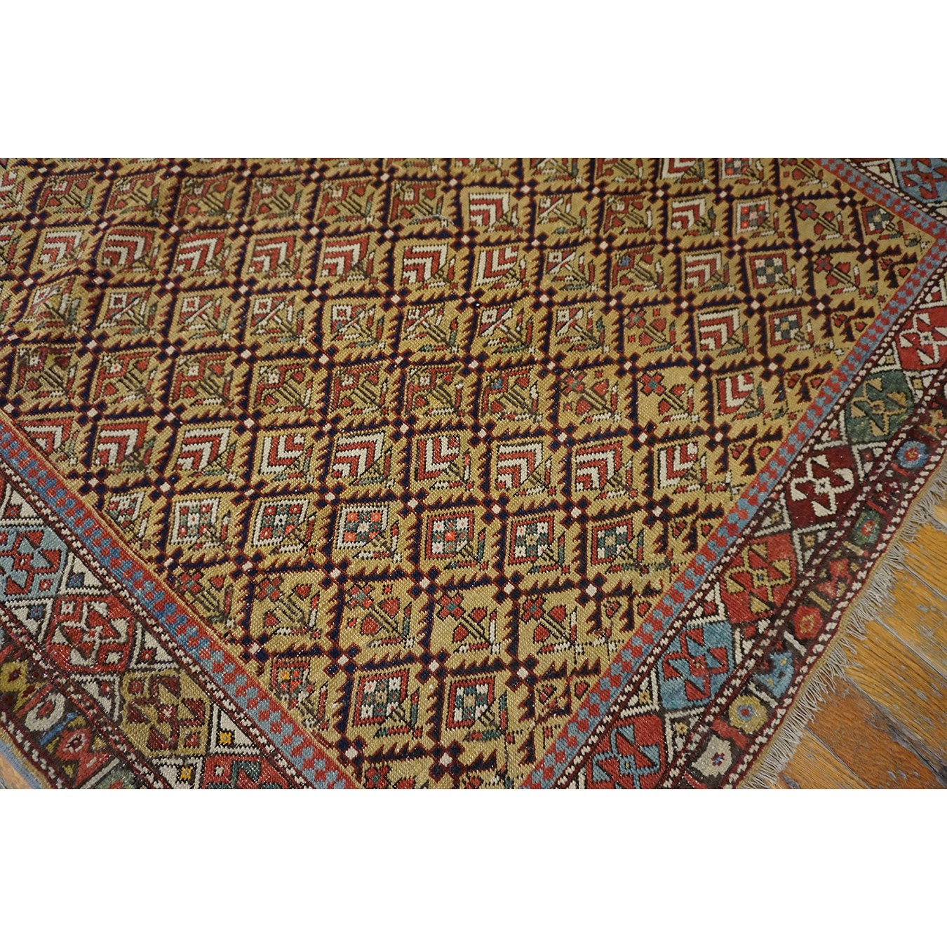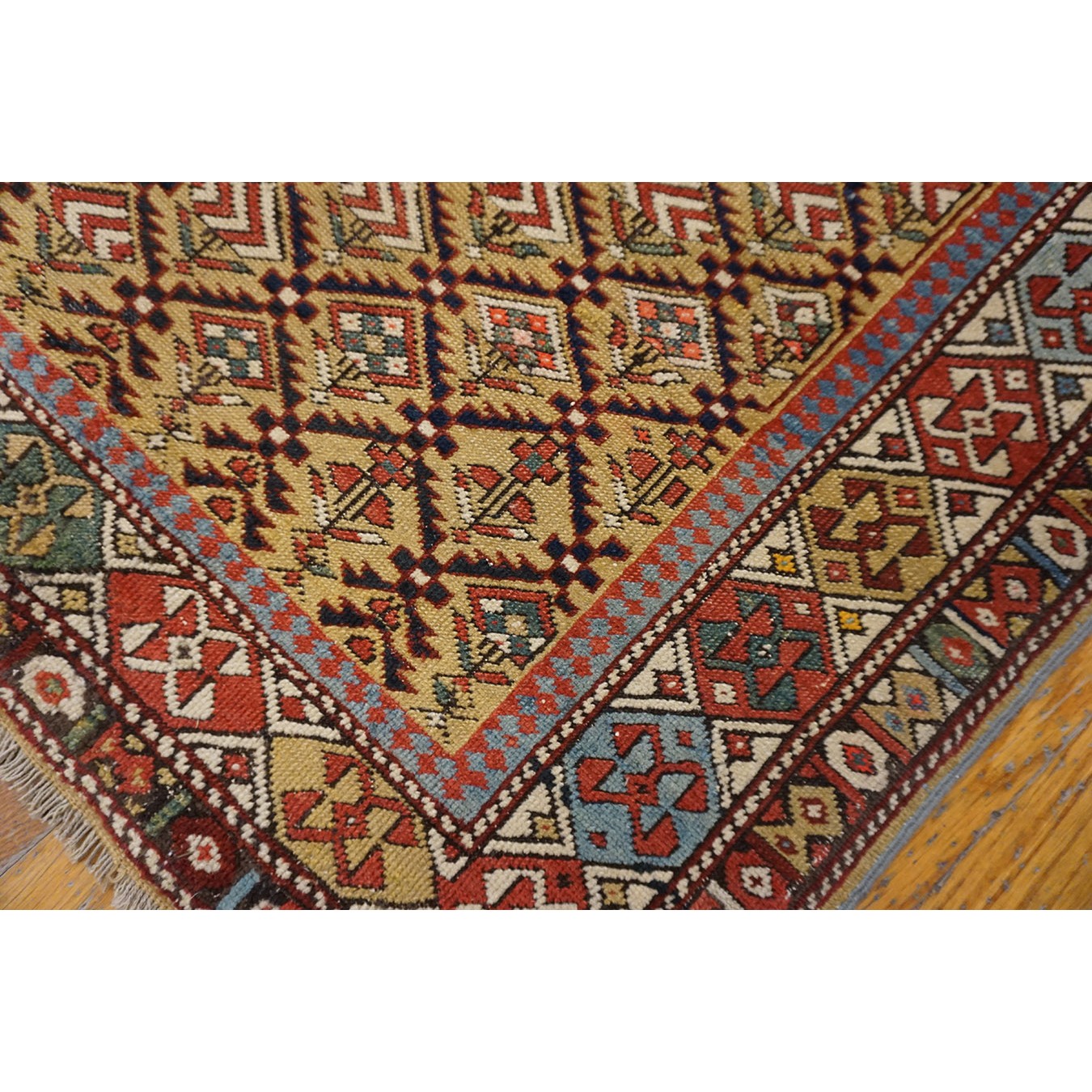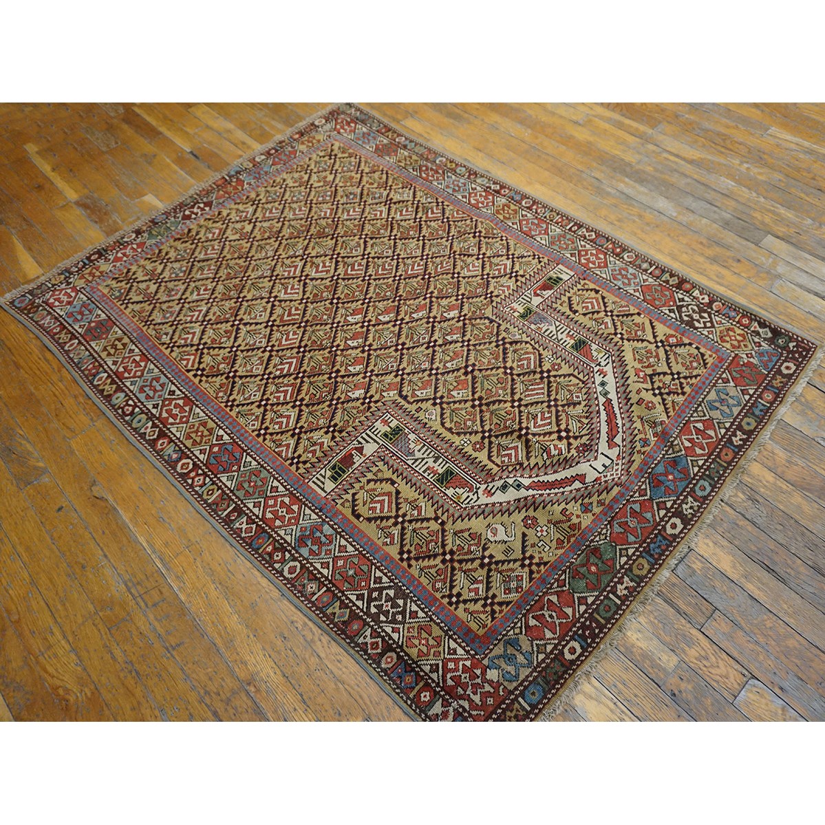 DescriptionCaucasianThis is the general heading for all rugs made in the Caucasus mountains and in the trans-Caucasus areas, north of the Arax River, and between the Black and Caspian Seas. This includes rugs from the Kazak, Karabagh, Gendje, Koghan, Talish, Akstafa, Shirvan, Baku, Kuba and hesghi districts and the variants and subtypes thereof. The rugs are usually in scatter sizes and of all wool construction, with bold colors and geometric patterns, from the 18th through 20th centuries. Prices range widely depending on rarity, color, design and condition. A strong collector market exists for the better examples. | |