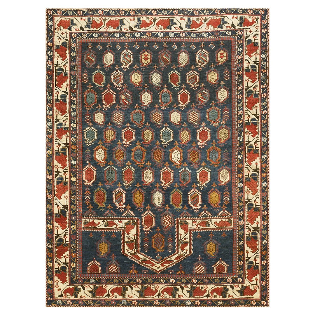 DescriptionCaucasianThis is the general heading for all rugs made in the Caucasus mountains and in the trans-Caucasus areas, north of the Arax River, and between the Black and Caspian Seas. This includes rugs from the Kazak, Karabagh, Gendje, Koghan, Talish, Akstafa, Shirvan, Baku, Kuba and hesghi districts and the variants and subtypes thereof. The rugs are usually in scatter sizes and of all wool construction, with bold colors and geometric patterns, from the 18th through 20th centuries. Prices range widely depending on rarity, color, design and condition. A strong collector market exists for the better examples. | |