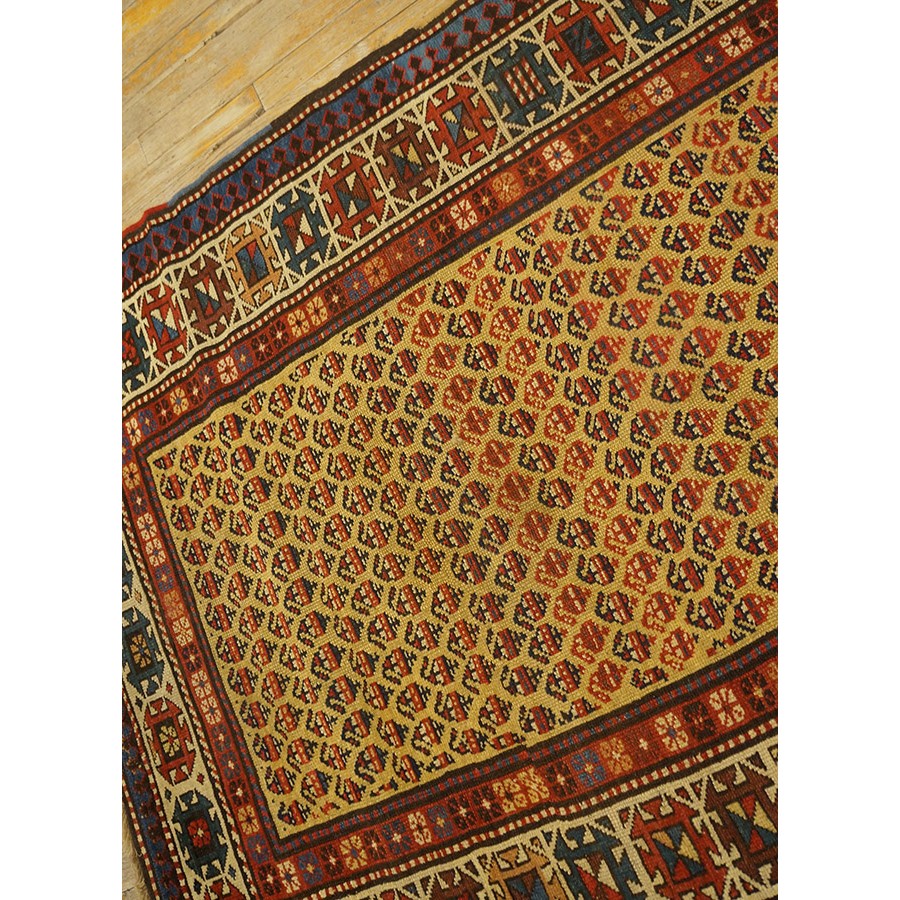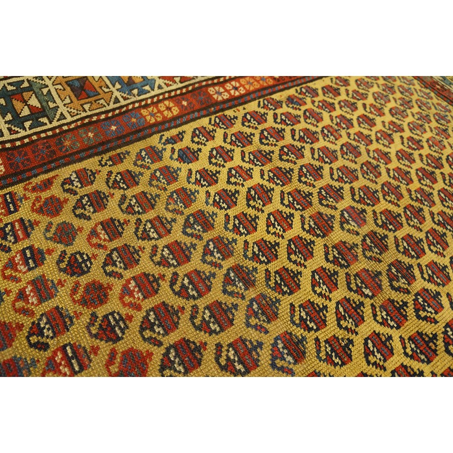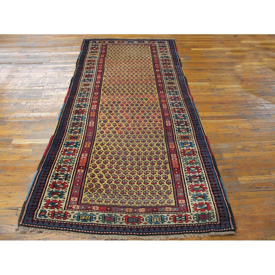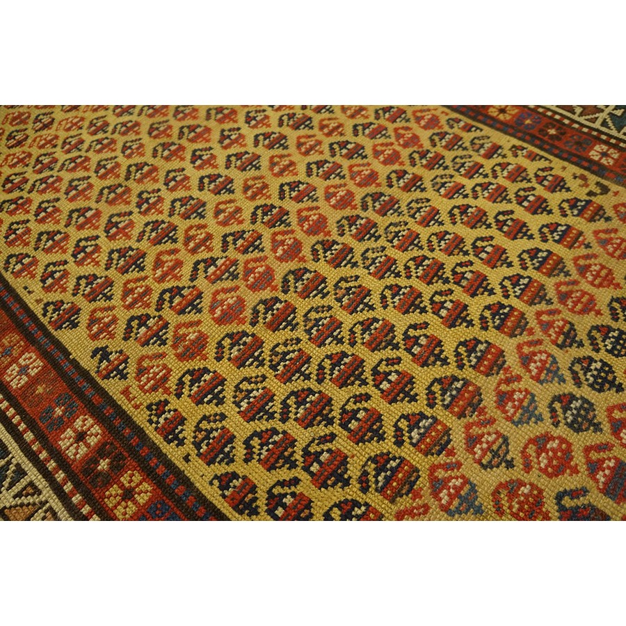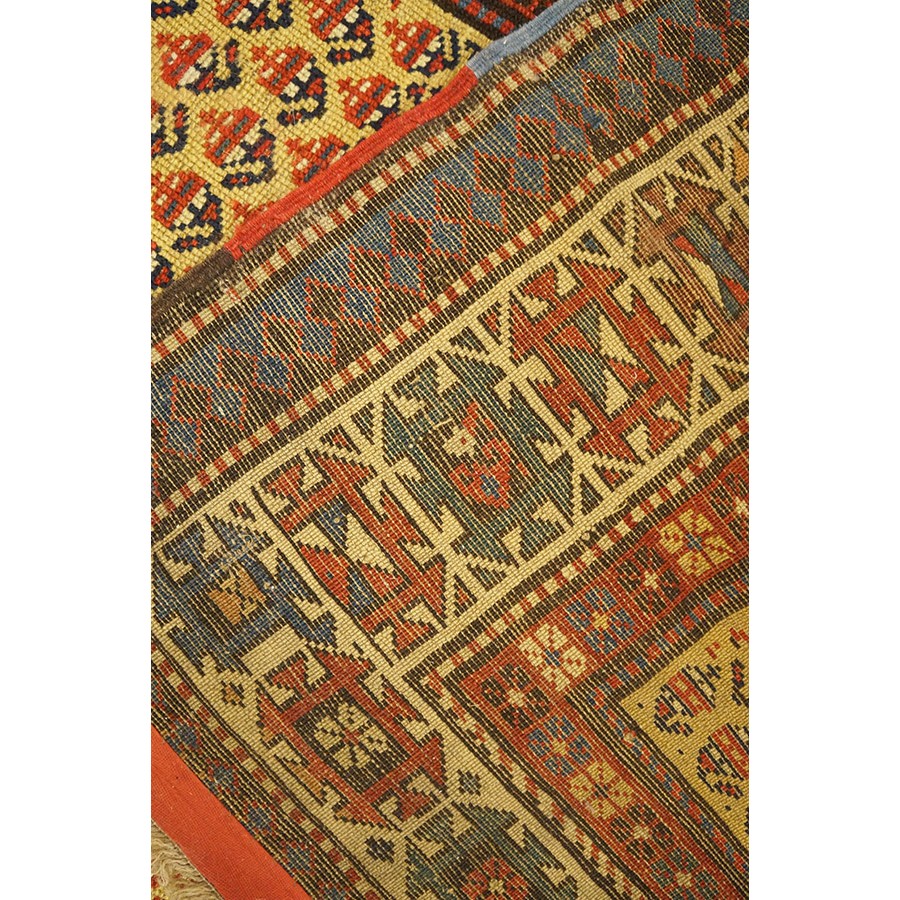 DescriptionCaucasianThis is the general heading for all rugs made in the Caucasus mountains and in the trans-Caucasus areas, north of the Arax River, and between the Black and Caspian Seas. This includes rugs from the Kazak, Karabagh, Gendje, Koghan, Talish, Akstafa, Shirvan, Baku, Kuba and hesghi districts and the variants and subtypes thereof. The rugs are usually in scatter sizes and of all wool construction, with bold colors and geometric patterns, from the 18th through 20th centuries. Prices range widely depending on rarity, color, design and condition. A strong collector market exists for the better examples. Caucasian - MoghanA relatively uncommon rug type woven in the Moghan steppe region just north of the Persian border in the eastern Caucasus. Usually of long rug format (4 x 8), the most common design is a double column of side-hooked, stepped crosses (memling guls), often on a light ground. Not every rug with this pattern is a Moghan and not every Moghan employs them. The weave is firm and neat, pile is short, color range (up to 12 tones) is exceptional. The pancity of good ones means that lesser pieces in the characteristic pattern one frequently passed off as something superior. | |