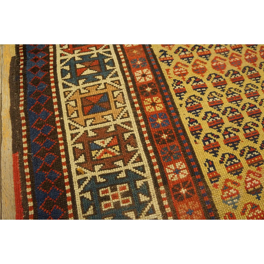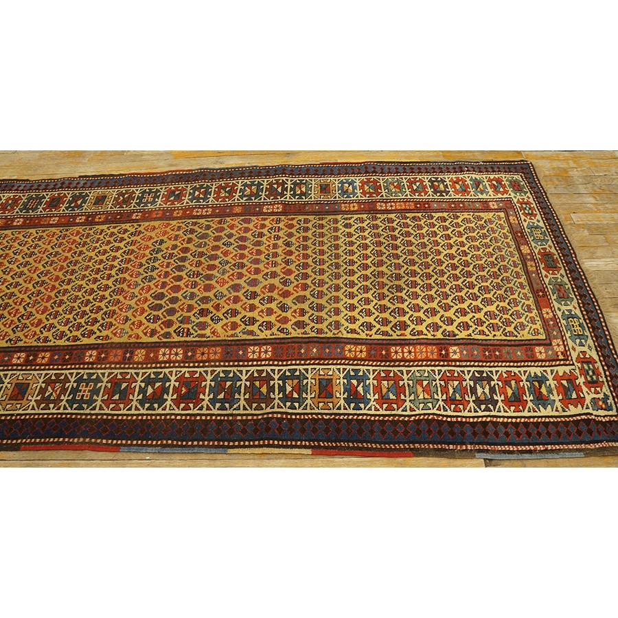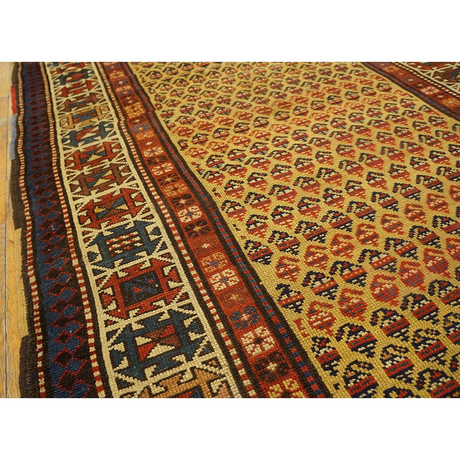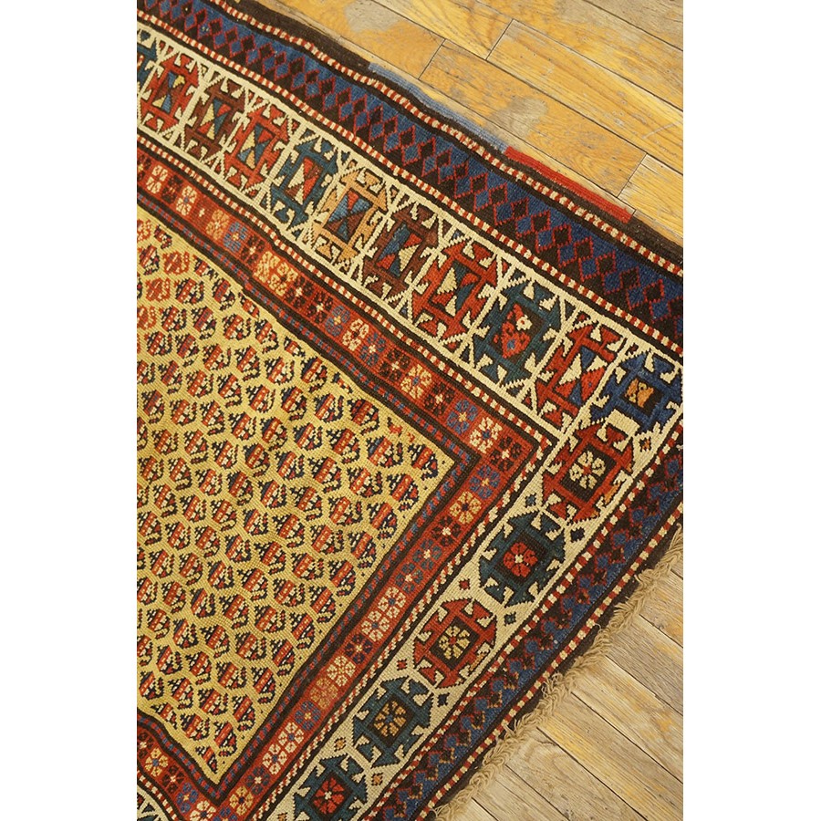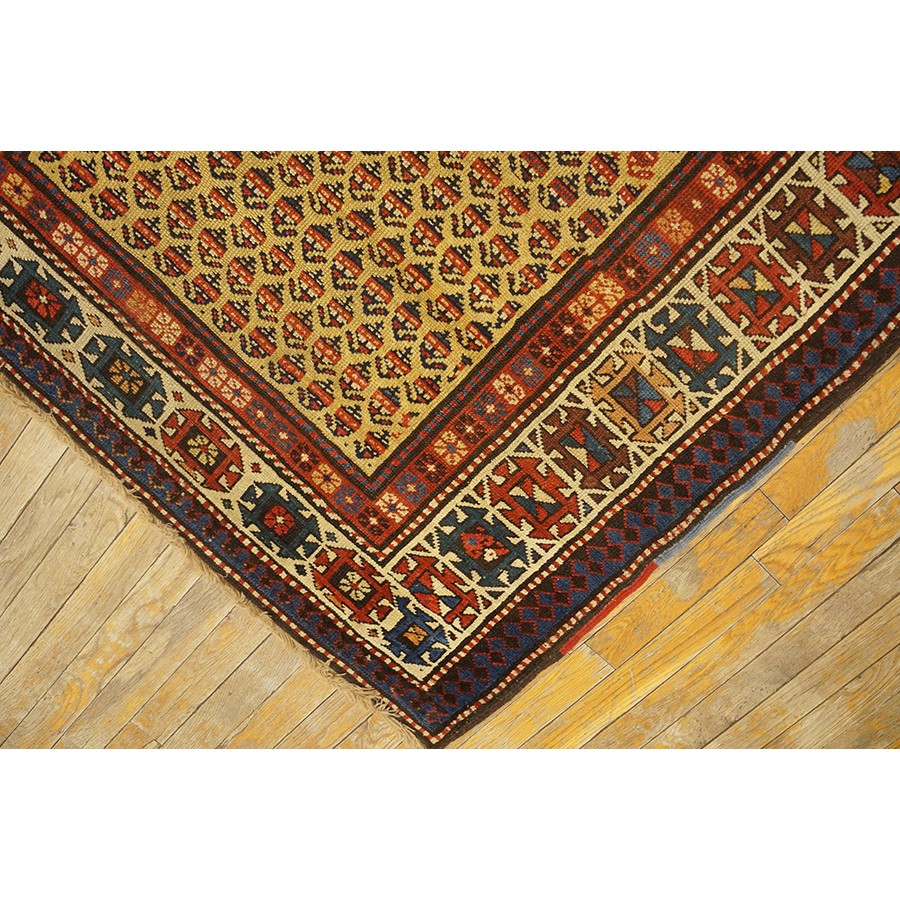 DescriptionCaucasianThis is the general heading for all rugs made in the Caucasus mountains and in the trans-Caucasus areas, north of the Arax River, and between the Black and Caspian Seas. This includes rugs from the Kazak, Karabagh, Gendje, Koghan, Talish, Akstafa, Shirvan, Baku, Kuba and hesghi districts and the variants and subtypes thereof. The rugs are usually in scatter sizes and of all wool construction, with bold colors and geometric patterns, from the 18th through 20th centuries. Prices range widely depending on rarity, color, design and condition. A strong collector market exists for the better examples. Caucasian - MoghanA relatively uncommon rug type woven in the Moghan steppe region just north of the Persian border in the eastern Caucasus. Usually of long rug format (4 x 8), the most common design is a double column of side-hooked, stepped crosses (memling guls), often on a light ground. Not every rug with this pattern is a Moghan and not every Moghan employs them. The weave is firm and neat, pile is short, color range (up to 12 tones) is exceptional. The pancity of good ones means that lesser pieces in the characteristic pattern one frequently passed off as something superior. | |