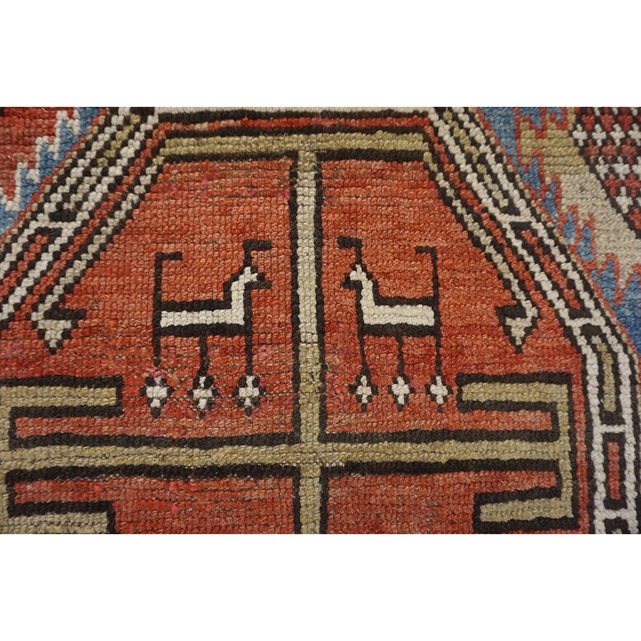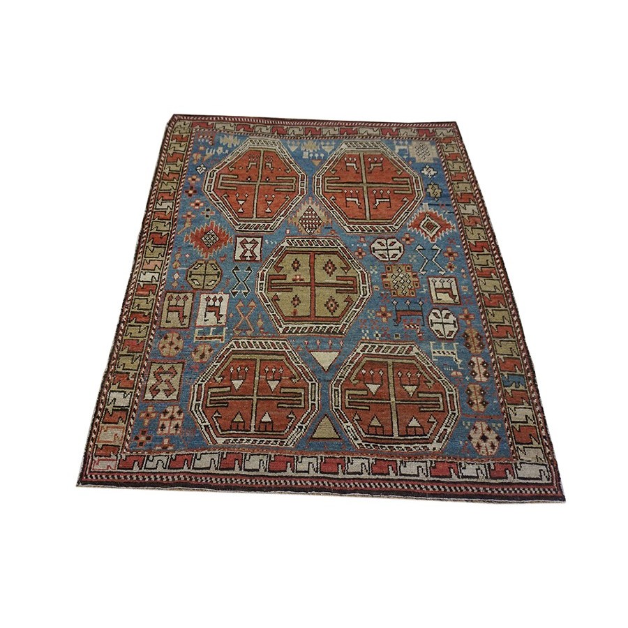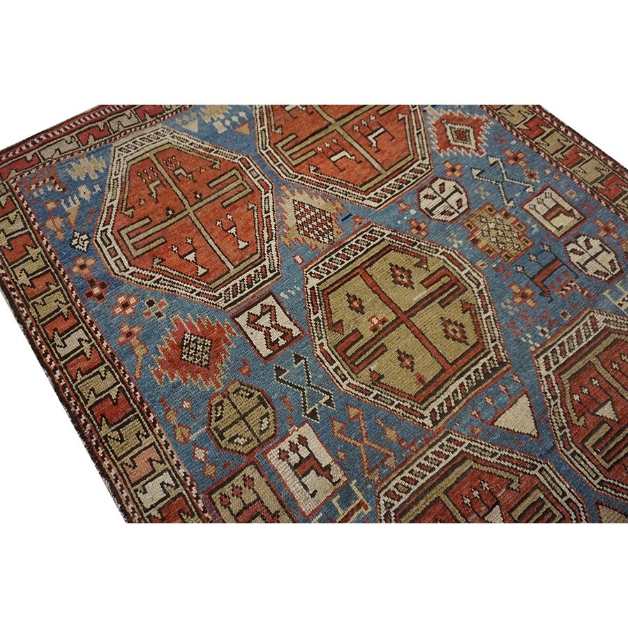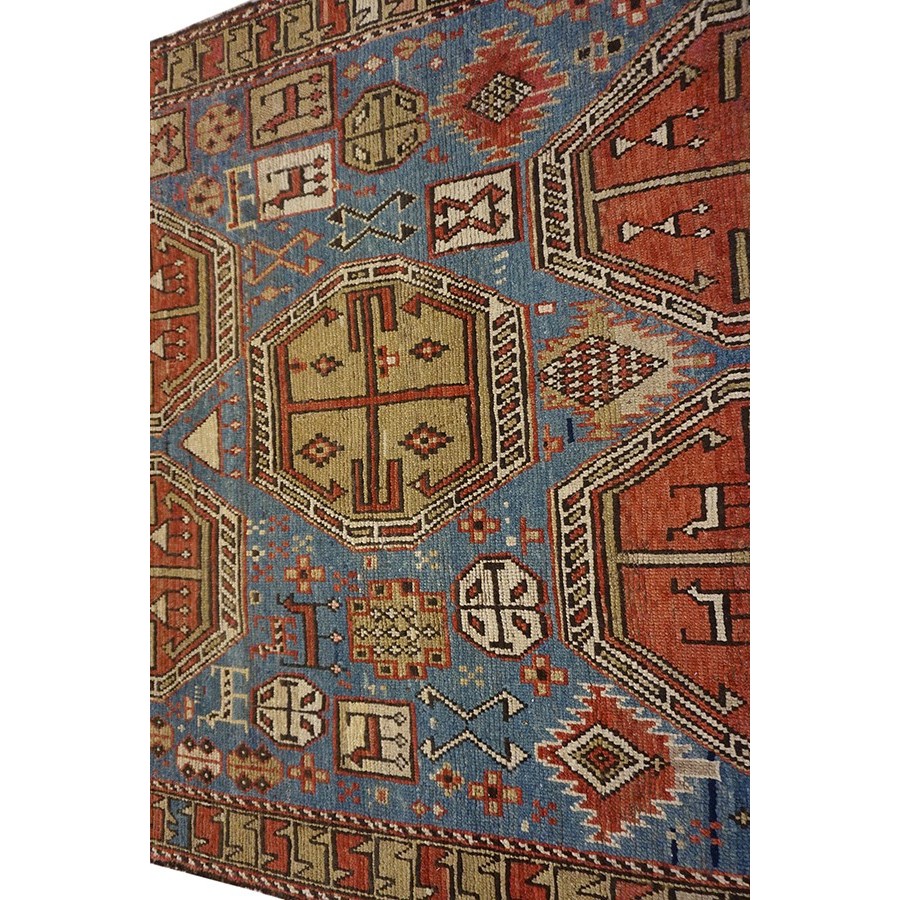 DescriptionCaucasianThis is the general heading for all rugs made in the Caucasus mountains and in the trans-Caucasus areas, north of the Arax River, and between the Black and Caspian Seas. This includes rugs from the Kazak, Karabagh, Gendje, Koghan, Talish, Akstafa, Shirvan, Baku, Kuba and hesghi districts and the variants and subtypes thereof. The rugs are usually in scatter sizes and of all wool construction, with bold colors and geometric patterns, from the 18th through 20th centuries. Prices range widely depending on rarity, color, design and condition. A strong collector market exists for the better examples. Caucasian - MoghanA relatively uncommon rug type woven in the Moghan steppe region just north of the Persian border in the eastern Caucasus. Usually of long rug format (4 x 8), the most common design is a double column of side-hooked, stepped crosses (memling guls), often on a light ground. Not every rug with this pattern is a Moghan and not every Moghan employs them. The weave is firm and neat, pile is short, color range (up to 12 tones) is exceptional. The pancity of good ones means that lesser pieces in the characteristic pattern one frequently passed off as something superior. | |