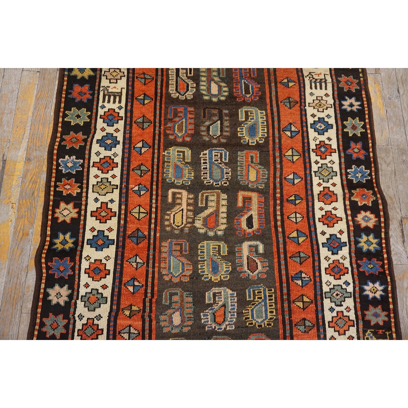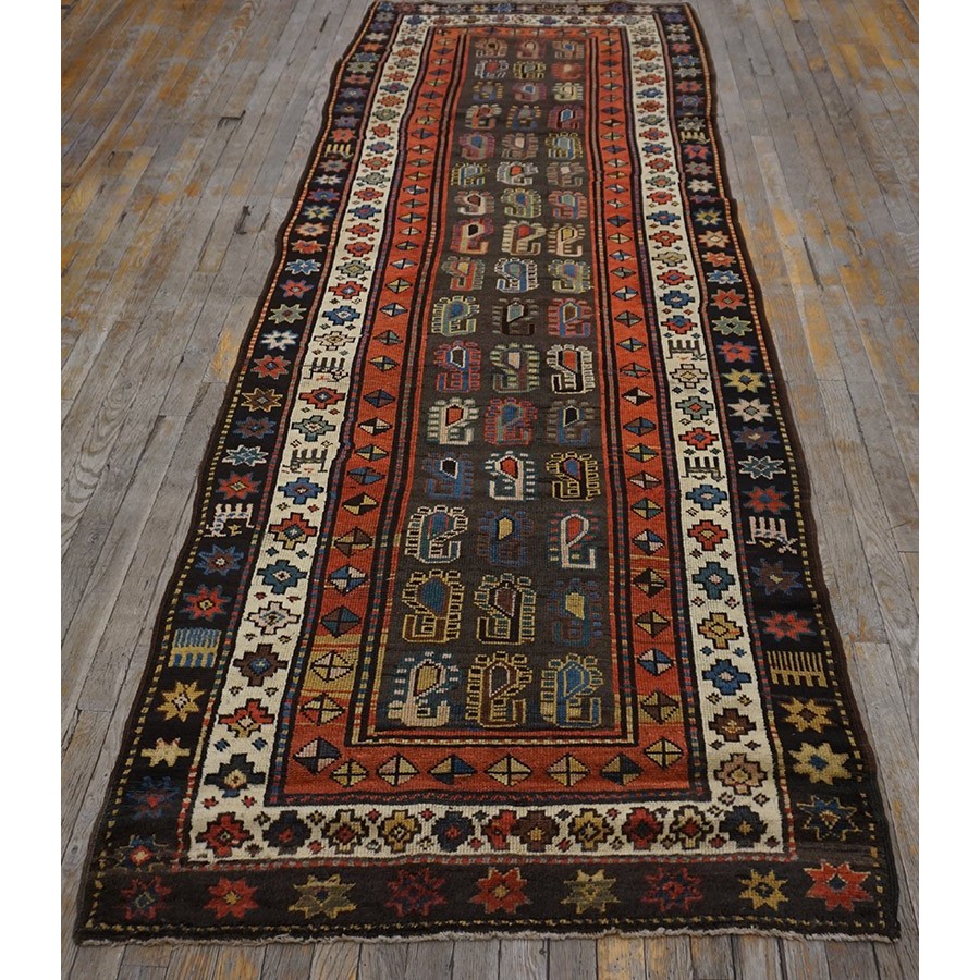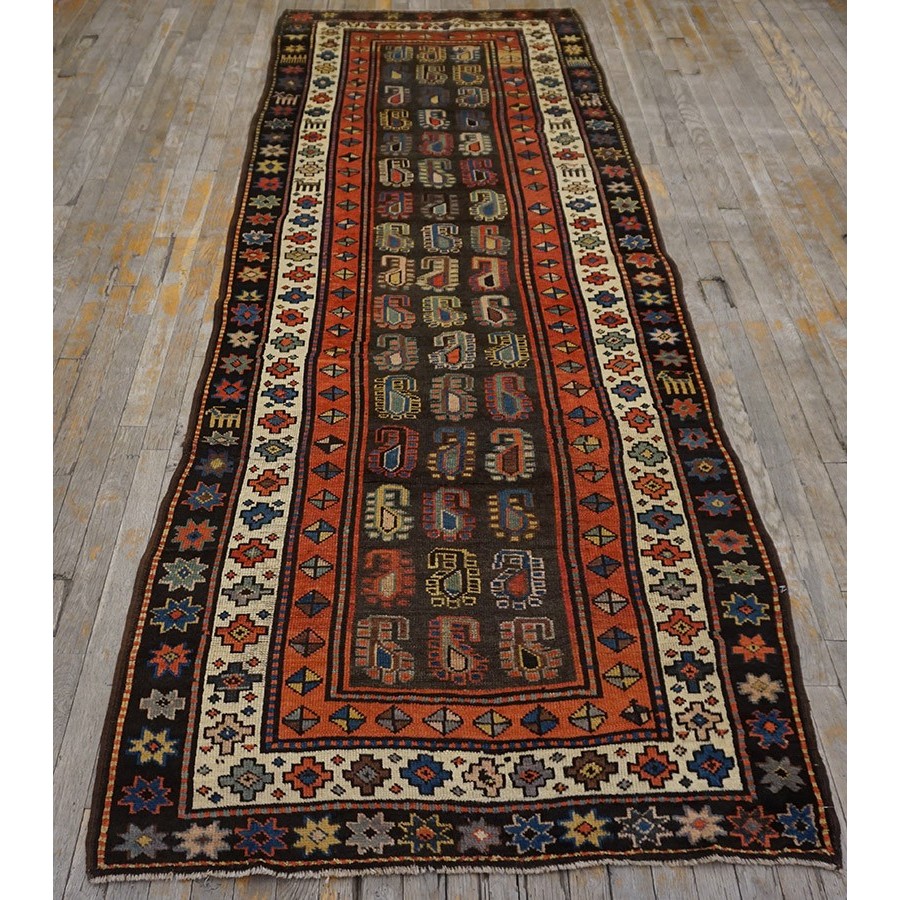 DescriptionCaucasianThis is the general heading for all rugs made in the Caucasus mountains and in the trans-Caucasus areas, north of the Arax River, and between the Black and Caspian Seas. This includes rugs from the Kazak, Karabagh, Gendje, Koghan, Talish, Akstafa, Shirvan, Baku, Kuba and hesghi districts and the variants and subtypes thereof. The rugs are usually in scatter sizes and of all wool construction, with bold colors and geometric patterns, from the 18th through 20th centuries. Prices range widely depending on rarity, color, design and condition. A strong collector market exists for the better examples. Caucasian - MoghanA relatively uncommon rug type woven in the Moghan steppe region just north of the Persian border in the eastern Caucasus. Usually of long rug format (4 x 8), the most common design is a double column of side-hooked, stepped crosses (memling guls), often on a light ground. Not every rug with this pattern is a Moghan and not every Moghan employs them. The weave is firm and neat, pile is short, color range (up to 12 tones) is exceptional. The pancity of good ones means that lesser pieces in the characteristic pattern one frequently passed off as something superior. | |