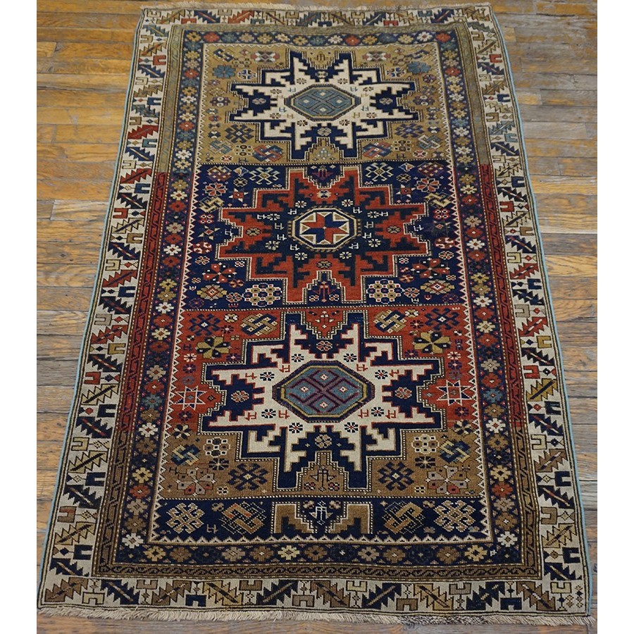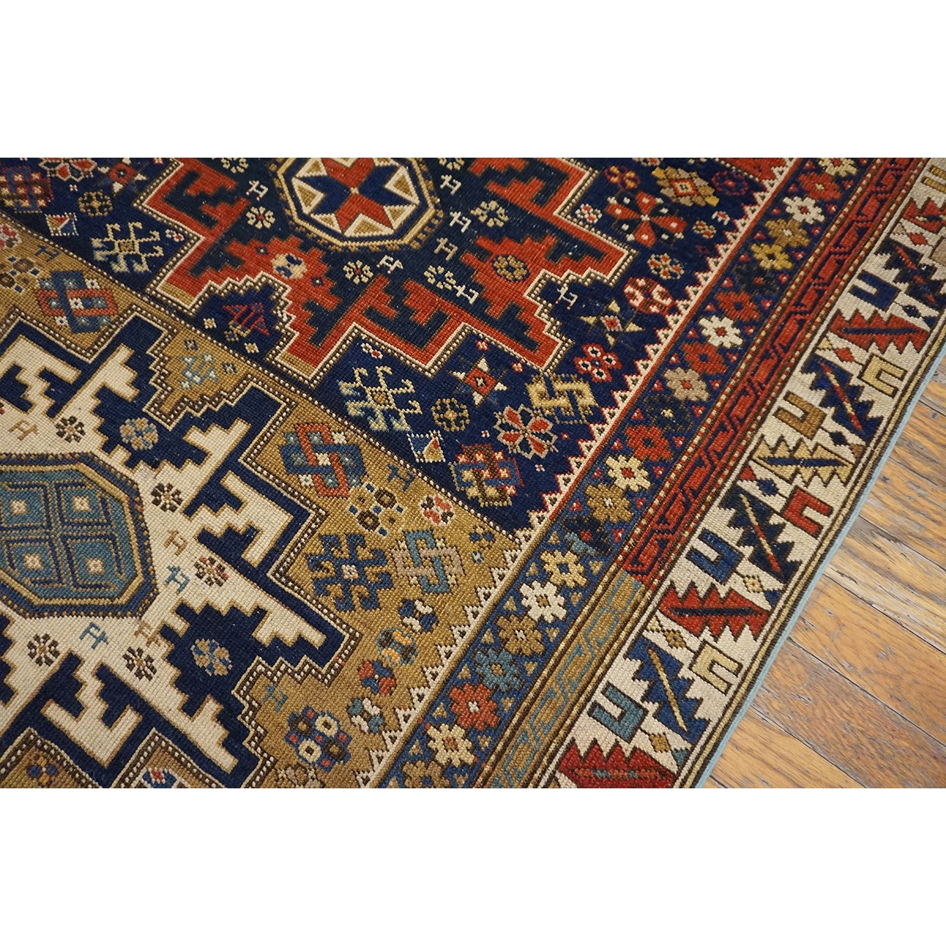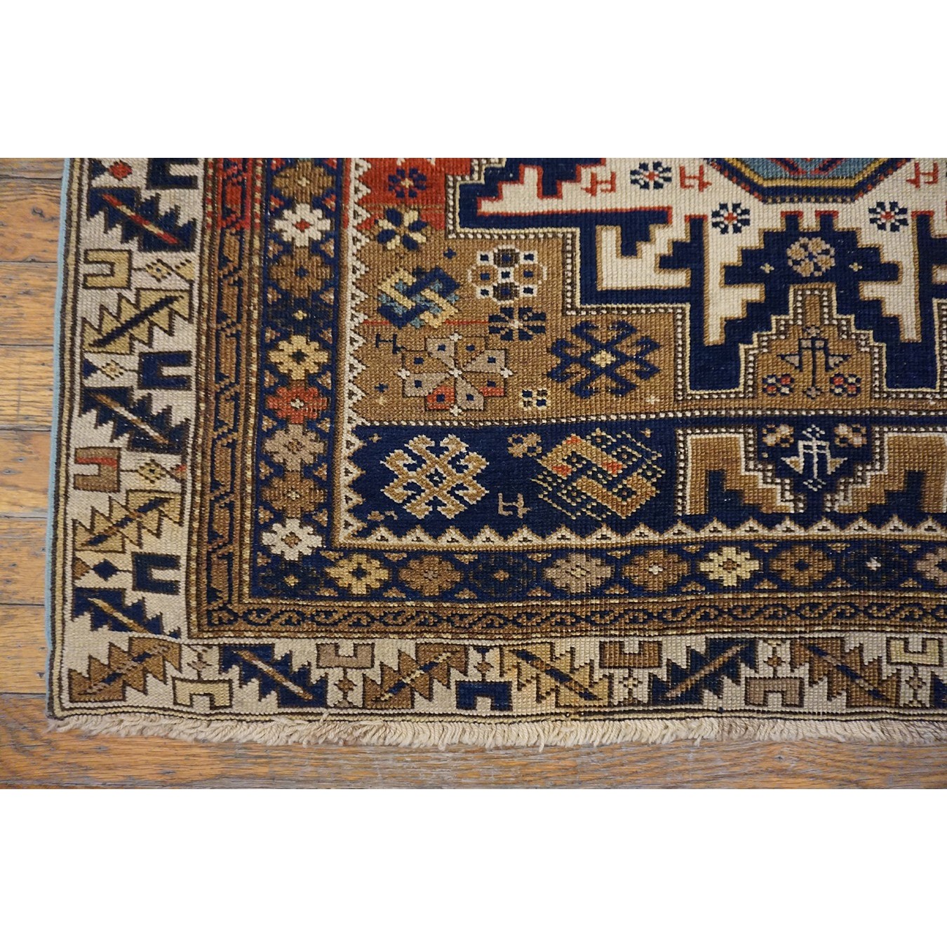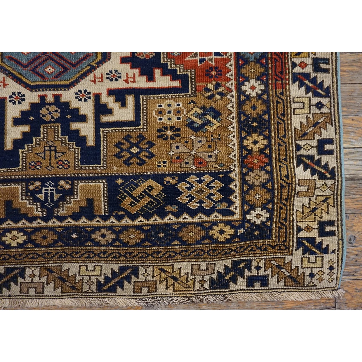 DescriptionCaucasianThis is the general heading for all rugs made in the Caucasus mountains and in the trans-Caucasus areas, north of the Arax River, and between the Black and Caspian Seas. This includes rugs from the Kazak, Karabagh, Gendje, Koghan, Talish, Akstafa, Shirvan, Baku, Kuba and hesghi districts and the variants and subtypes thereof. The rugs are usually in scatter sizes and of all wool construction, with bold colors and geometric patterns, from the 18th through 20th centuries. Prices range widely depending on rarity, color, design and condition. A strong collector market exists for the better examples. Caucasian - ShirvanThe Shirvan district of Caucasian Azerbaijan lies to the west of the Caspian sea, north of Baku. Rugs were made in huge numbers in the 19th century on composite wool and cotton foundations. There are many named subtypes among Shirvan weaves. Geometric motives fill the field, but the designs are smaller and individually less striking than those of the coarser Kazaks. Almost all rugs are scatters and runners. Dye quality varies, but the best rugs have wide, exceptional, natural dye palettes. Many Shirvans are exceptional,natural dy palettes. Many Shirvans are service rugs, but the best, for instance the Manasali prayer rugs are avidly collected and fetch extraordinary prices. | |