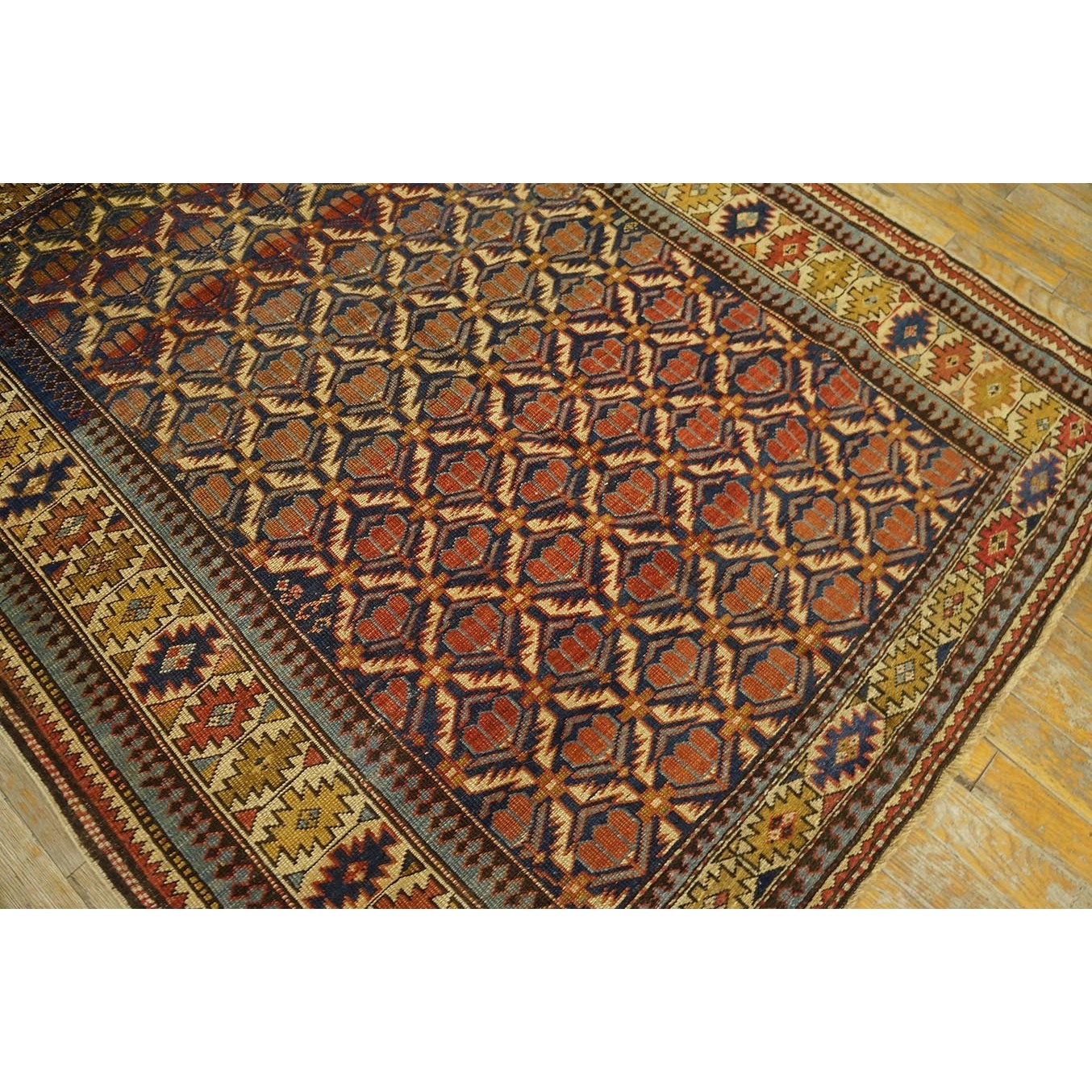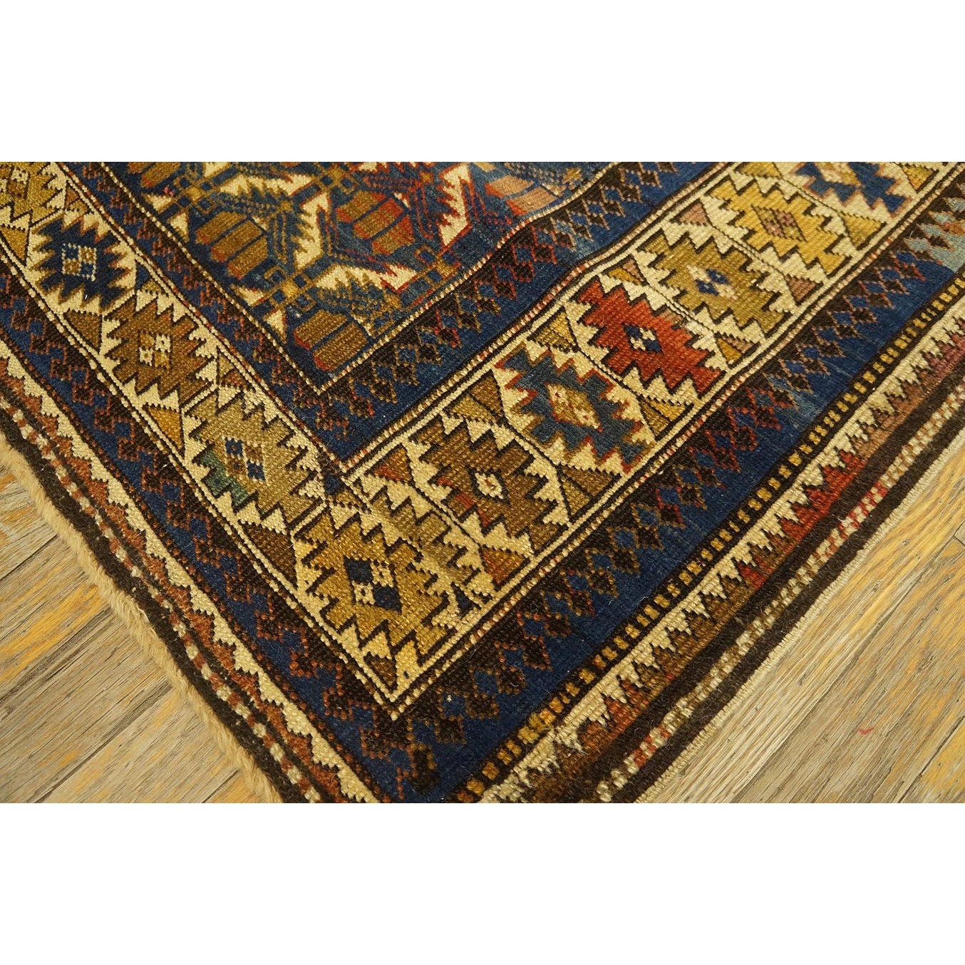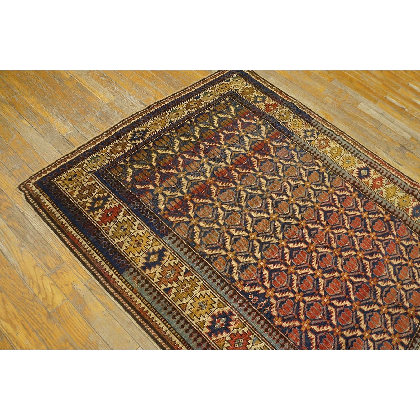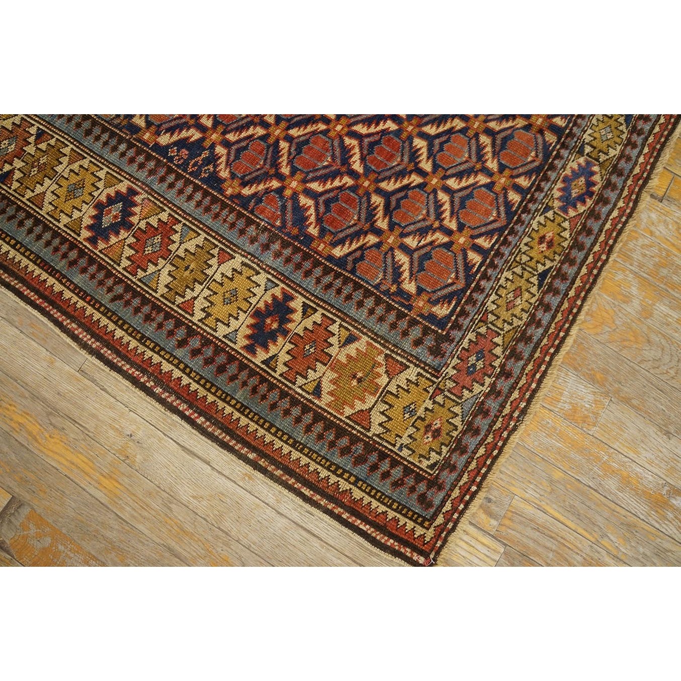 DescriptionCaucasianThis is the general heading for all rugs made in the Caucasus mountains and in the trans-Caucasus areas, north of the Arax River, and between the Black and Caspian Seas. This includes rugs from the Kazak, Karabagh, Gendje, Koghan, Talish, Akstafa, Shirvan, Baku, Kuba and hesghi districts and the variants and subtypes thereof. The rugs are usually in scatter sizes and of all wool construction, with bold colors and geometric patterns, from the 18th through 20th centuries. Prices range widely depending on rarity, color, design and condition. A strong collector market exists for the better examples. Caucasian - ShirvanThe Shirvan district of Caucasian Azerbaijan lies to the west of the Caspian sea, north of Baku. Rugs were made in huge numbers in the 19th century on composite wool and cotton foundations. There are many named subtypes among Shirvan weaves. Geometric motives fill the field, but the designs are smaller and individually less striking than those of the coarser Kazaks. Almost all rugs are scatters and runners. Dye quality varies, but the best rugs have wide, exceptional, natural dye palettes. Many Shirvans are exceptional,natural dy palettes. Many Shirvans are service rugs, but the best, for instance the Manasali prayer rugs are avidly collected and fetch extraordinary prices. | |