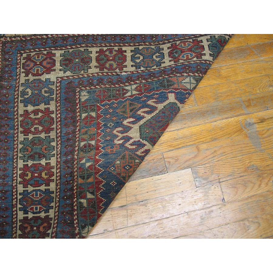 DescriptionCaucasianThis is the general heading for all rugs made in the Caucasus mountains and in the trans-Caucasus areas, north of the Arax River, and between the Black and Caspian Seas. This includes rugs from the Kazak, Karabagh, Gendje, Koghan, Talish, Akstafa, Shirvan, Baku, Kuba and hesghi districts and the variants and subtypes thereof. The rugs are usually in scatter sizes and of all wool construction, with bold colors and geometric patterns, from the 18th through 20th centuries. Prices range widely depending on rarity, color, design and condition. A strong collector market exists for the better examples. Caucasian - ShirvanThe Shirvan district of Caucasian Azerbaijan lies to the west of the Caspian sea, north of Baku. Rugs were made in huge numbers in the 19th century on composite wool and cotton foundations. There are many named subtypes among Shirvan weaves. Geometric motives fill the field, but the designs are smaller and individually less striking than those of the coarser Kazaks. Almost all rugs are scatters and runners. Dye quality varies, but the best rugs have wide, exceptional, natural dye palettes. Many Shirvans are exceptional,natural dy palettes. Many Shirvans are service rugs, but the best, for instance the Manasali prayer rugs are avidly collected and fetch extraordinary prices. | |