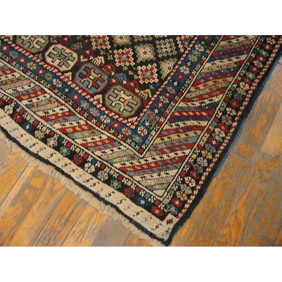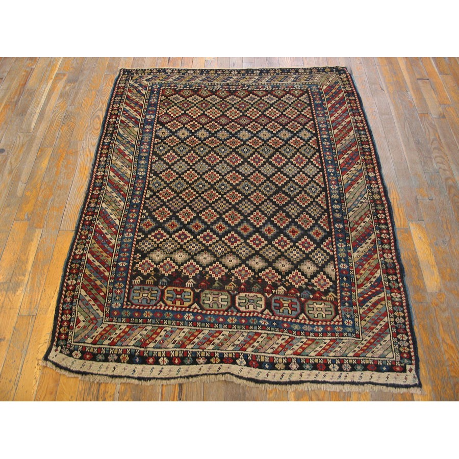 DescriptionCaucasianThis is the general heading for all rugs made in the Caucasus mountains and in the trans-Caucasus areas, north of the Arax River, and between the Black and Caspian Seas. This includes rugs from the Kazak, Karabagh, Gendje, Koghan, Talish, Akstafa, Shirvan, Baku, Kuba and hesghi districts and the variants and subtypes thereof. The rugs are usually in scatter sizes and of all wool construction, with bold colors and geometric patterns, from the 18th through 20th centuries. Prices range widely depending on rarity, color, design and condition. A strong collector market exists for the better examples. Caucasian - ShirvanThe Shirvan district of Caucasian Azerbaijan lies to the west of the Caspian sea, north of Baku. Rugs were made in huge numbers in the 19th century on composite wool and cotton foundations. There are many named subtypes among Shirvan weaves. Geometric motives fill the field, but the designs are smaller and individually less striking than those of the coarser Kazaks. Almost all rugs are scatters and runners. Dye quality varies, but the best rugs have wide, exceptional, natural dye palettes. Many Shirvans are exceptional,natural dy palettes. Many Shirvans are service rugs, but the best, for instance the Manasali prayer rugs are avidly collected and fetch extraordinary prices. | |