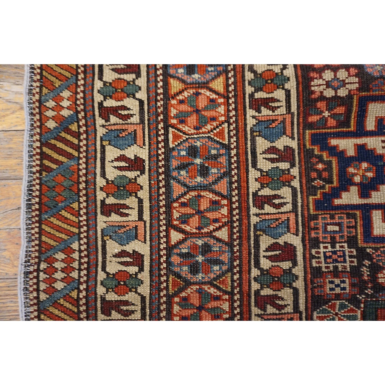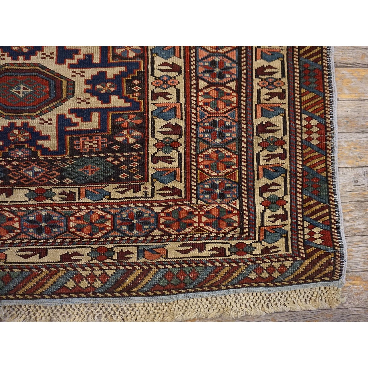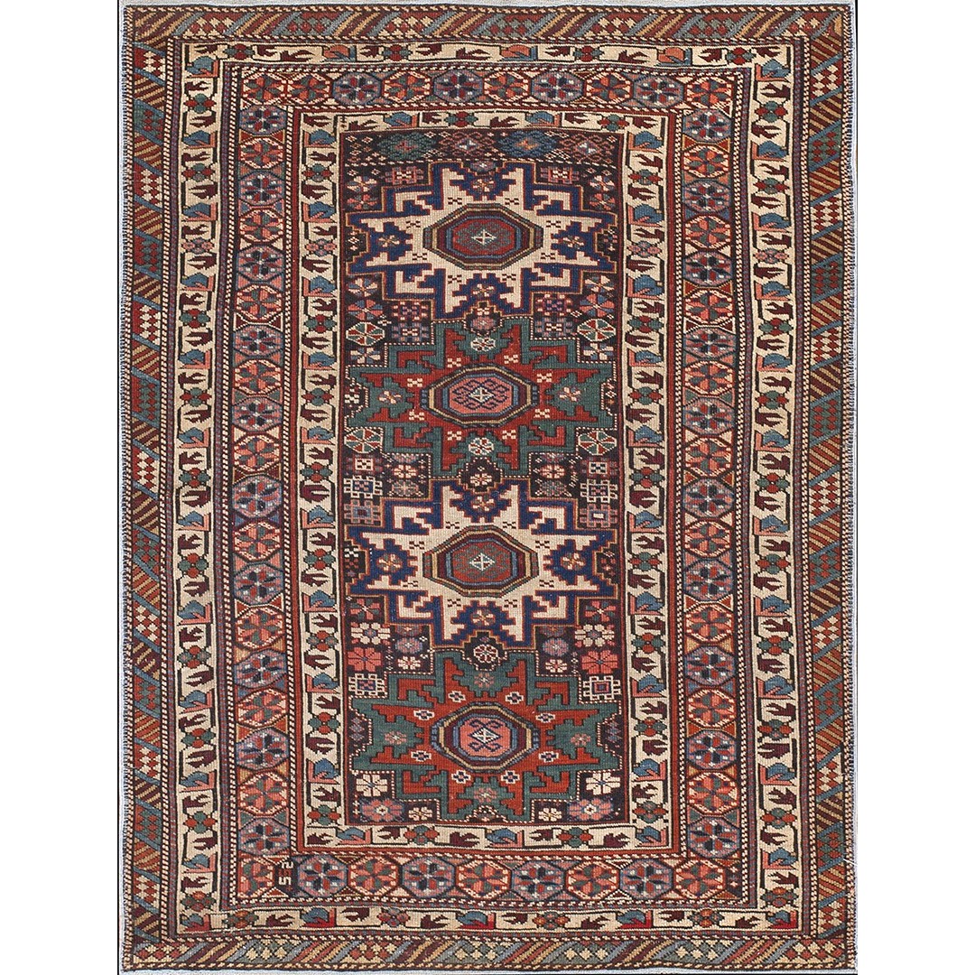 DescriptionCaucasianThis is the general heading for all rugs made in the Caucasus mountains and in the trans-Caucasus areas, north of the Arax River, and between the Black and Caspian Seas. This includes rugs from the Kazak, Karabagh, Gendje, Koghan, Talish, Akstafa, Shirvan, Baku, Kuba and hesghi districts and the variants and subtypes thereof. The rugs are usually in scatter sizes and of all wool construction, with bold colors and geometric patterns, from the 18th through 20th centuries. Prices range widely depending on rarity, color, design and condition. A strong collector market exists for the better examples. Caucasian - ShirvanThe Shirvan district of Caucasian Azerbaijan lies to the west of the Caspian sea, north of Baku. Rugs were made in huge numbers in the 19th century on composite wool and cotton foundations. There are many named subtypes among Shirvan weaves. Geometric motives fill the field, but the designs are smaller and individually less striking than those of the coarser Kazaks. Almost all rugs are scatters and runners. Dye quality varies, but the best rugs have wide, exceptional, natural dye palettes. Many Shirvans are exceptional,natural dy palettes. Many Shirvans are service rugs, but the best, for instance the Manasali prayer rugs are avidly collected and fetch extraordinary prices. | |