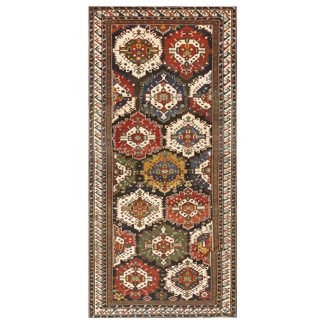 DescriptionCaucasianThis is the general heading for all rugs made in the Caucasus mountains and in the trans-Caucasus areas, north of the Arax River, and between the Black and Caspian Seas. This includes rugs from the Kazak, Karabagh, Gendje, Koghan, Talish, Akstafa, Shirvan, Baku, Kuba and hesghi districts and the variants and subtypes thereof. The rugs are usually in scatter sizes and of all wool construction, with bold colors and geometric patterns, from the 18th through 20th centuries. Prices range widely depending on rarity, color, design and condition. A strong collector market exists for the better examples. Caucasian - ShirvanThe Shirvan district of Caucasian Azerbaijan lies to the west of the Caspian sea, north of Baku. Rugs were made in huge numbers in the 19th century on composite wool and cotton foundations. There are many named subtypes among Shirvan weaves. Geometric motives fill the field, but the designs are smaller and individually less striking than those of the coarser Kazaks. Almost all rugs are scatters and runners. Dye quality varies, but the best rugs have wide, exceptional, natural dye palettes. Many Shirvans are exceptional,natural dy palettes. Many Shirvans are service rugs, but the best, for instance the Manasali prayer rugs are avidly collected and fetch extraordinary prices. | |