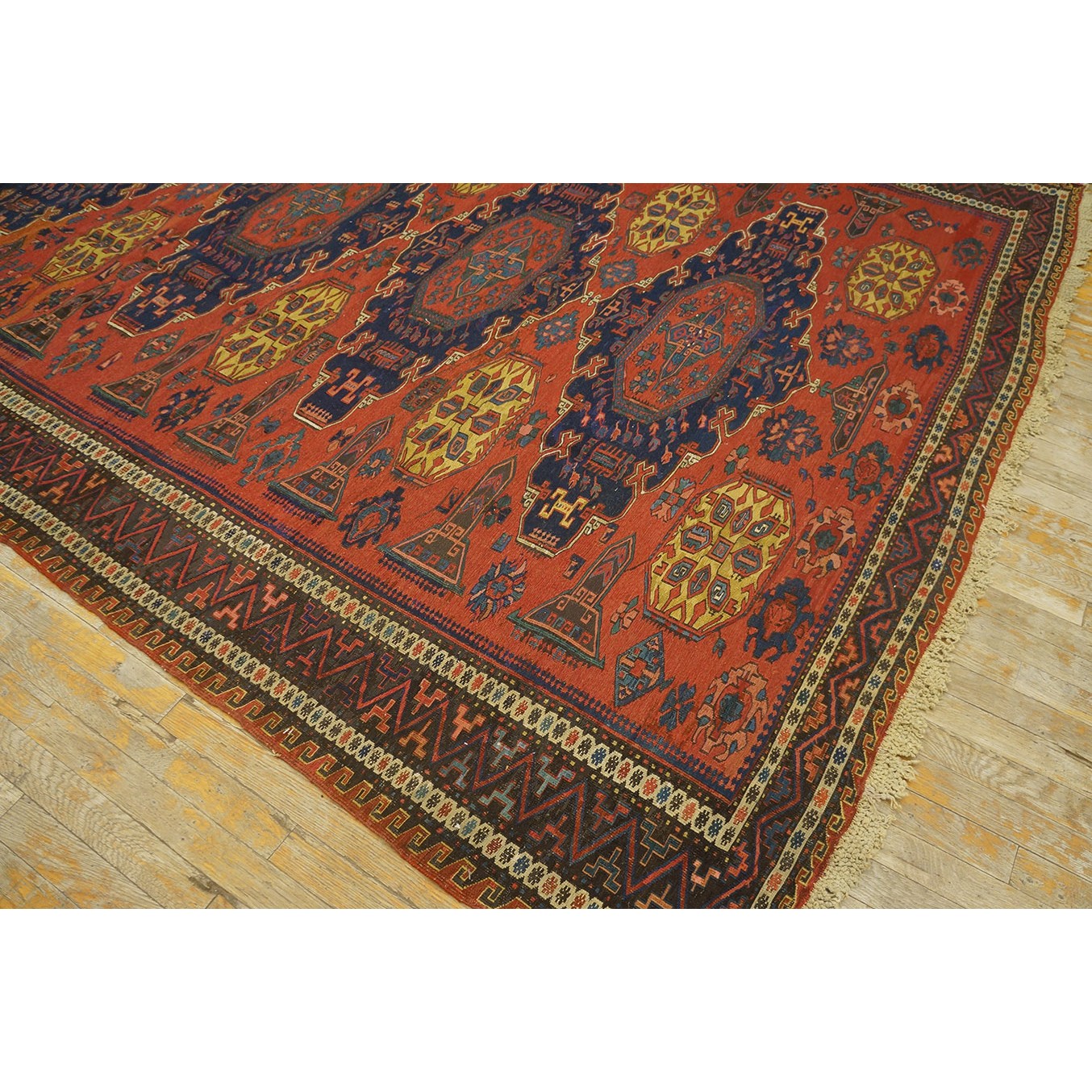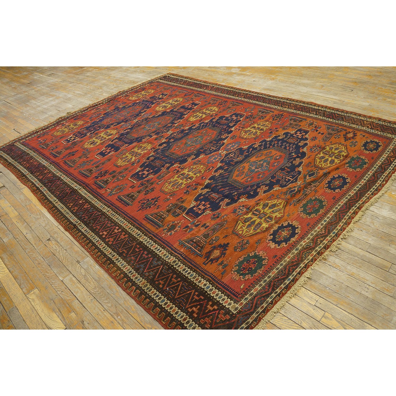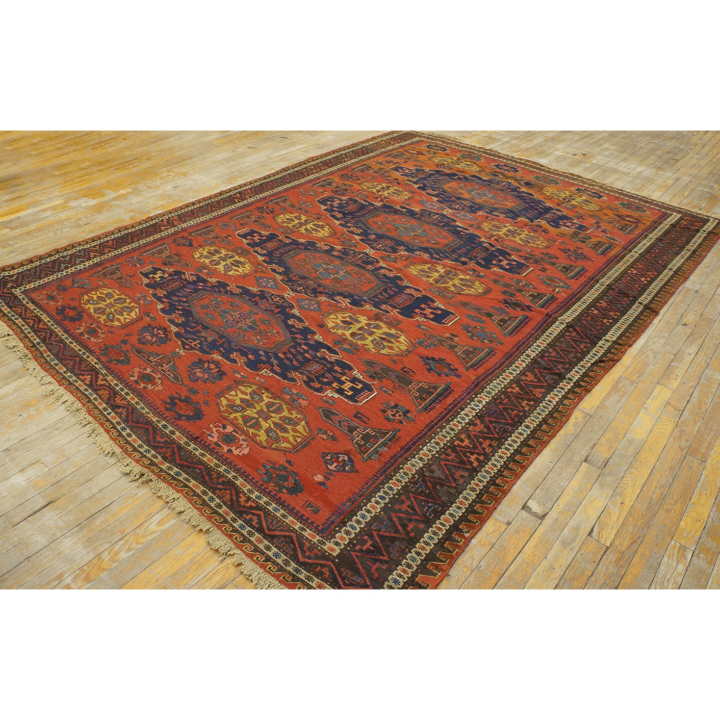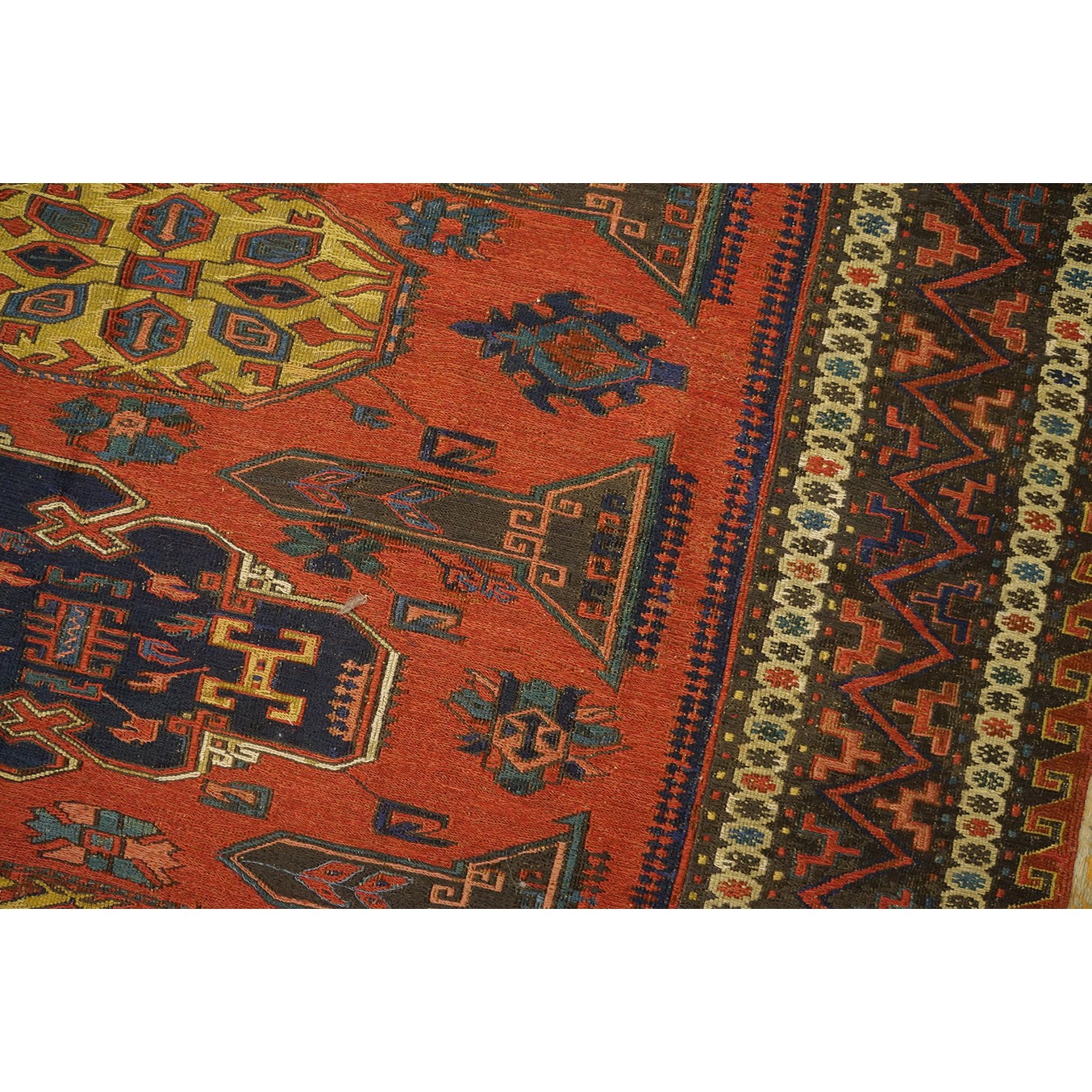 DescriptionCaucasianThis is the general heading for all rugs made in the Caucasus mountains and in the trans-Caucasus areas, north of the Arax River, and between the Black and Caspian Seas. This includes rugs from the Kazak, Karabagh, Gendje, Koghan, Talish, Akstafa, Shirvan, Baku, Kuba and hesghi districts and the variants and subtypes thereof. The rugs are usually in scatter sizes and of all wool construction, with bold colors and geometric patterns, from the 18th through 20th centuries. Prices range widely depending on rarity, color, design and condition. A strong collector market exists for the better examples. | |