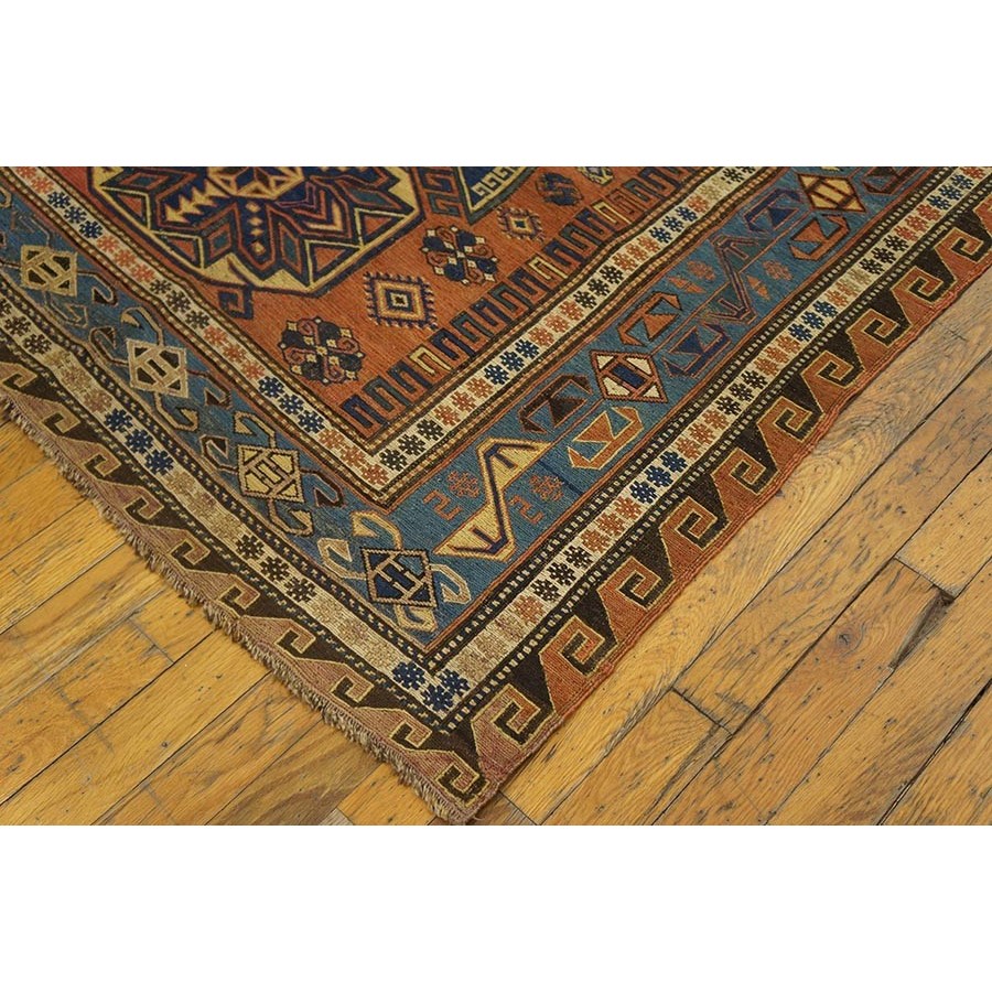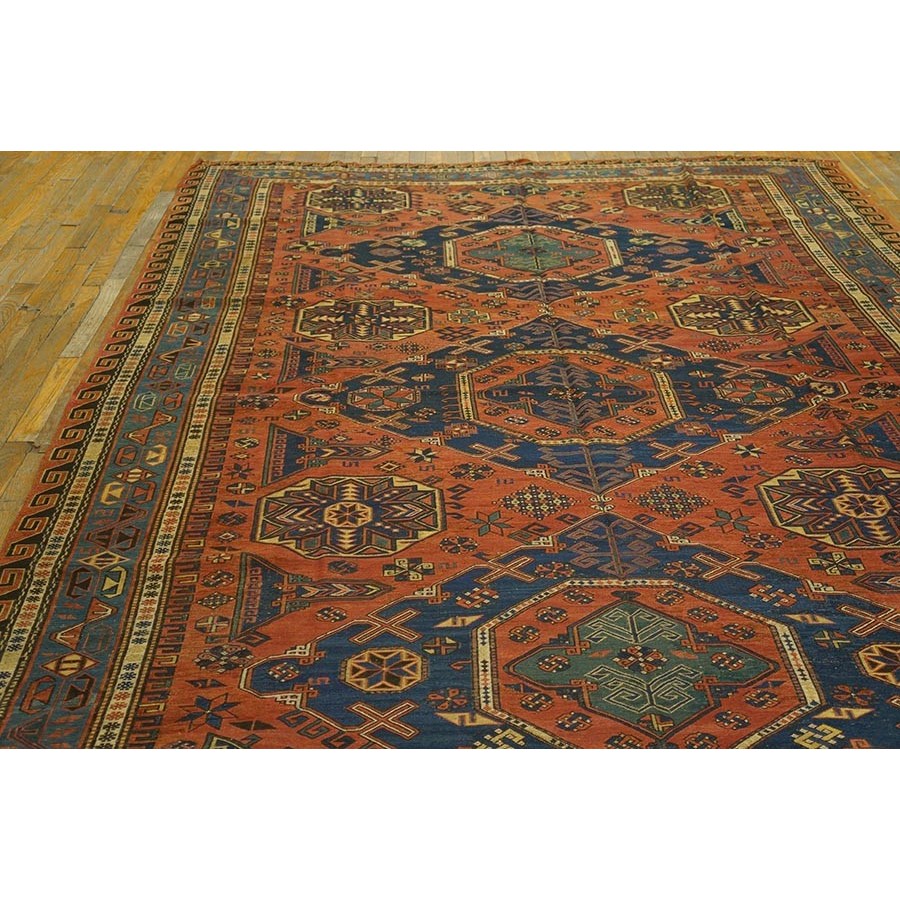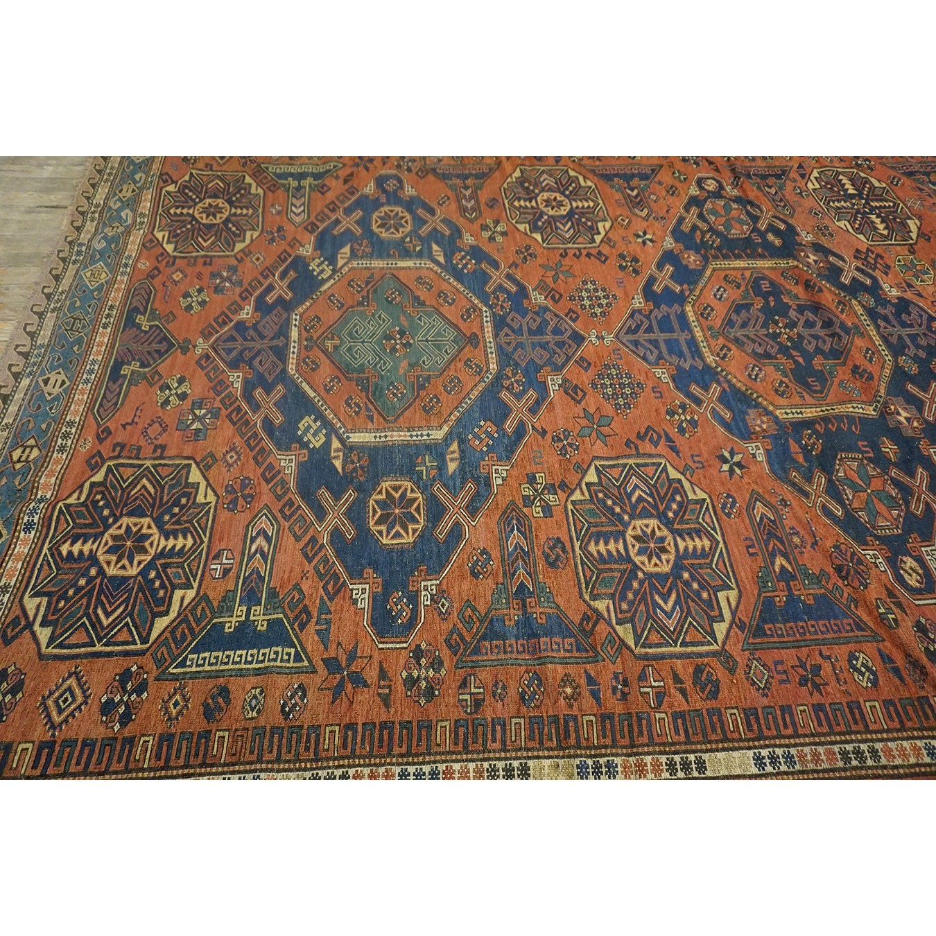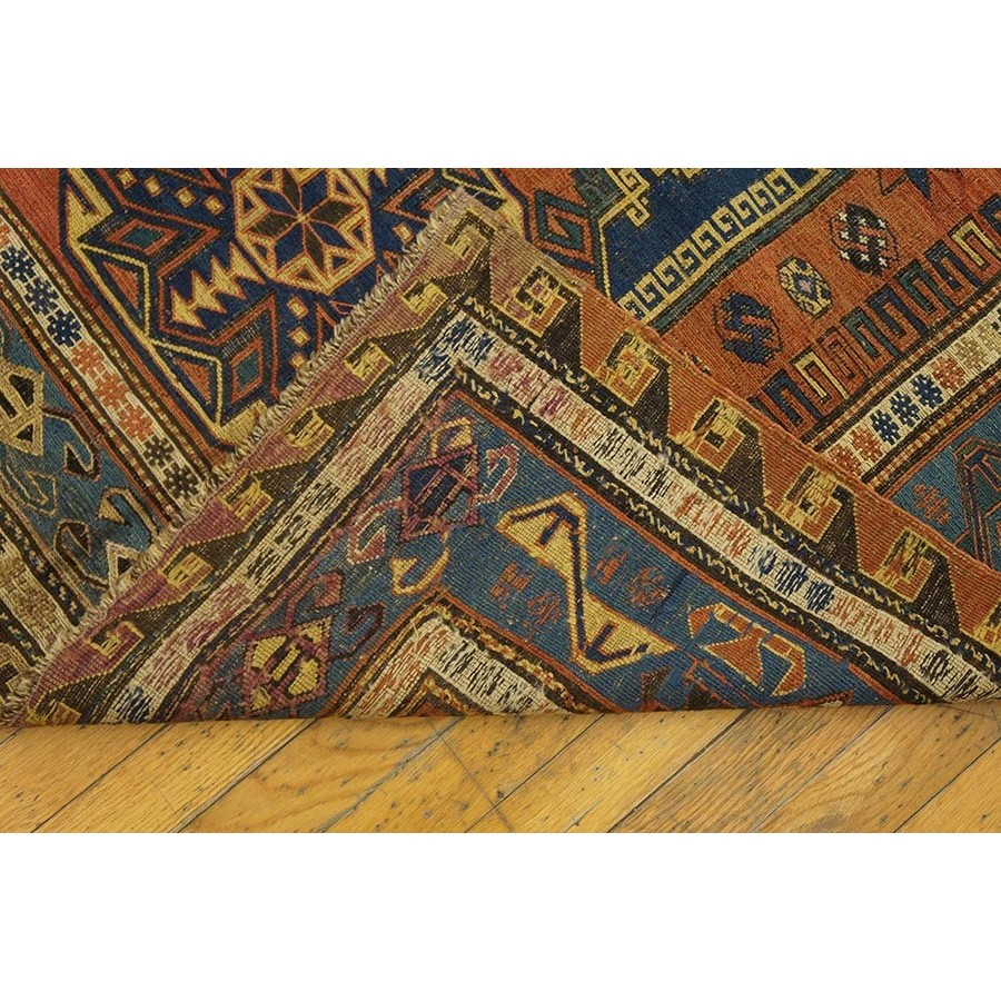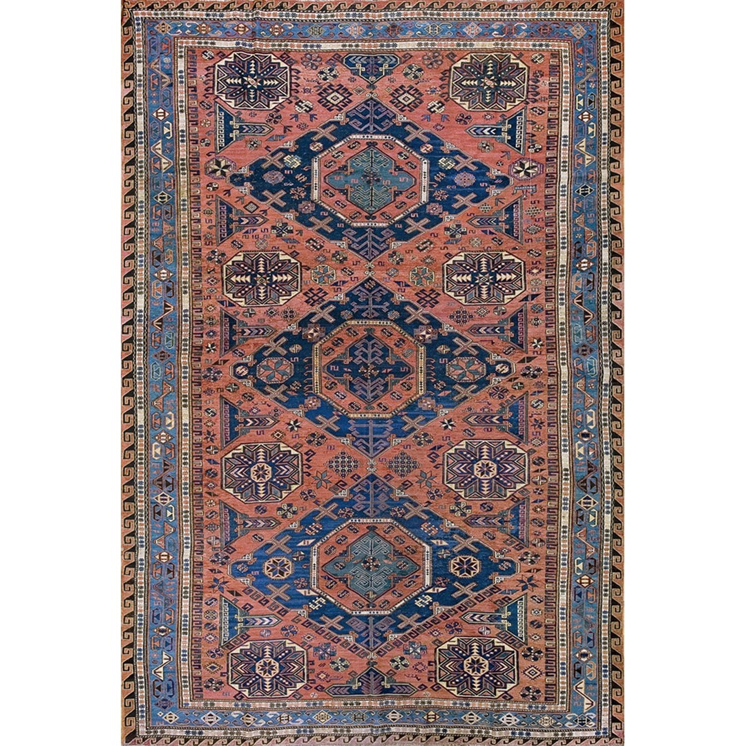 DescriptionCaucasianThis is the general heading for all rugs made in the Caucasus mountains and in the trans-Caucasus areas, north of the Arax River, and between the Black and Caspian Seas. This includes rugs from the Kazak, Karabagh, Gendje, Koghan, Talish, Akstafa, Shirvan, Baku, Kuba and hesghi districts and the variants and subtypes thereof. The rugs are usually in scatter sizes and of all wool construction, with bold colors and geometric patterns, from the 18th through 20th centuries. Prices range widely depending on rarity, color, design and condition. A strong collector market exists for the better examples. | |