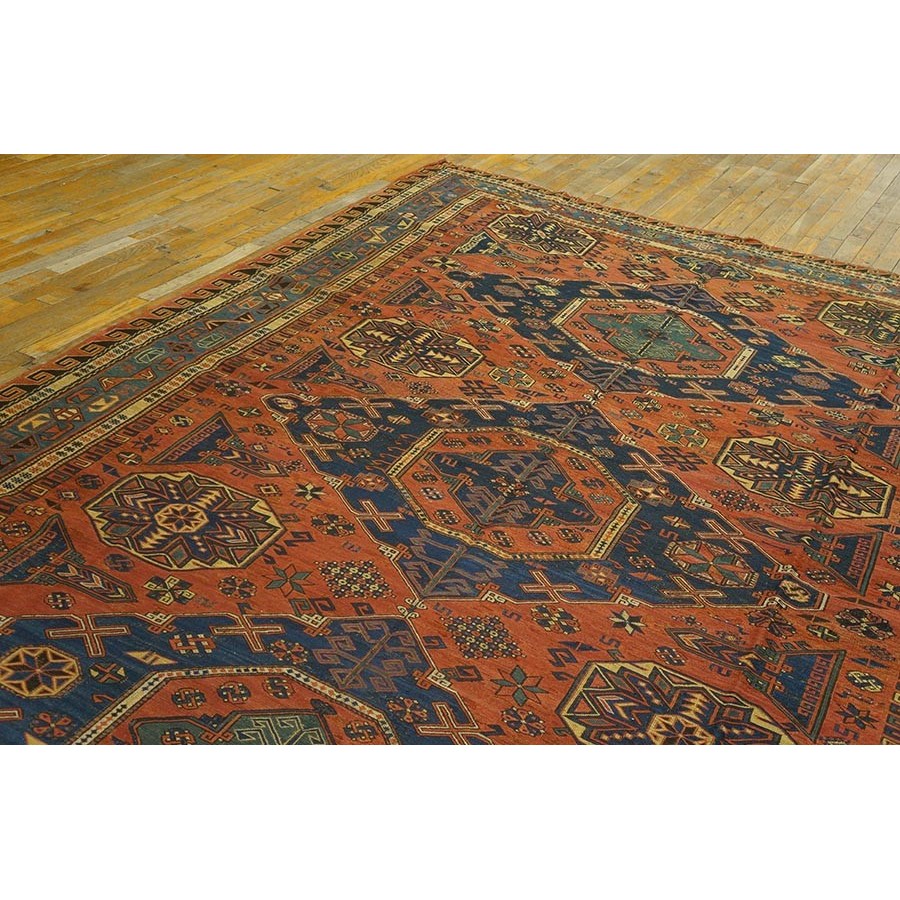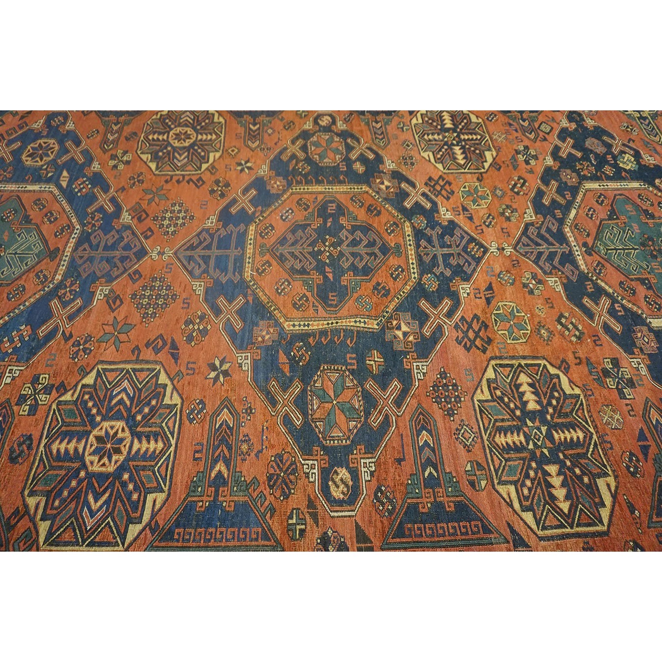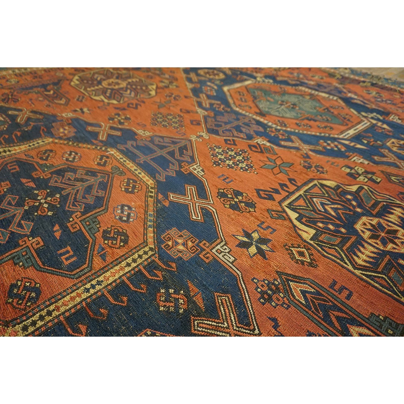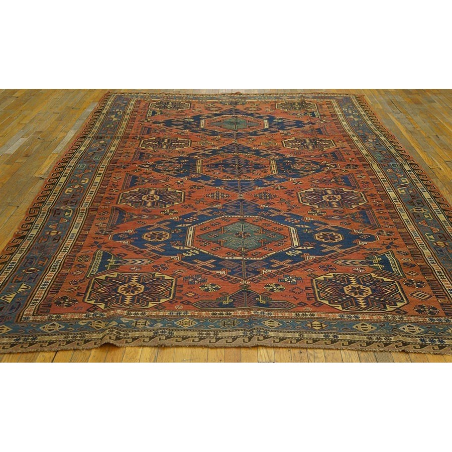 DescriptionCaucasianThis is the general heading for all rugs made in the Caucasus mountains and in the trans-Caucasus areas, north of the Arax River, and between the Black and Caspian Seas. This includes rugs from the Kazak, Karabagh, Gendje, Koghan, Talish, Akstafa, Shirvan, Baku, Kuba and hesghi districts and the variants and subtypes thereof. The rugs are usually in scatter sizes and of all wool construction, with bold colors and geometric patterns, from the 18th through 20th centuries. Prices range widely depending on rarity, color, design and condition. A strong collector market exists for the better examples. | |